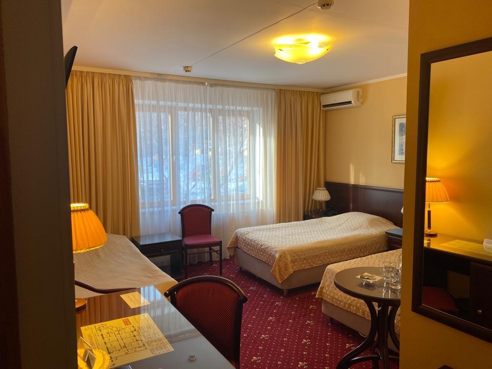 В номере: две раздельные кровати 90х200 см , 2 прикроватные тумбы, рабочий стол, стул, журнальный столик, кресло, подставка под багаж, зеркало , вешалка для верхней одежды, гардероб, кабельное ТВ, доступ в Интернет, мини-бар, . Санузел с душевой кабиной, феном, мини-набором для ванной, тапочки.