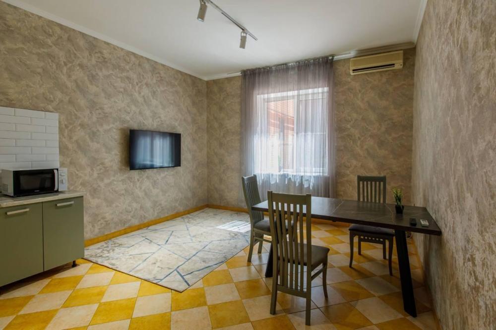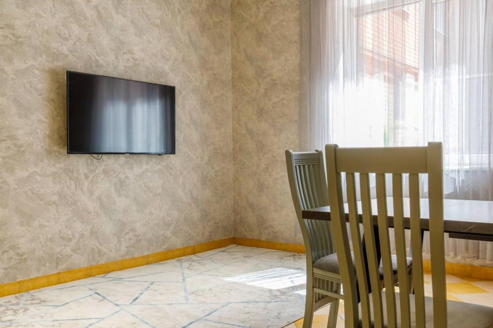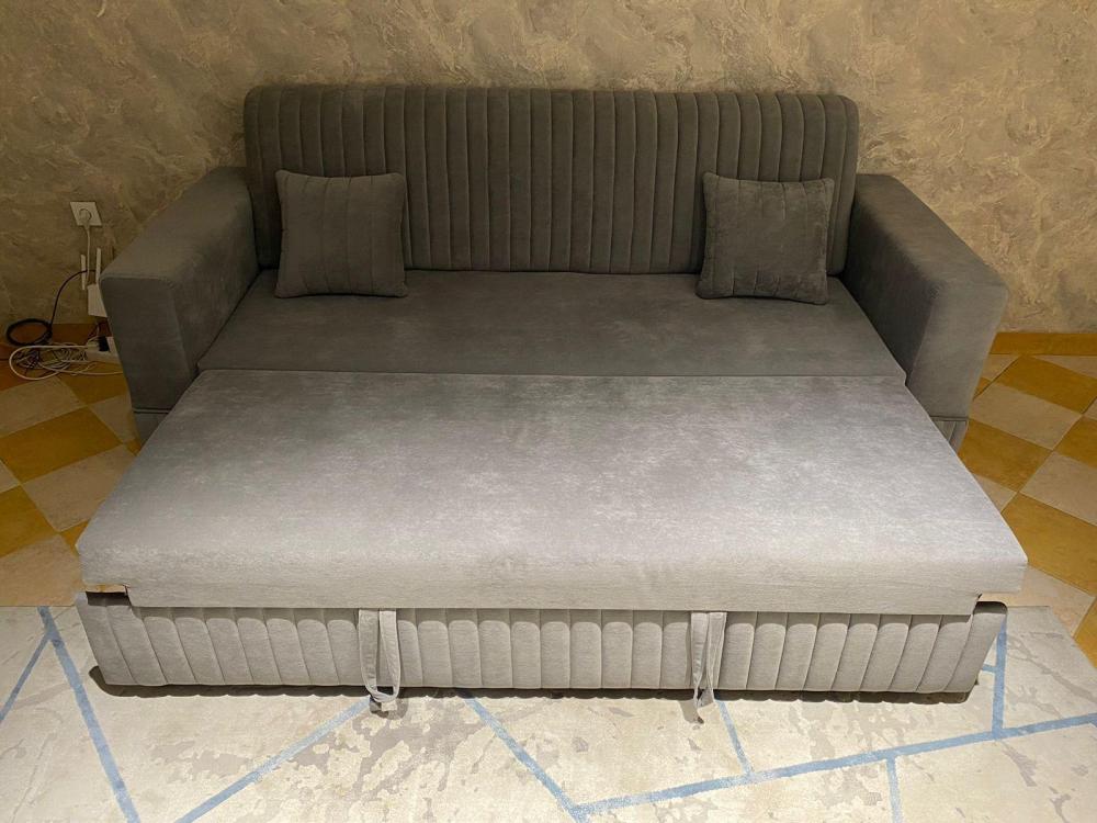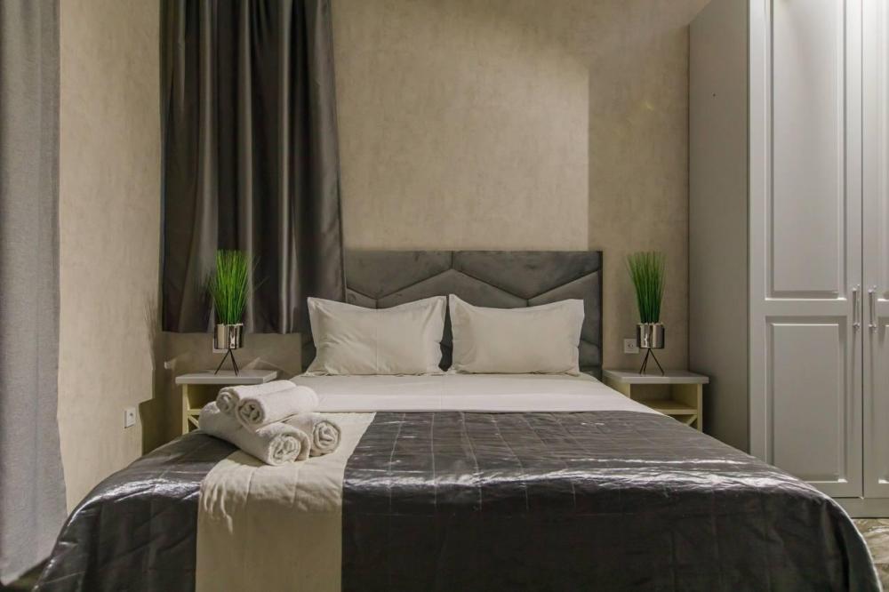 Апартаменты с двуспальной кроватью и диваном-кроватью представляют собой прекрасный выбор для комфортного проживания четверых гостей. Номер, площадью 45 кв. м., включает в себя уютную спальню с комфортной двуспальной кроватью и просторную гостиную с удобным диваном-кроватью. Питание: на кухне гостей ждут все необходимые удобства, включая СВЧ печь, эл. чайник, холодильник, варочную панель, вытяжку, полный набор посуды, раковину и стол со стульями. Санузел с душем укомплектован феном для волос, набором туалетных принадлежностей, халатами и тапочками, стиральной машиной. Апартаменты оборудованы современным smart TV, кондиционером, шкафом для хранения вещей и wi-fi роутером для комфортной работы в сети Интернет. Наши самые юные гости до 2 лет включительно размещаются бесплатно на одной кровати с родителями. Для гостей путешествующих по работе предоставляются отчетные документы.