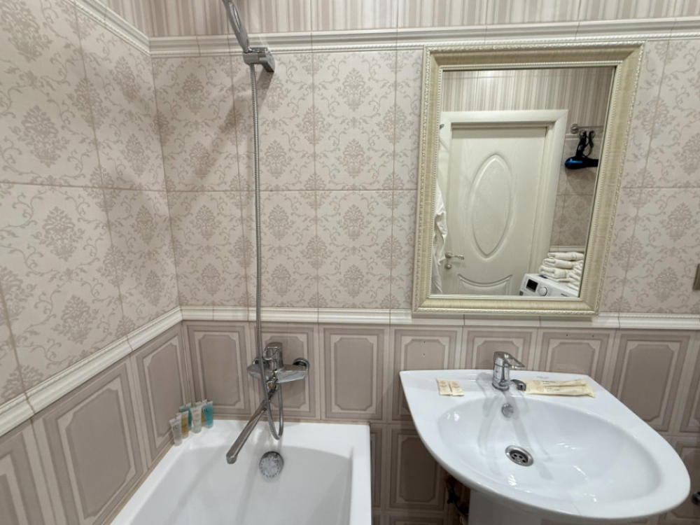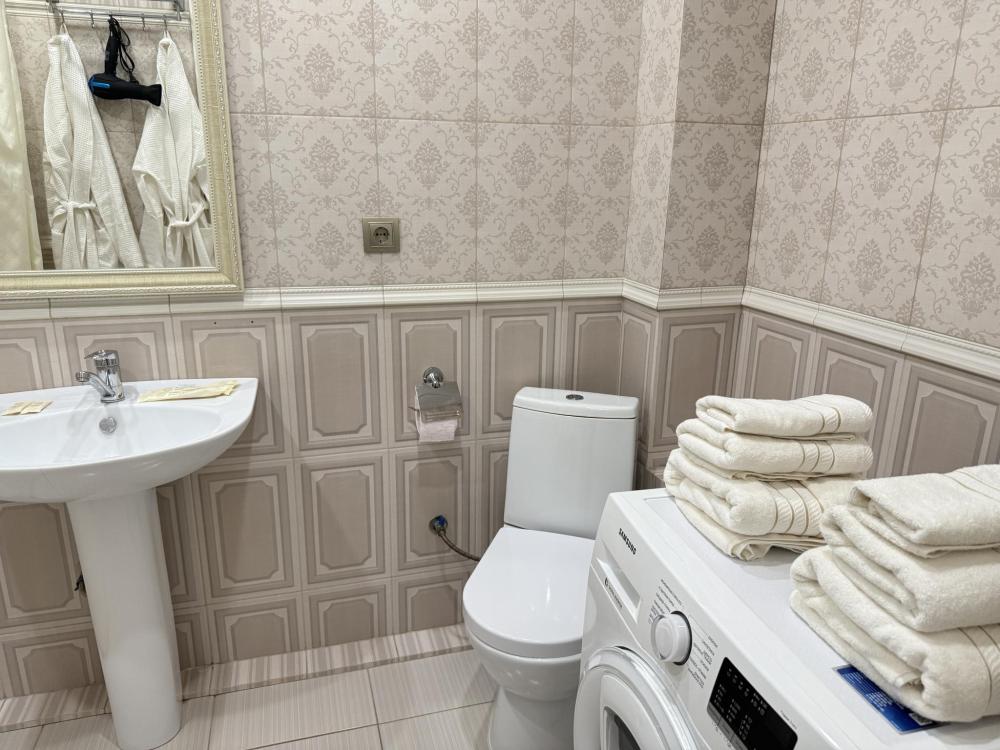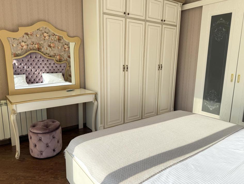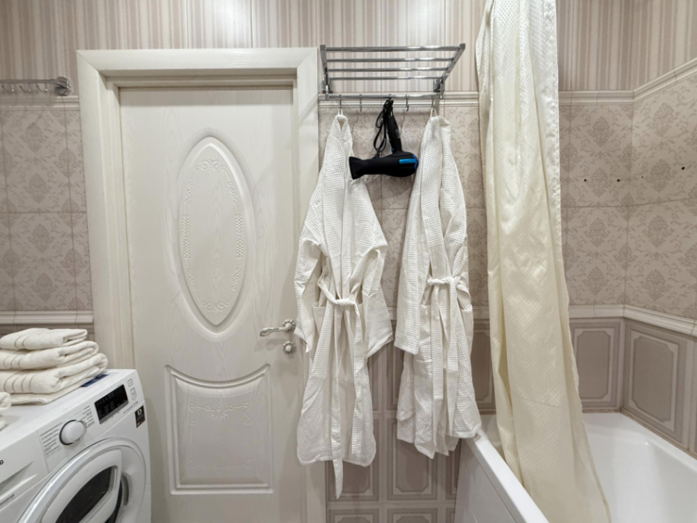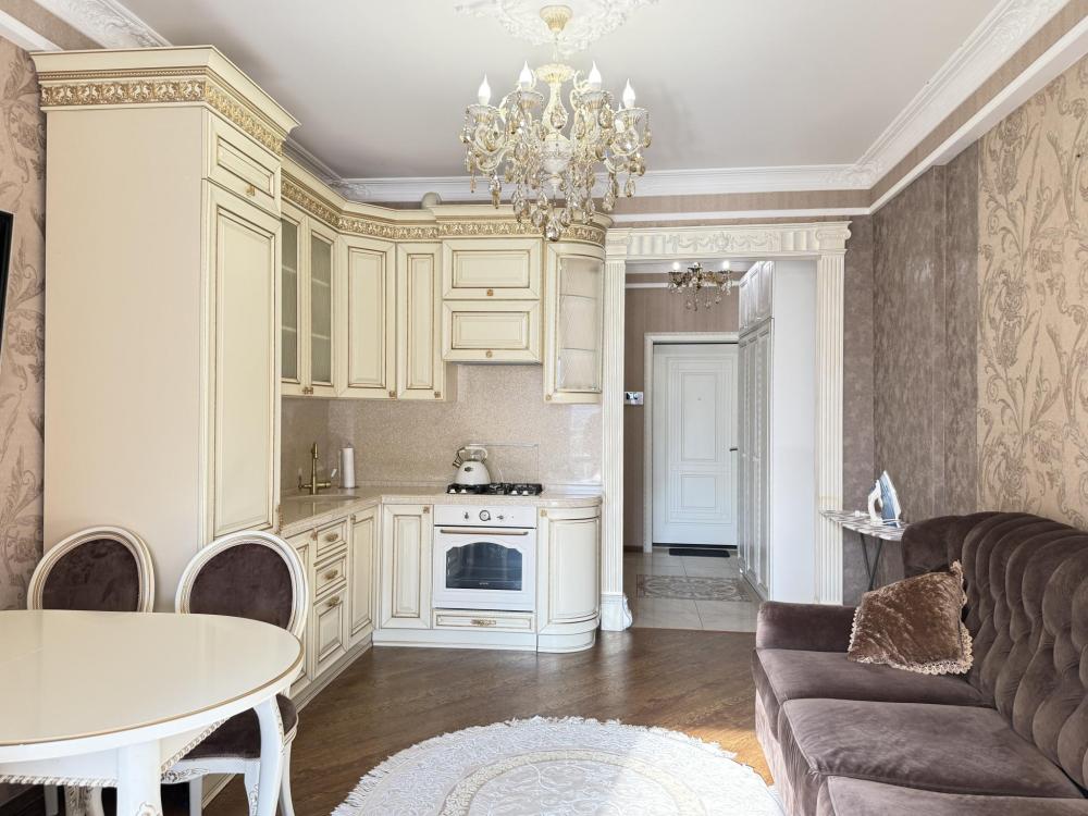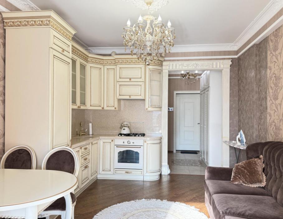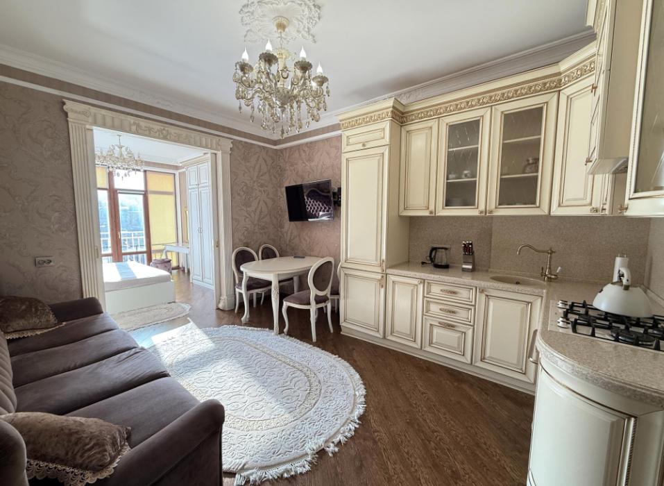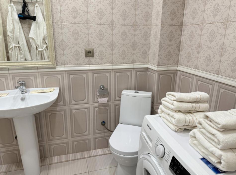 Просторная гостиная с диваном и обеденной зоной, отдельная спальня с двуспальной кроватью. Полный гостиничный сервис: - Спальные места: двуспальная кровать с ортопедическим матрасом, раскладной двуспальный диван. - Полностью оборудованная кухня со всем необходимым для приготовления вкусных блюд. - Высокосортной Wi-Fi для работы и чтобы вы всегда оставались на связи со своими близкими. - Современная ванная комната со всеми необходимыми удобствами. Имеются все банные и гигиенические принадлежности: шампунь и кондиционер для волос, гель для душа, набор полотенец. - У нас есть всё необходимое для комфортного проживания: современный Smart TV, кондиционер, стиральная машинка, фен, гладильные принадлежности, всегда чистое постельное бельё, вода круглосуточно холодная и горячая.