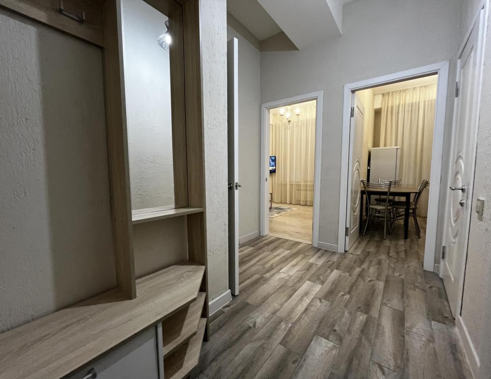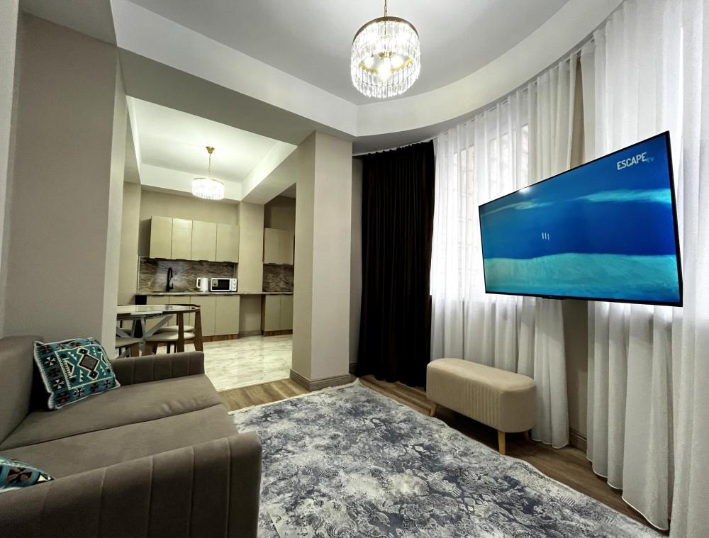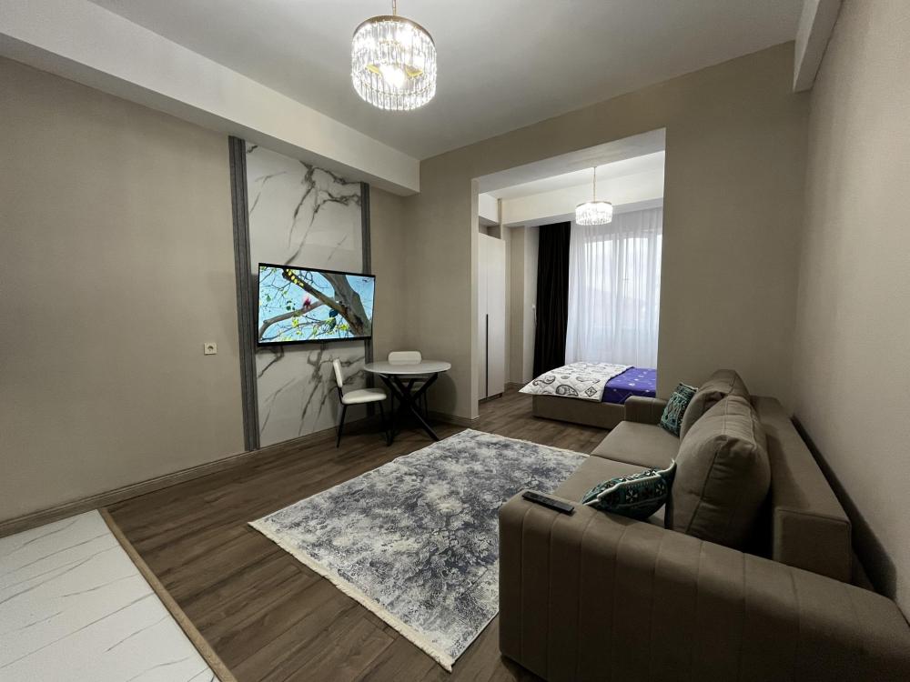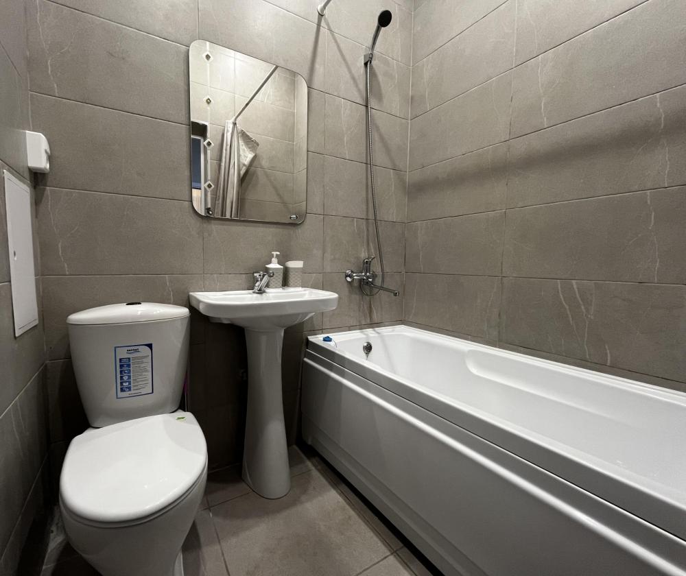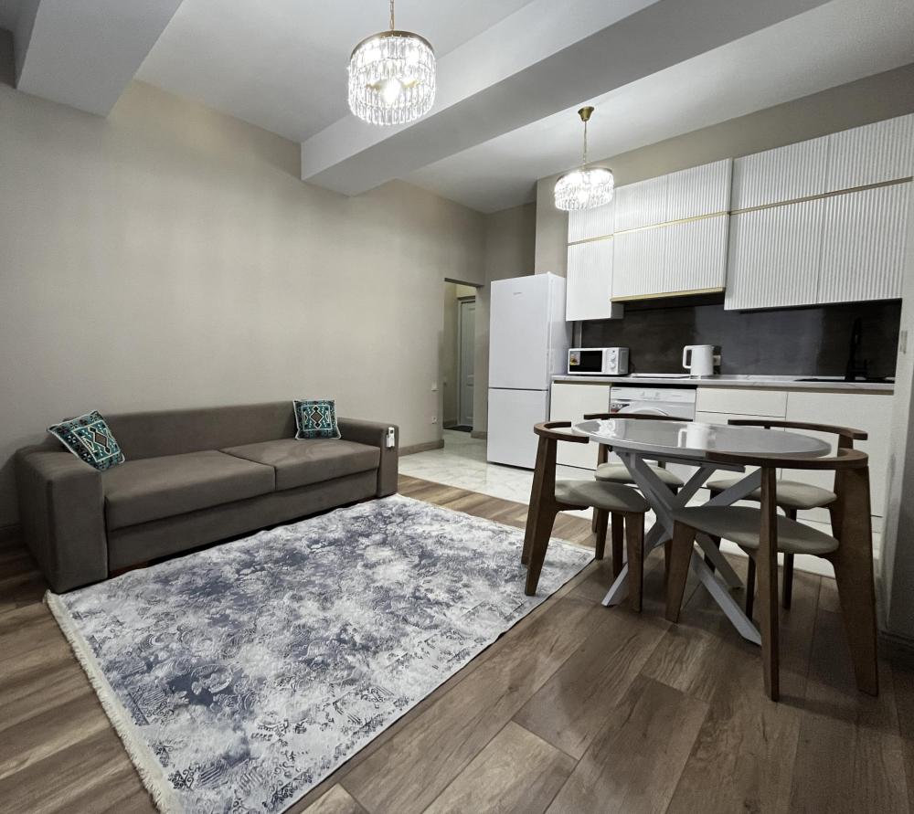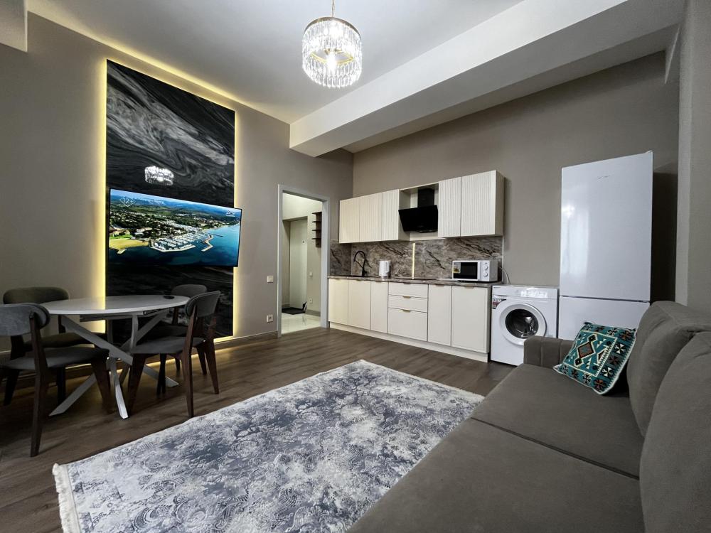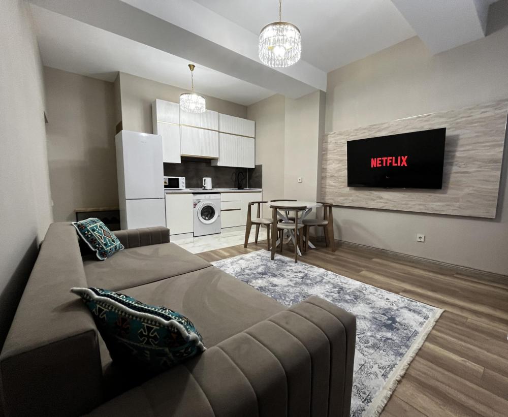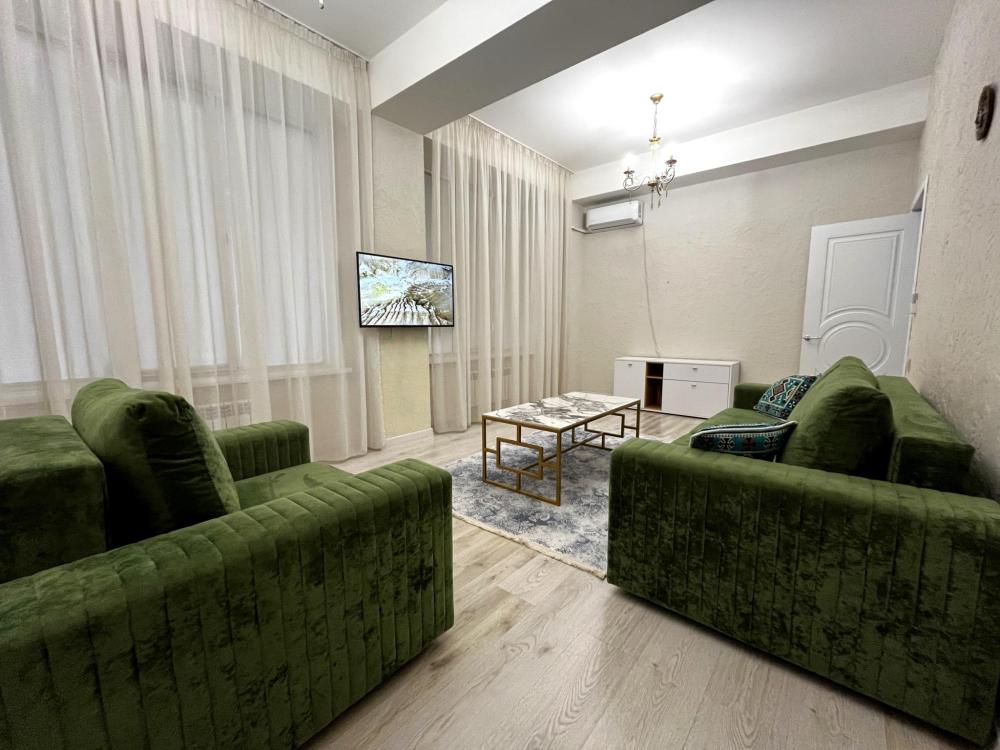 Уютные апартаменты, оснащенные всем необходимым для комфортного проживания. В апартаментах есть полностью оборудованная кухня с широким ассортиментом посуды и бытовой техникой, что позволит вам готовить свои любимые блюда, не выходя из дома. Свежее постельное белье и средства гигиены также гарантированы. В квартире есть отдельный туалет и ванная комната, где вы можете расслабиться после напряженного дня. Помимо этого, вы сможете наслаждаться бесплатным Wi-Fi и смарт-ТВ, чтобы провести время с удовольствием и развлечением.