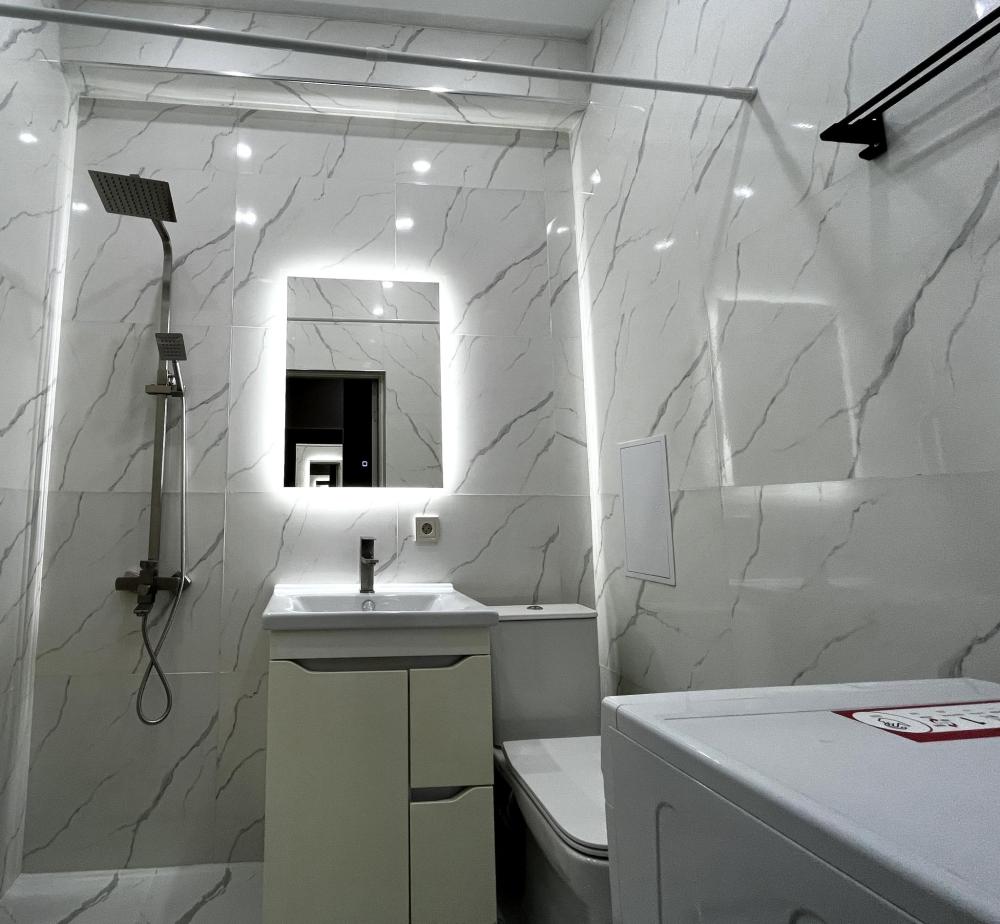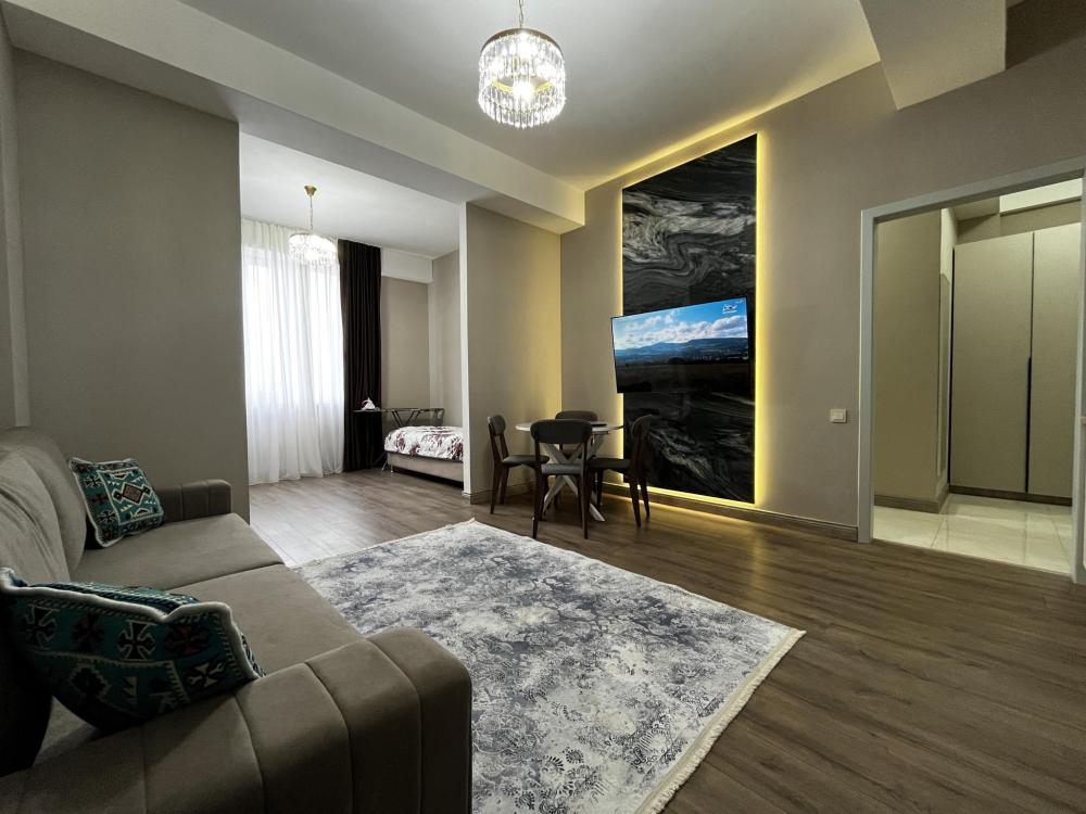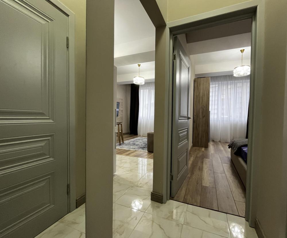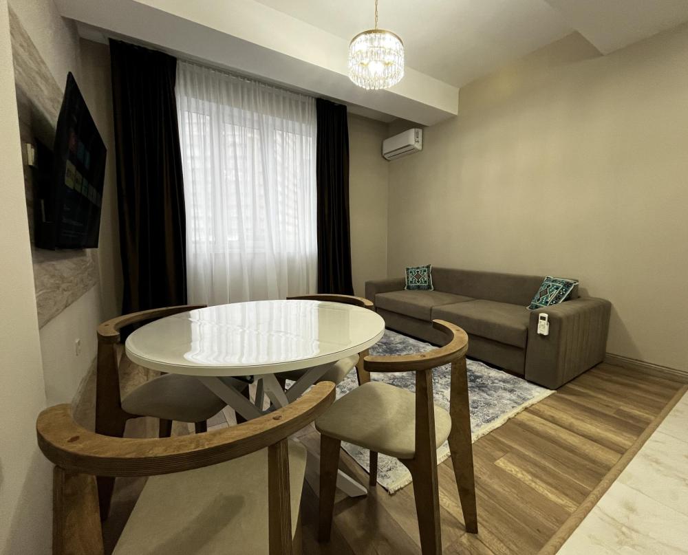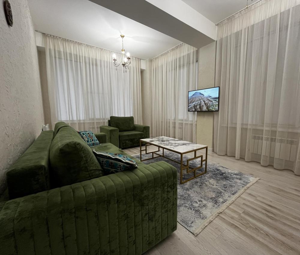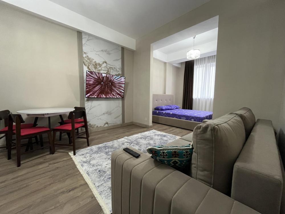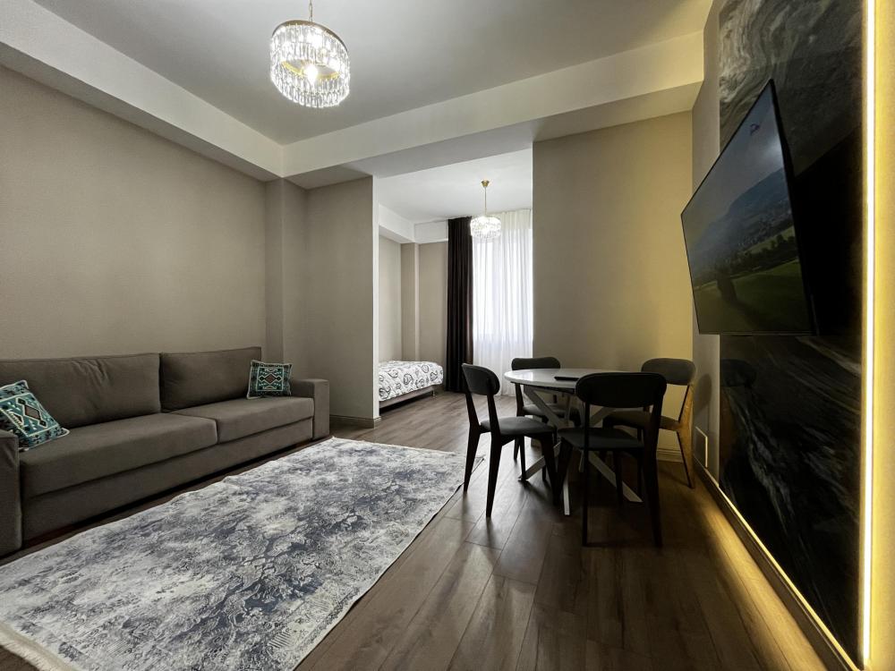 Уютные апартаменты, оснащенные всем необходимым для комфортного проживания. В апартаментах есть полностью оборудованная кухня с широким ассортиментом посуды и бытовой техникой, что позволит вам готовить свои любимые блюда, не выходя из дома. Свежее постельное белье и средства гигиены также гарантированы. В квартире есть отдельный туалет и ванная комната, где вы можете расслабиться после напряженного дня. Помимо этого, вы сможете наслаждаться бесплатным Wi-Fi и смарт-ТВ, чтобы провести время с удовольствием и развлечением.