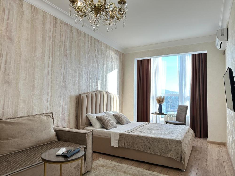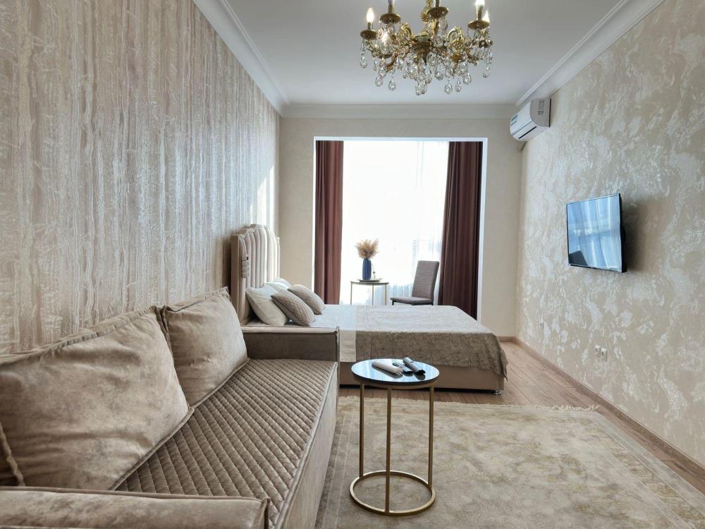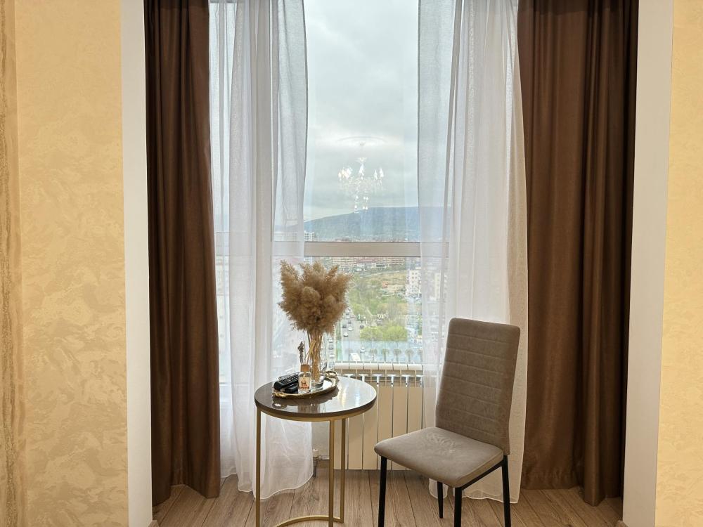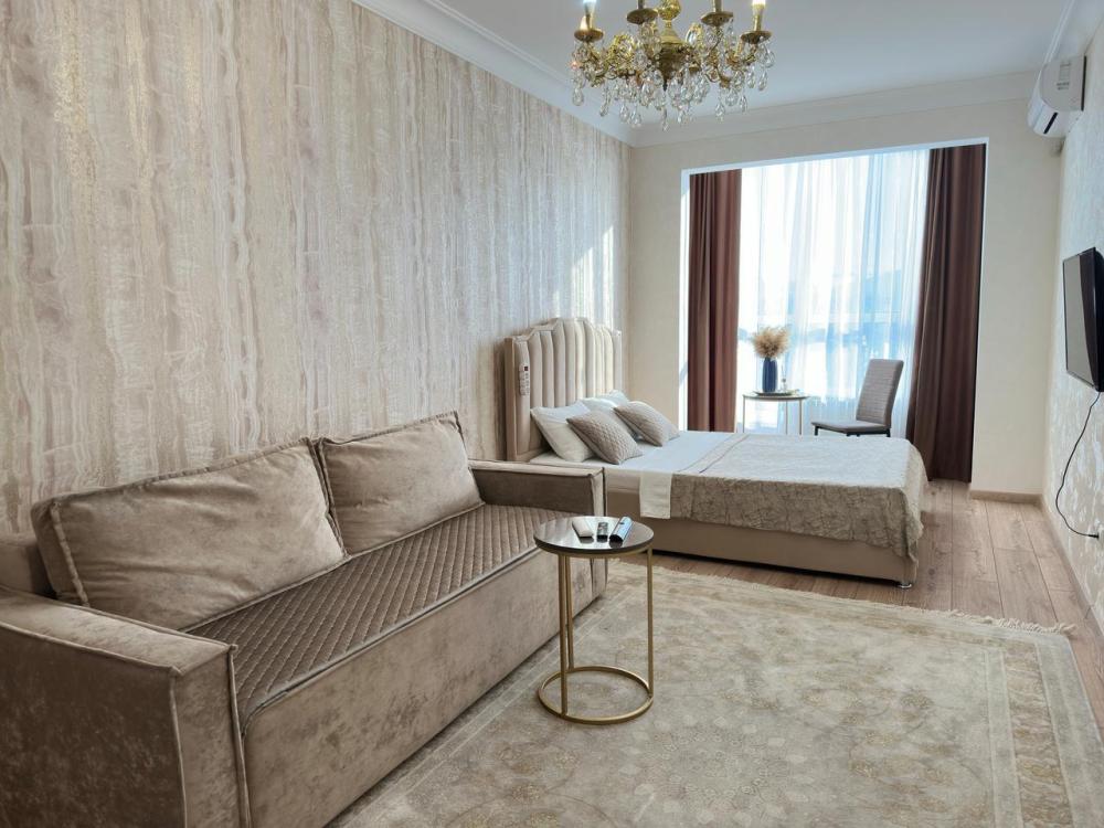 Однокомнатная квартира на высоте птичьего полета, со всеми удобствами, для 4 гостей. В апартаментах есть все необходимое для комфортного проживания. Всегда чистое постельное белье, махровые полотенца, тапочки, фен, утюг, микроволновка, посуда, средства гигиены, кондиционер, WI-FI, телевизор.