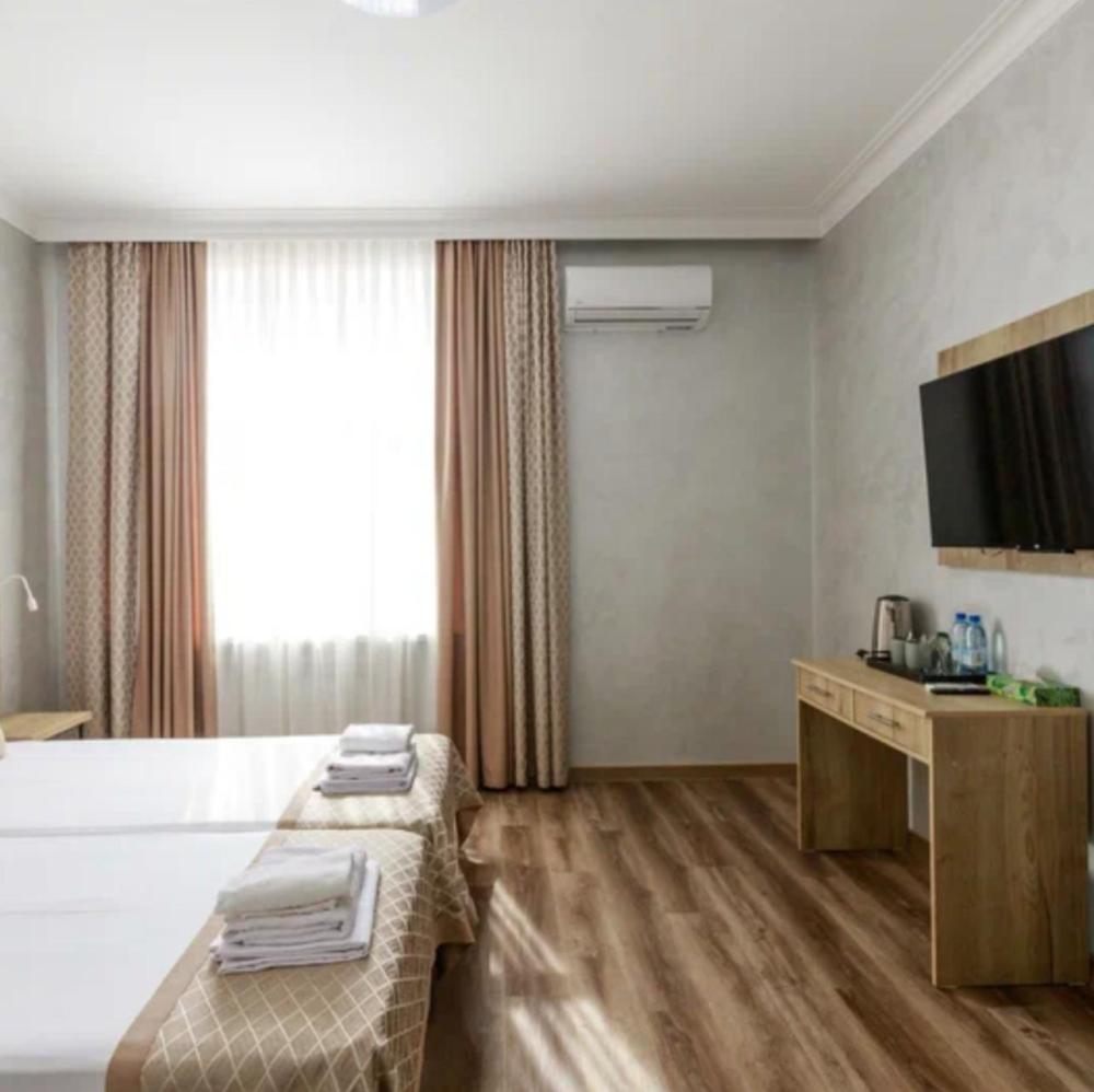 Двухкомнатный номер Делюкс оснащен всем необходимым для проживания.В номере имеется кондиционер(сплит система),холодильник,телевизор,два дивана раскладных,большая двухспальная кровать,прикроватные тумбы,шкаф,стол,стулья.