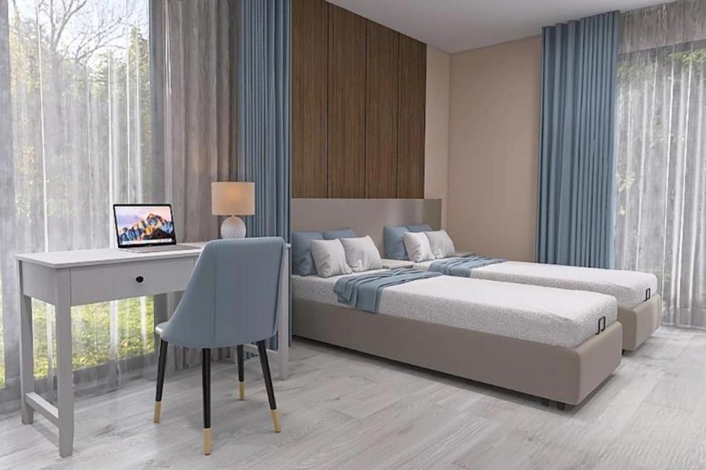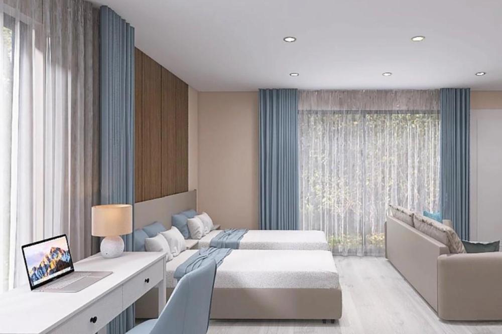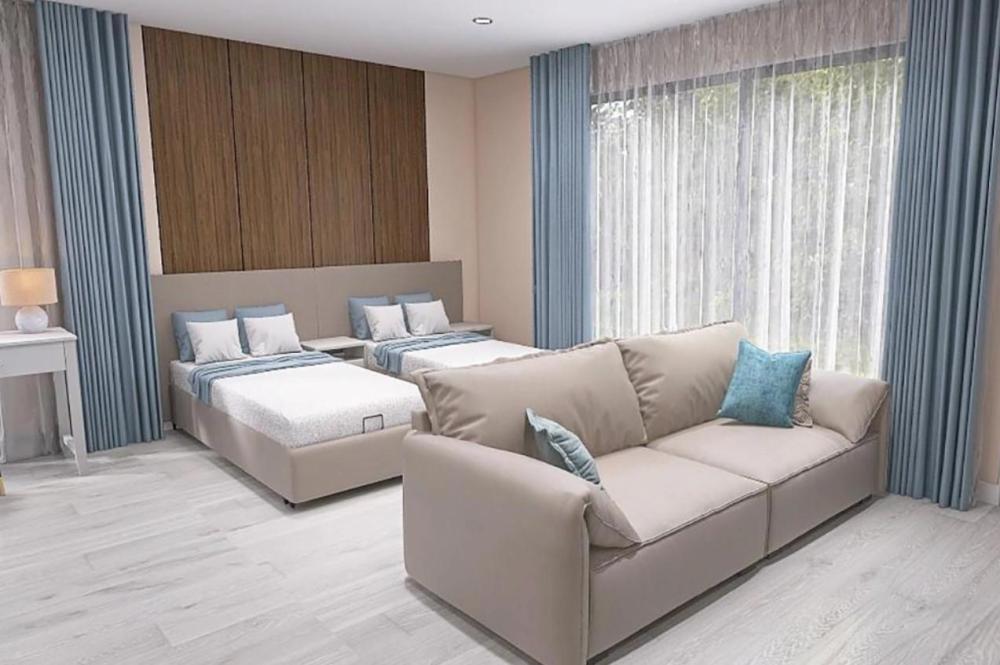 В номере: 2 кровати (90 x 210), угловой 2-спальный диван, 2 прикроватных тумбочки, балкон, шкаф, банные комплекты из трех полотенец, минибар, банные халаты из «вафельного хлопка», телевизор, кондиционер, щётка для одежды, салфетка для обуви, рожок обувнойтелефон, чайная группа, журнальный столик, одноразовые тапочки, багажница с вешалкой.