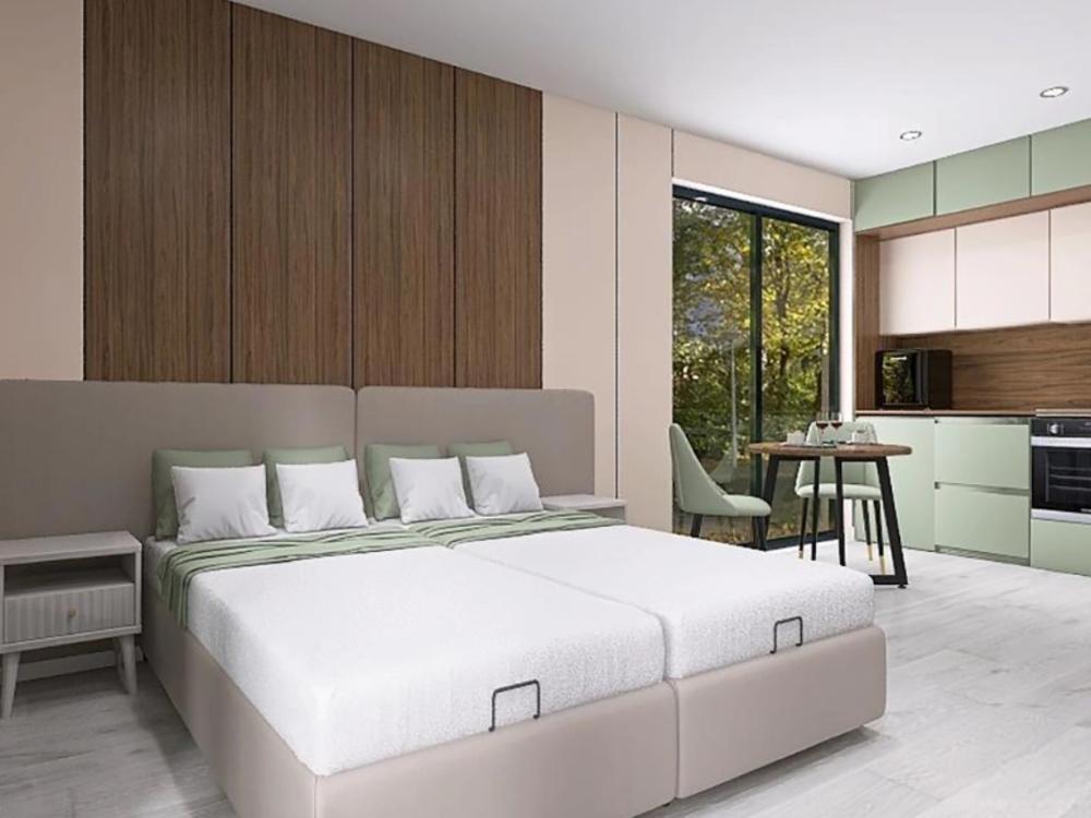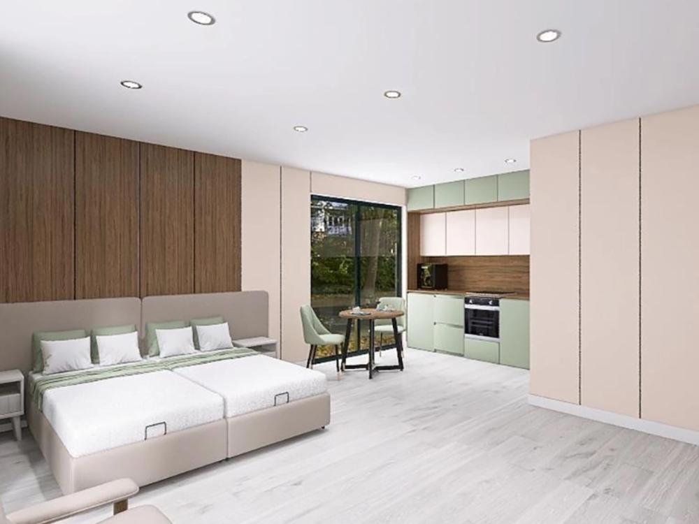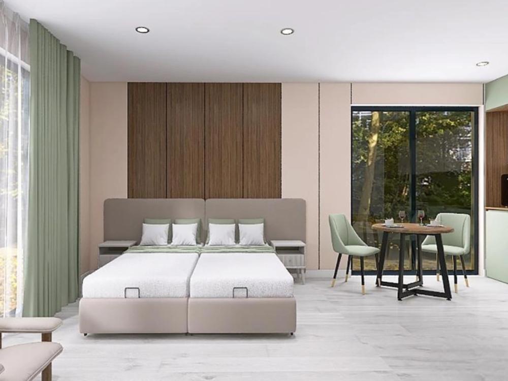 В номере: 1 кровать 160 x 210, угловой 2-спальный диван, 2 прикроватных тумбочки, балкон, шкаф, банные комплекты из трех полотенец, минибар, банные халаты из «вафельного хлопка», телевизор, кондиционер, щётка для одежды, салфетка для обуви, рожок обувнойтелефон, чайная группа, багажница с вешалкой, одноразовые тапочки.