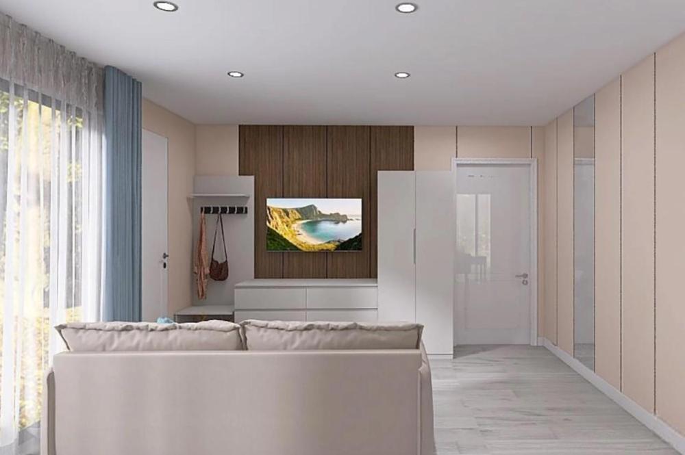 Четыре кровати (90 x 210), раскладывающийся в 2-спальное место 180 х 210, посуда и столовые приборы, 2 ТВ, 2 сан узла, 2 кондиционера, банные комплекты из четырех полотенец, минибар, махровые халаты, телефон, одноразовые тапочки, зеркало во весь рост, щётка для одежды, салфетка для обуви, рожок обувной, комод, туалетный столик с зеркалом, беседка, качели, сейф.