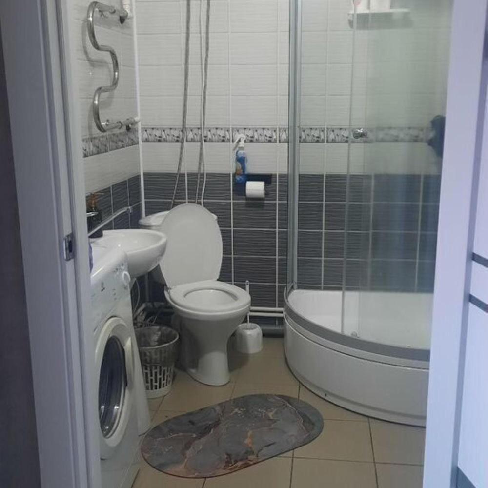 В квартире есть все необходимо для комфортного проживания: двуспальная кровать, шкаф купе для одежды, телевизор, бытовая техника (холодильник, СВЧ печь, плита, чайник), обеденный стол со стульями, посуда, душевая кабина, стиральная машина, фен, утюг, гладильная доска. Средства гигиены одноразовые!