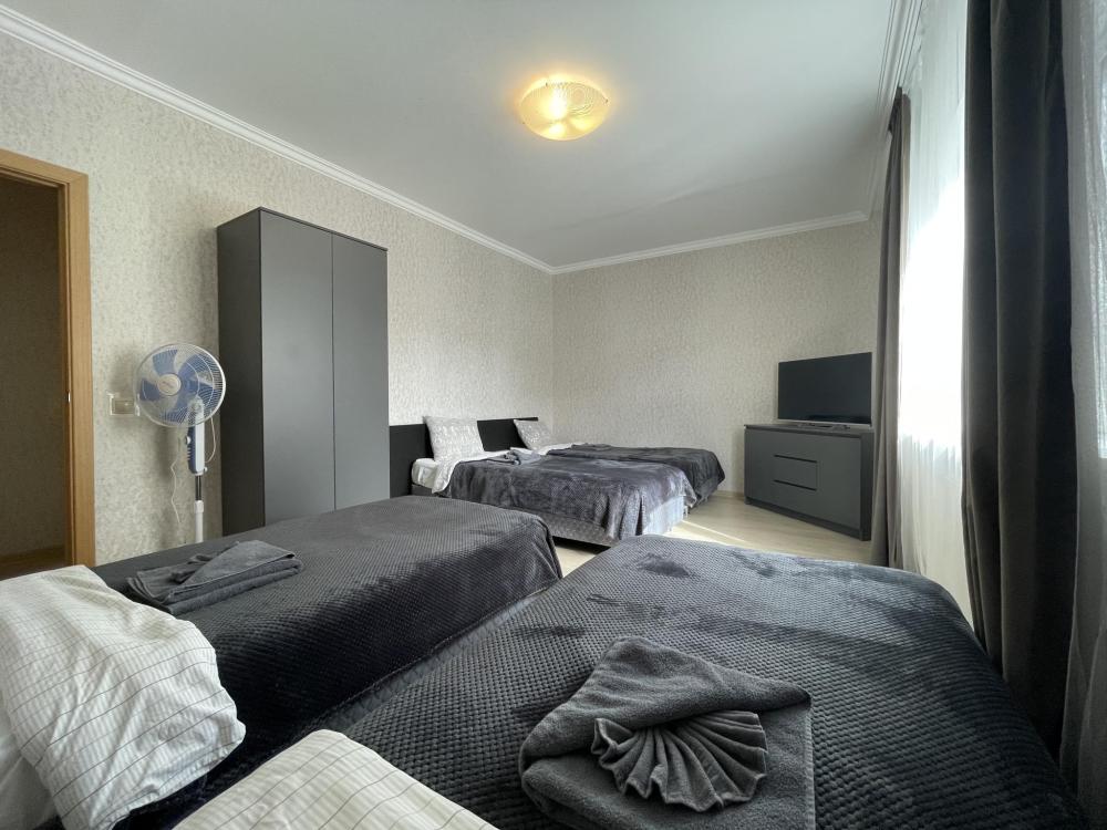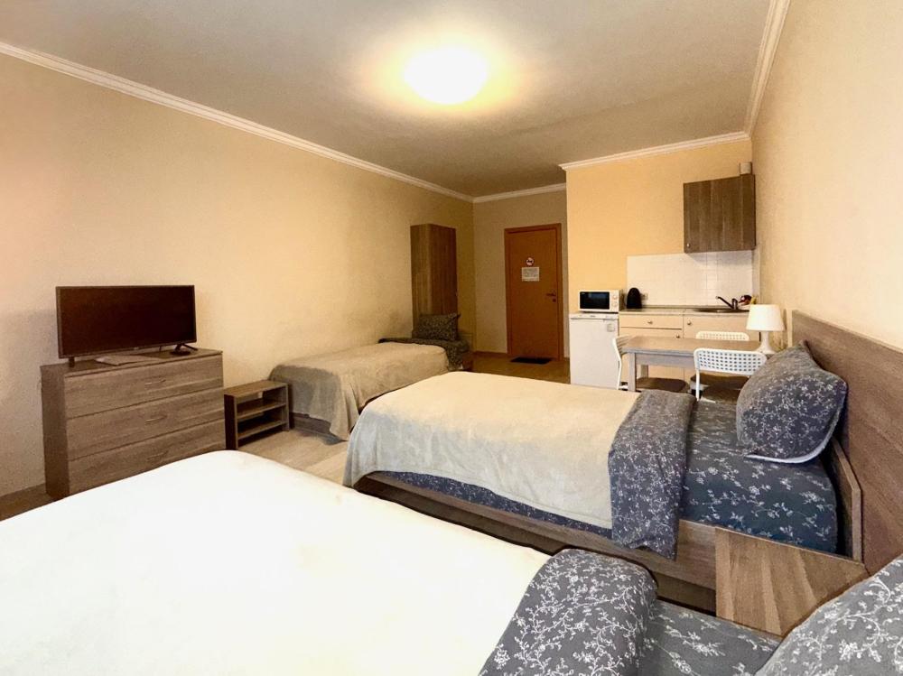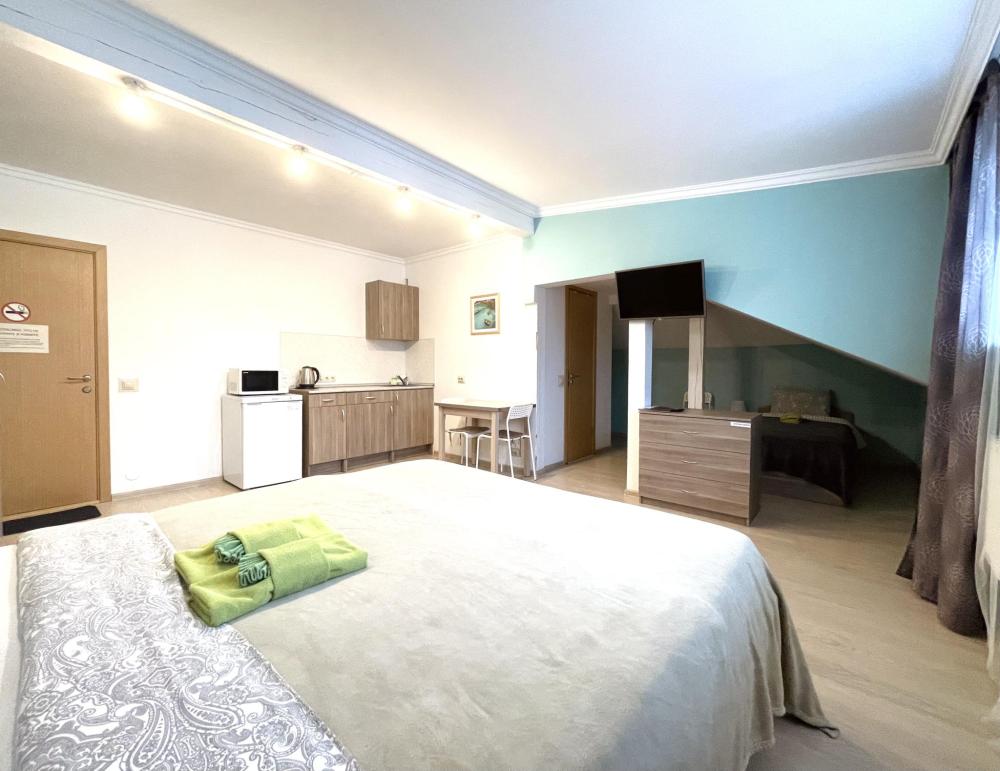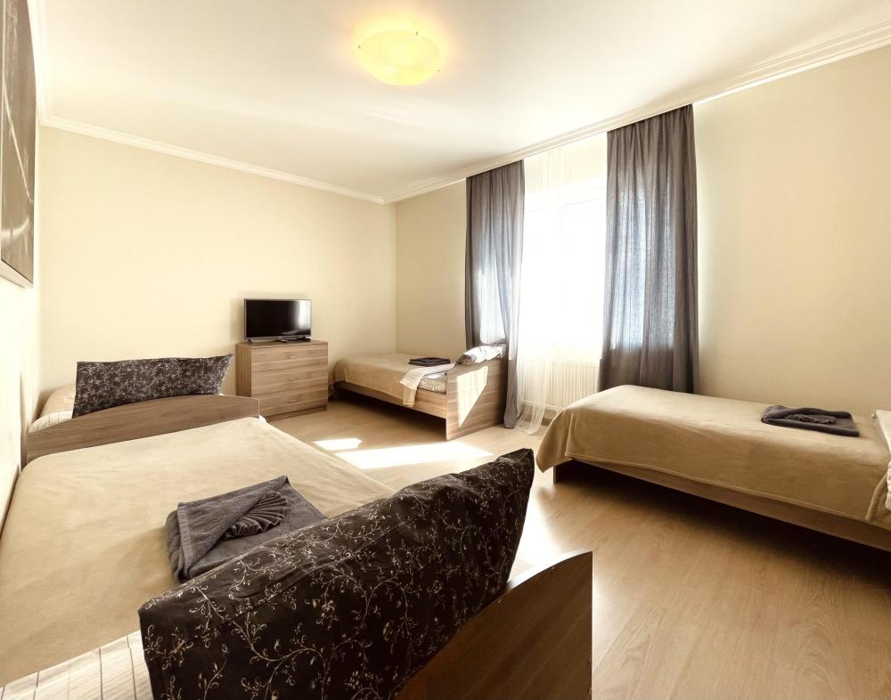 Номер площадью 30 м.кв. В номере: 3 односпальные кровати или двуспальная и односпальная кровать, уютный дизайн и современное оснащение номера: бесплатный Wi-Fi, кухня, индукционная плита, мини-холодильник, микроволновка, плоский TV-32", душ, туалет в номере. Комнаты оснащены телевизором с плоским экраном. В некоторых из них обустроен гостиный уголок. Из окон части номеров открывается вид на город или сад.