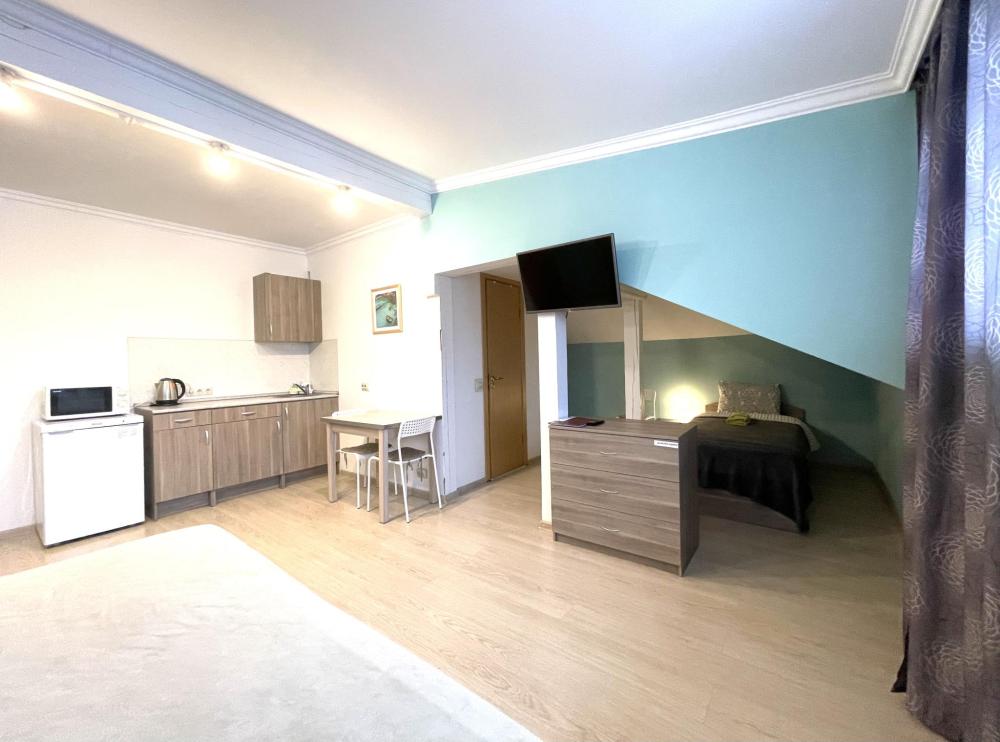 Номер площадью 28 м.кв. В номере: двуспальная кровать, уютный дизайн и современное оснащение номера: бесплатный Wi-Fi, кухня, индукционная плита, мини-холодильник, микроволновка, плоский TV-32", душ, туалет в номере. Комнаты оснащены телевизором с плоским экраном. В некоторых из них обустроен гостиный уголок. Из окон части номеров открывается вид на город или сад.