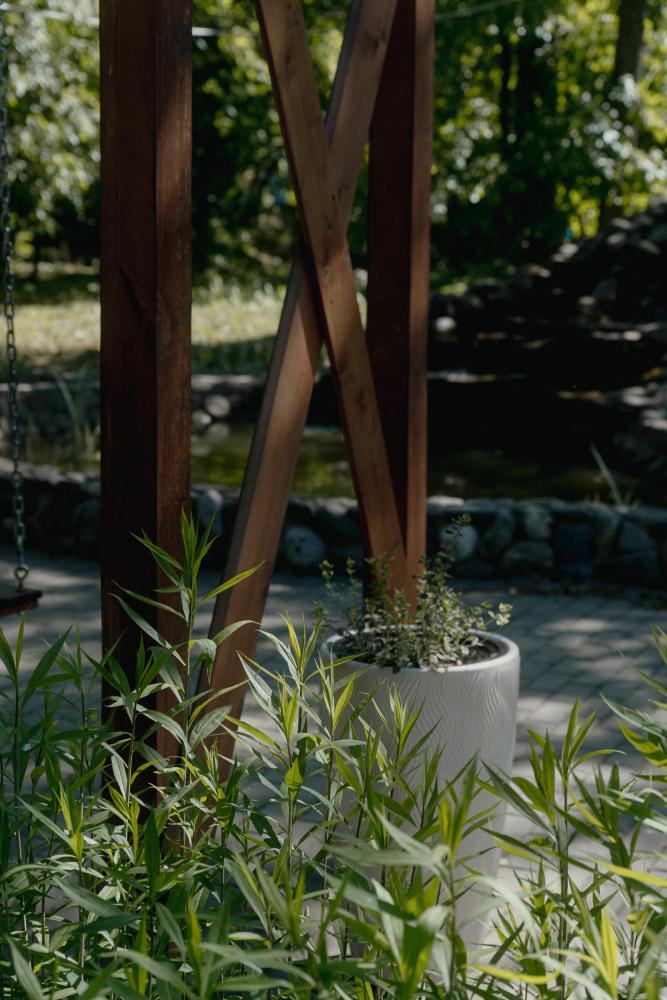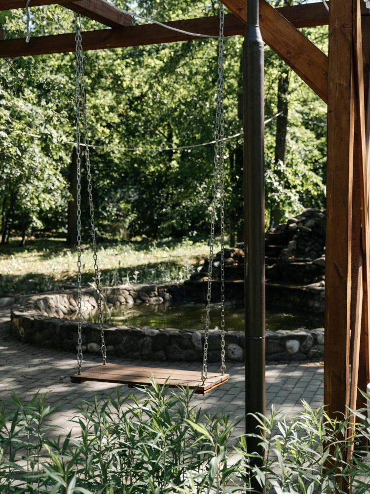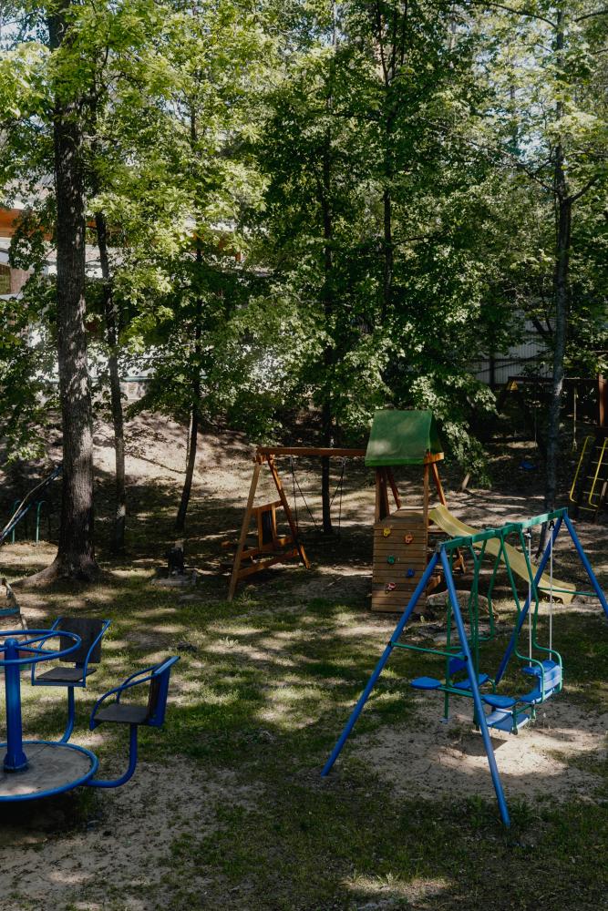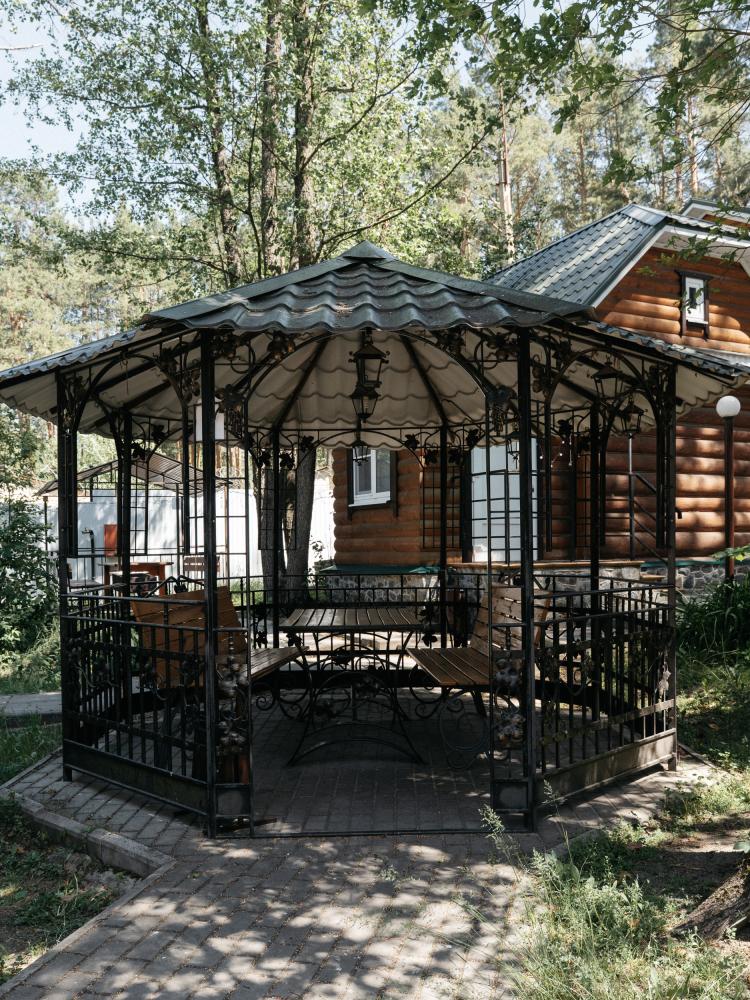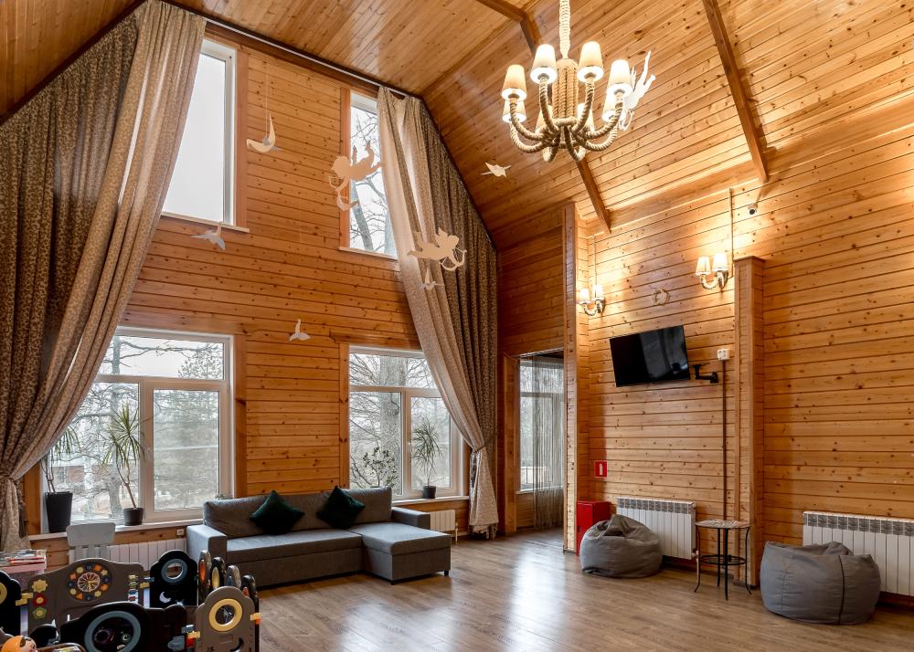 Двухэтажный, пятикомнатный (десятиместный) сруб с верандой. В номере: сейф, столы, стулья, 2 дивана, 2 кресла, шкаф для одежды, холодильник, ТВ, фен. Индивидуальная беседка и общая мангальная зона у срубов. В срубах №5 и 7: 5 двуспальных кроватей. В срубе №6: 4 двуспальные и 2 односпальные кровати. В проживание номера входит: набор туалетных принадлежностей (мыло, шампунь, гель), комплект полотенец, тапочки.