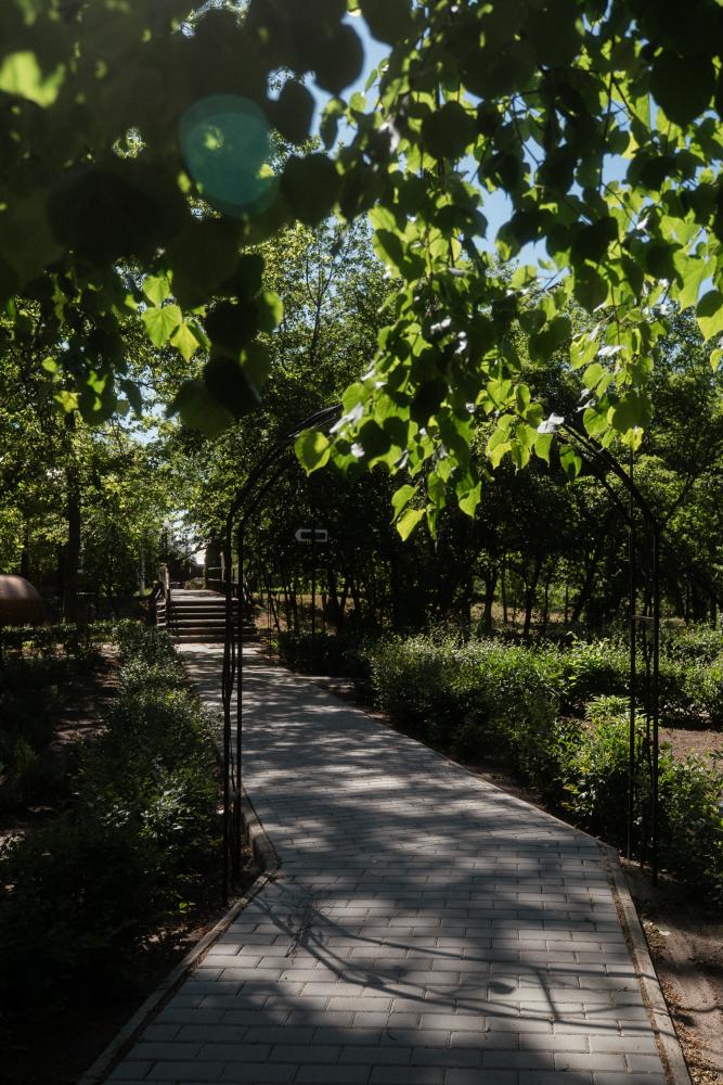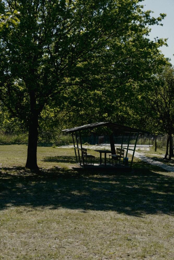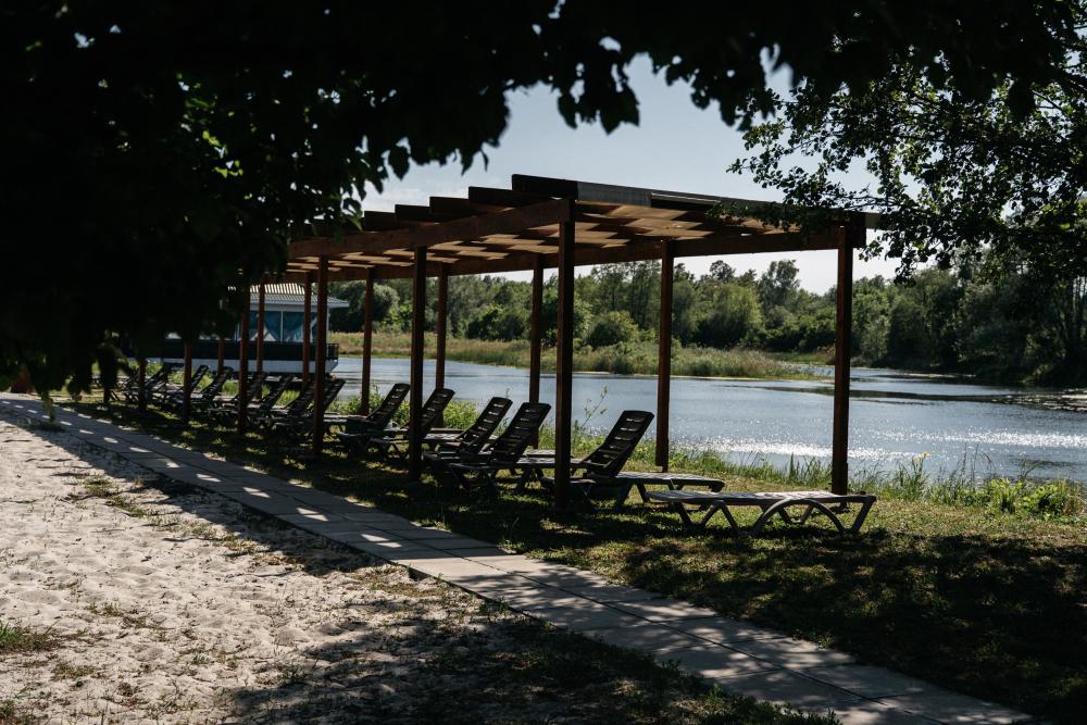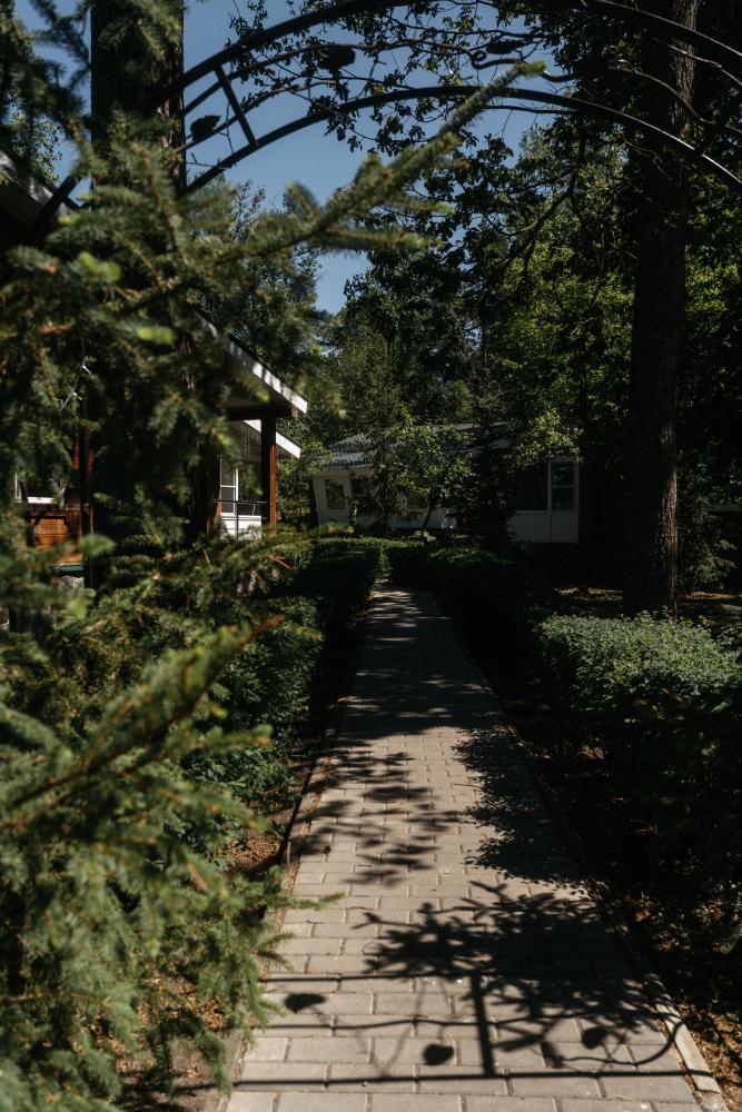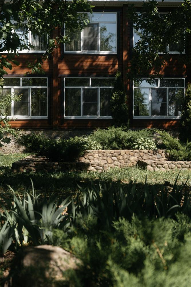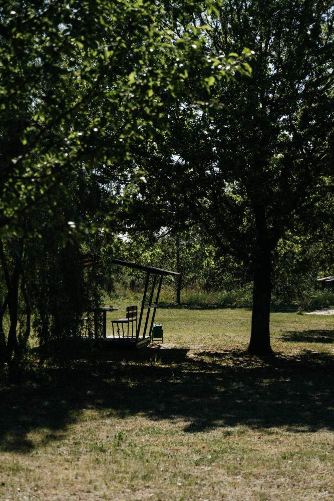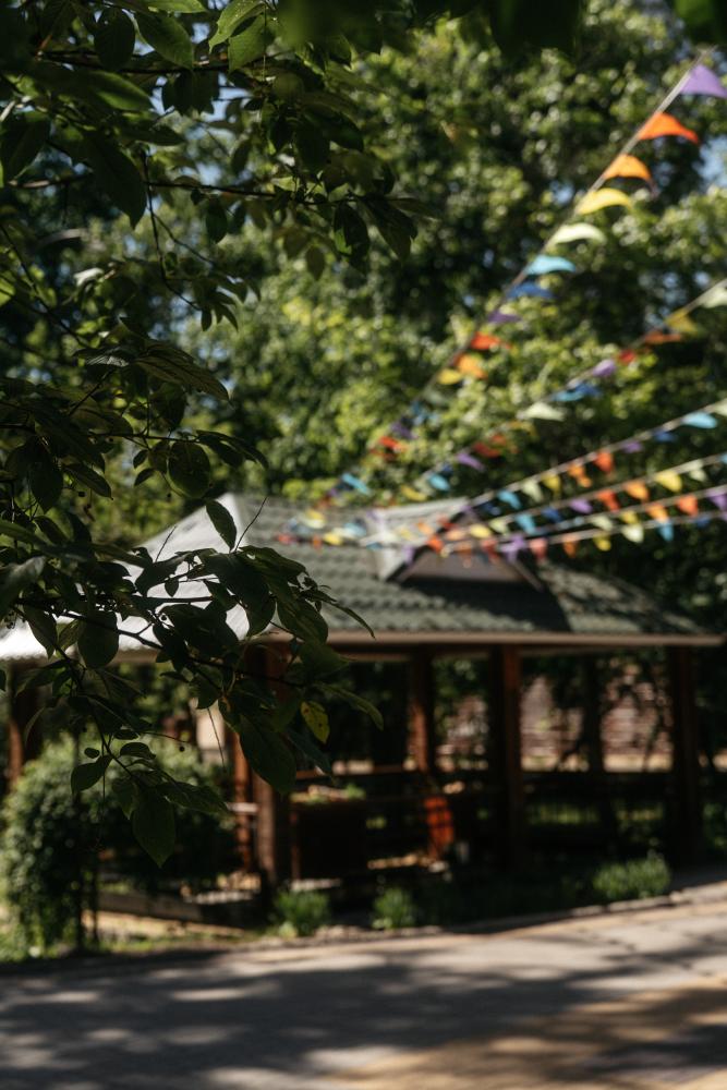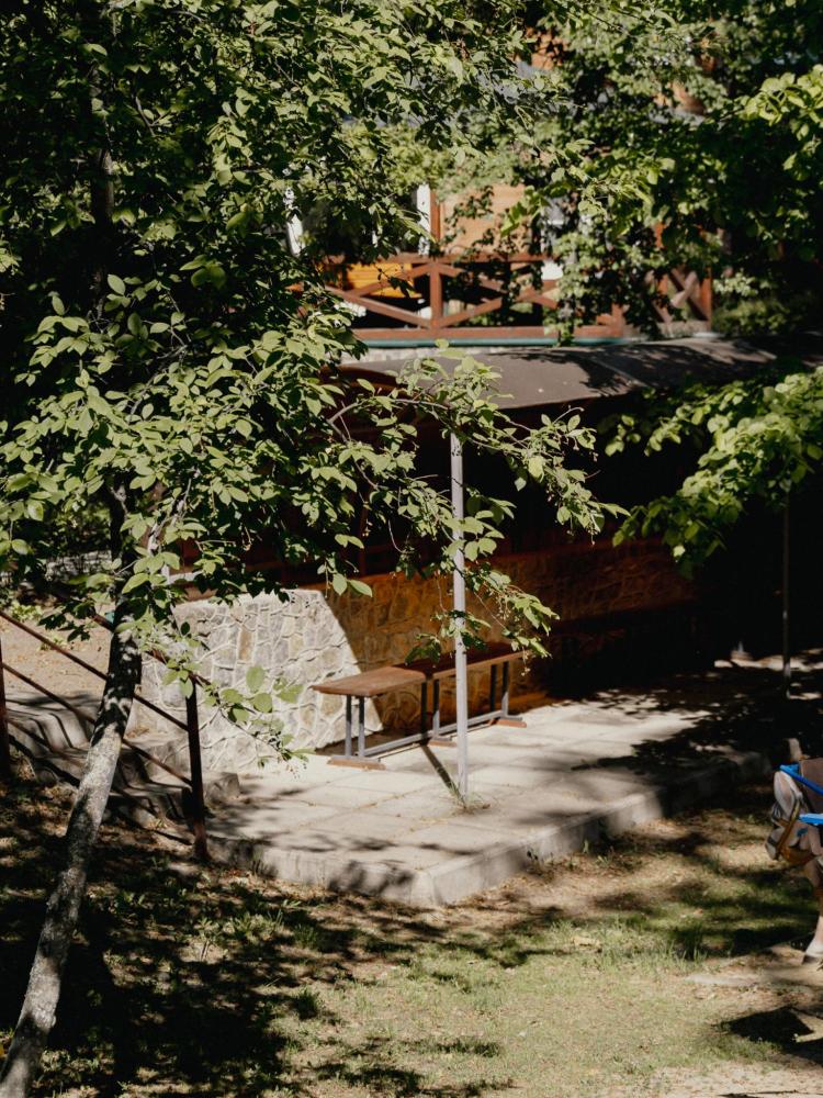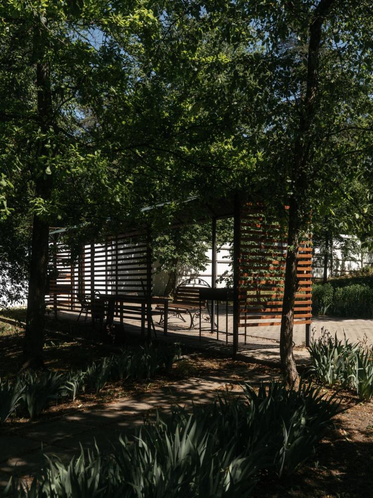 Одноэтажный, однокомнатный (двухместный) дом с кухней. В доме: Двуспальная кровать, прикроватная тумба, стол, стул, телевизор, кондиционер, шкаф. В кухне — кухонный гарнитур, индукционная плитка, микроволновая печь, холодильник, стол, стулья. Индивидуальная беседка и мангальная зона. В стоимость номера входит: набор туалетных принадлежностей (мыло, шампунь, гель), комплект полотенец, тапочки.