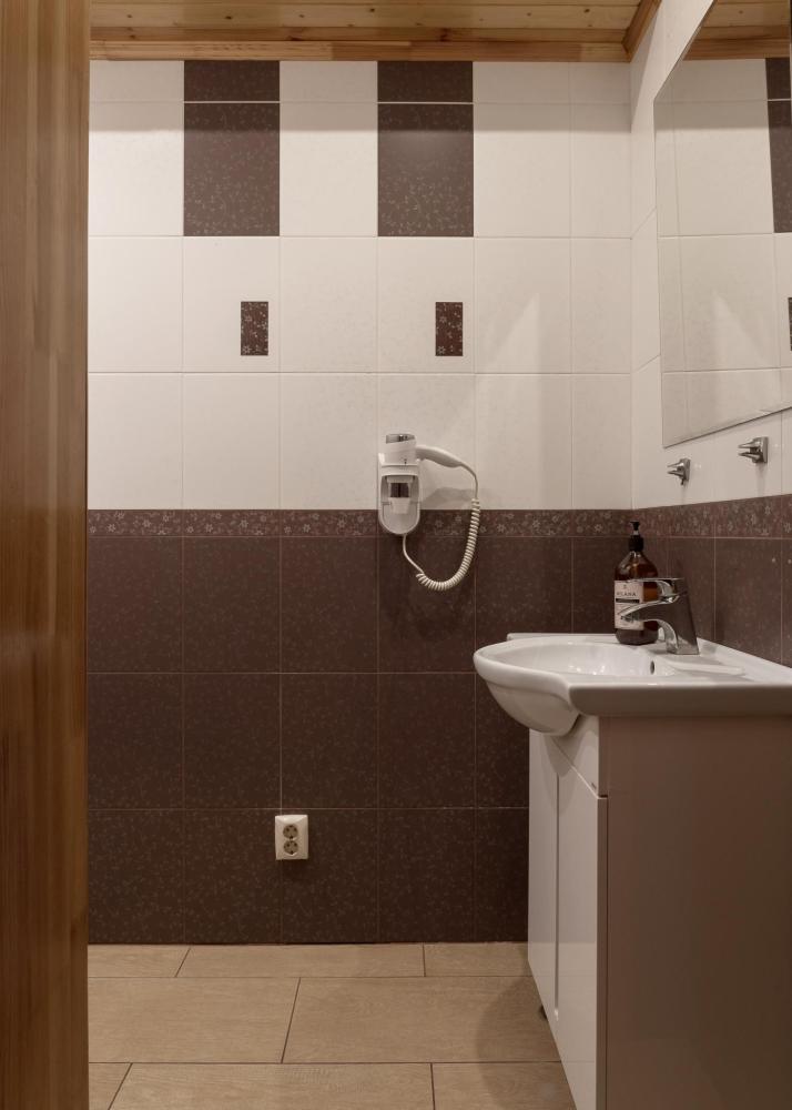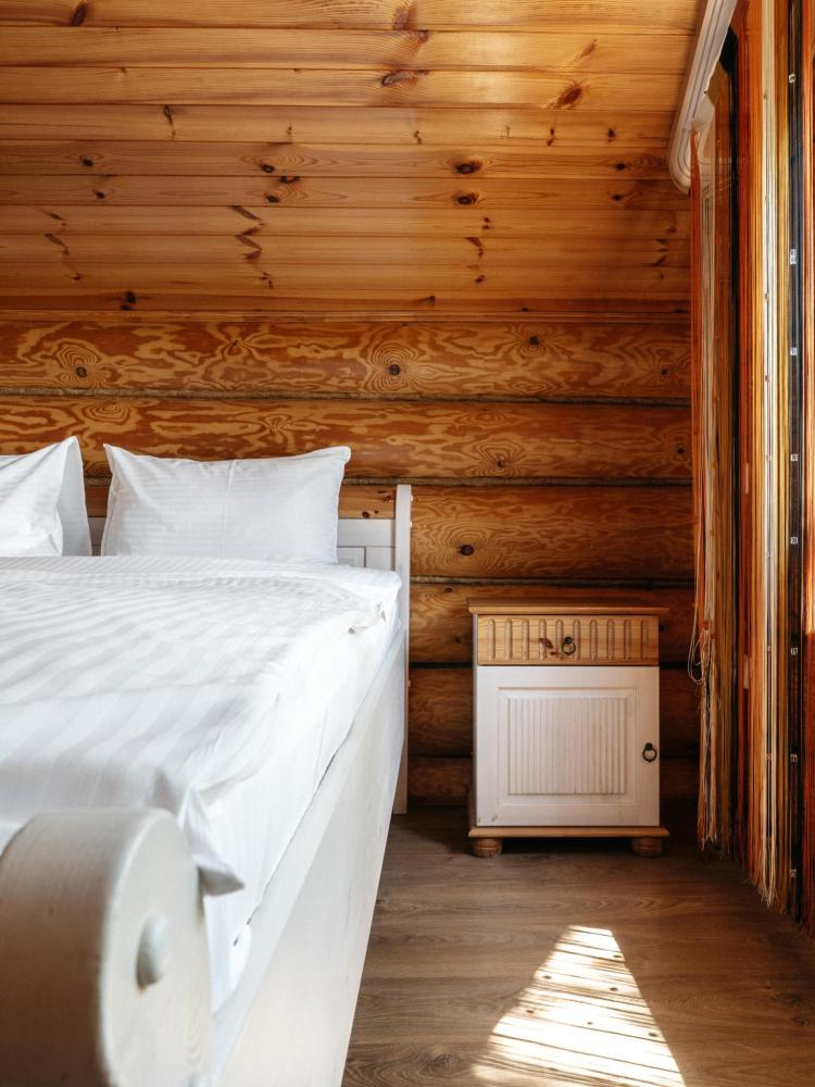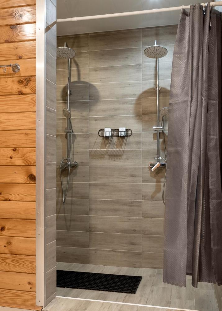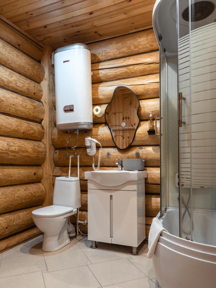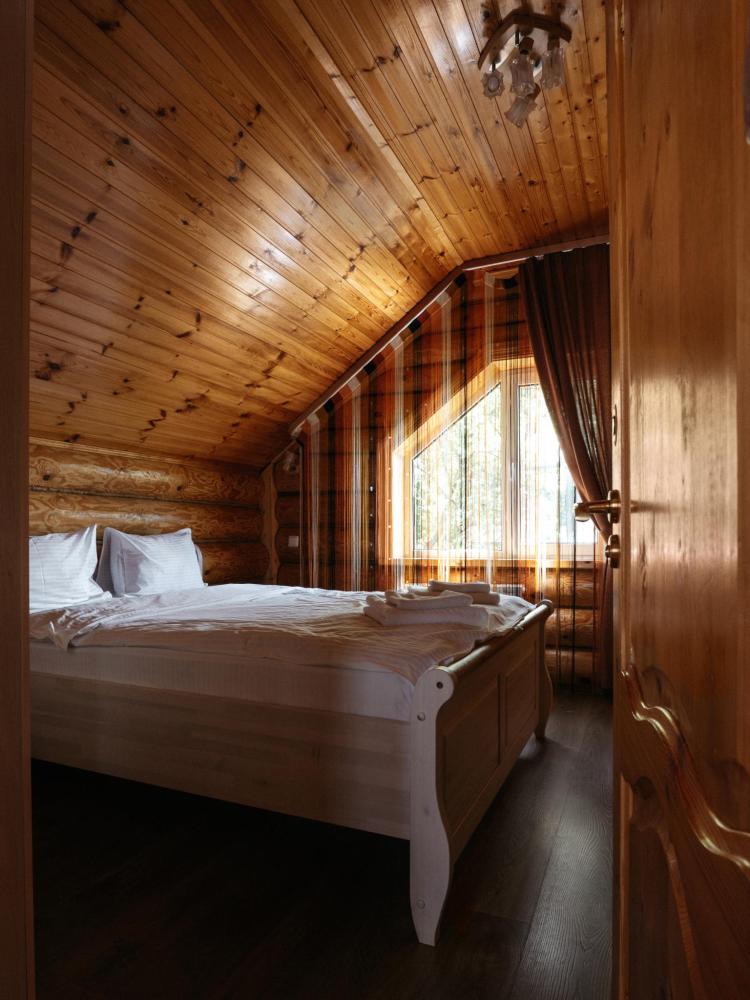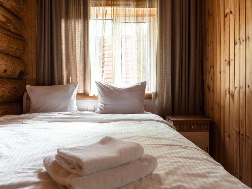 Двухэтажный, трехкомнатный (шестиместный) сруб . В номере: сейф, журнальный стол, диван, шкаф для одежды, холодильник, ТВ, фен. Индивидуальная беседка и мангальная зона. В каждом срубе 3 спальни с двуспальными кроватями. В стоимость номера входит: набор туалетных принадлежностей (мыло, шампунь, гель), комплект полотенец, тапочки.