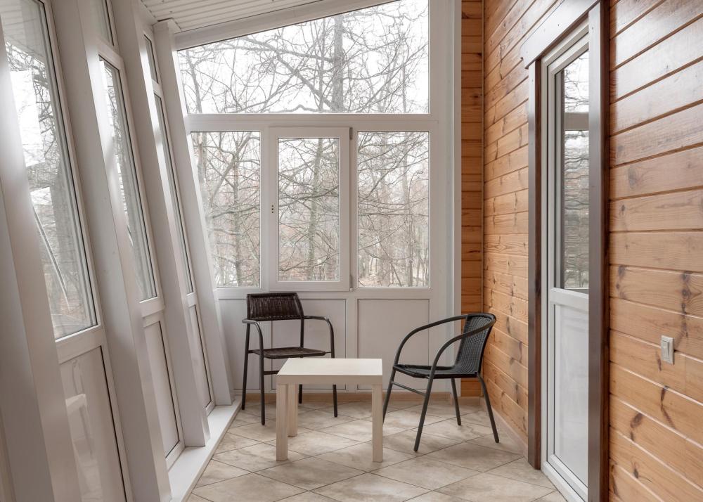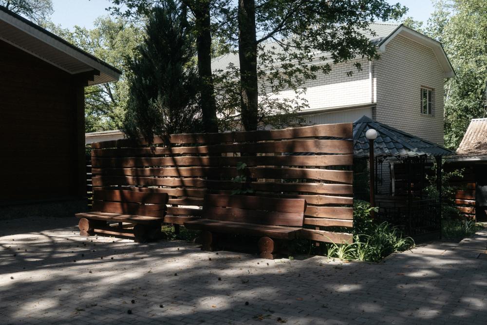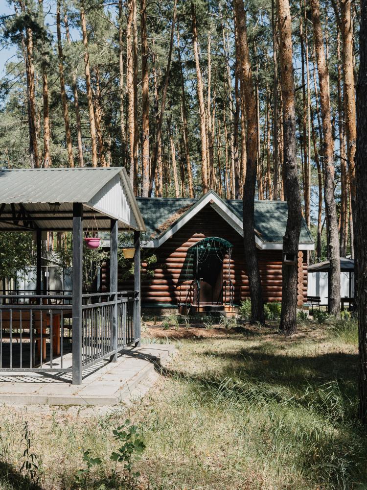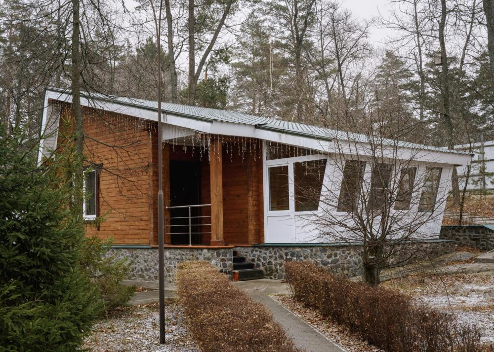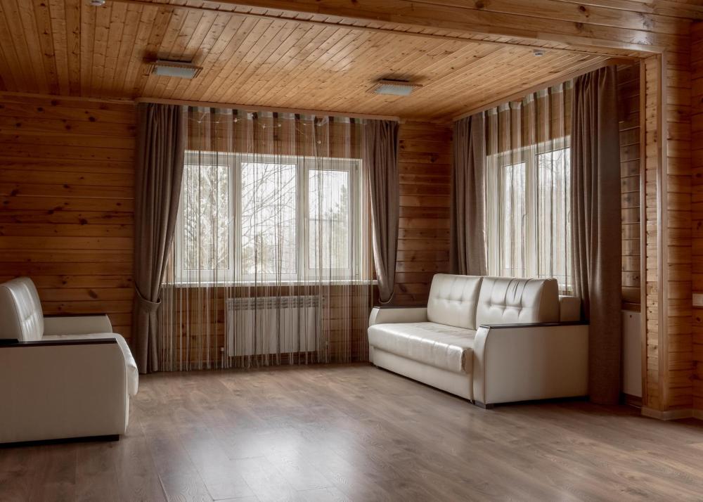 Одноэтажный однокомнатный (двухместный) сруб с верандой (№1,2,3,4). В номере: Сейф, диван, 2 кресла, письменный стол, стулья, шкаф для одежды, кондиционер, холодильник. Индивидуальная беседка. Общая мангальная зона у срубов №1, 2, 3. В стоимость номера входит: набор туалетных принадлежностей (мыло, шампунь, гель), комплект полотенец, тапочки.