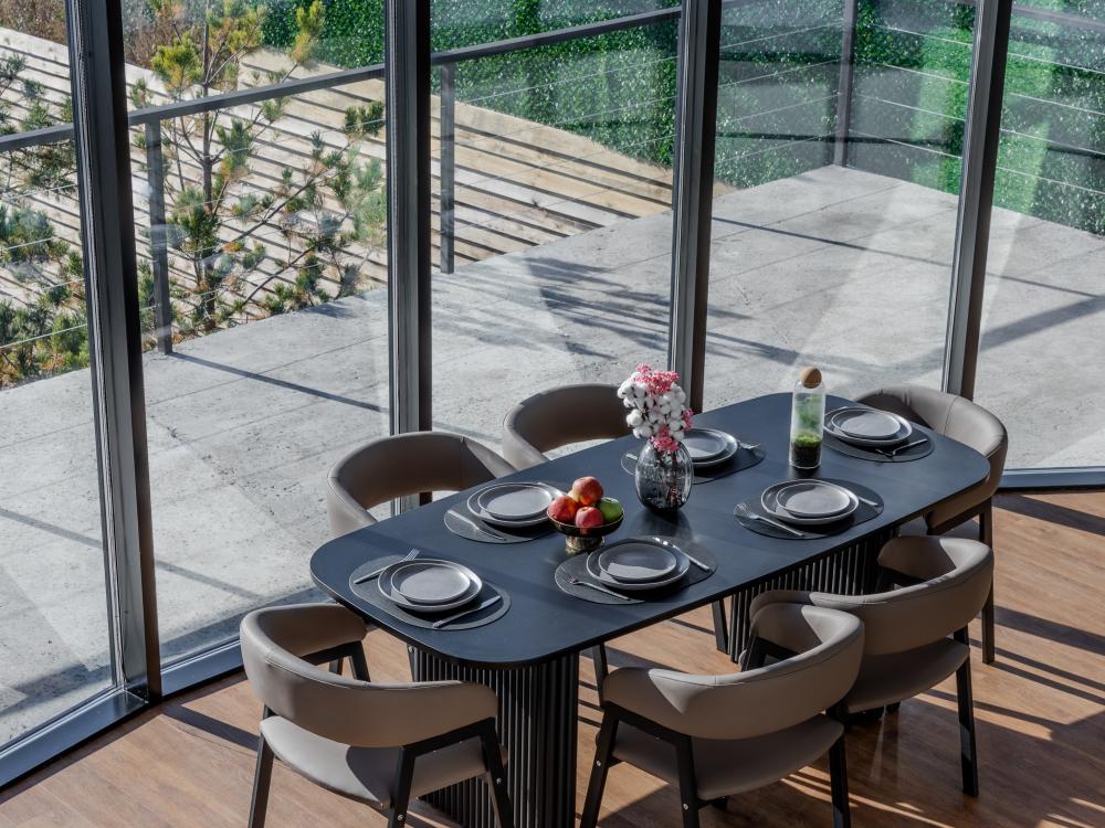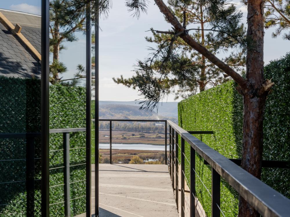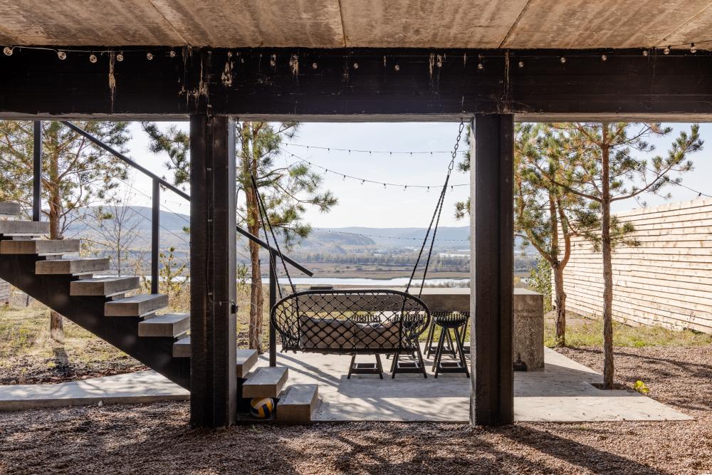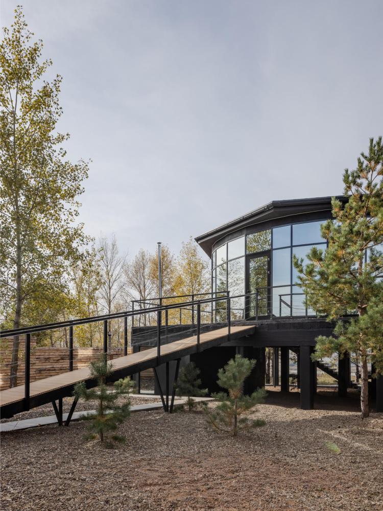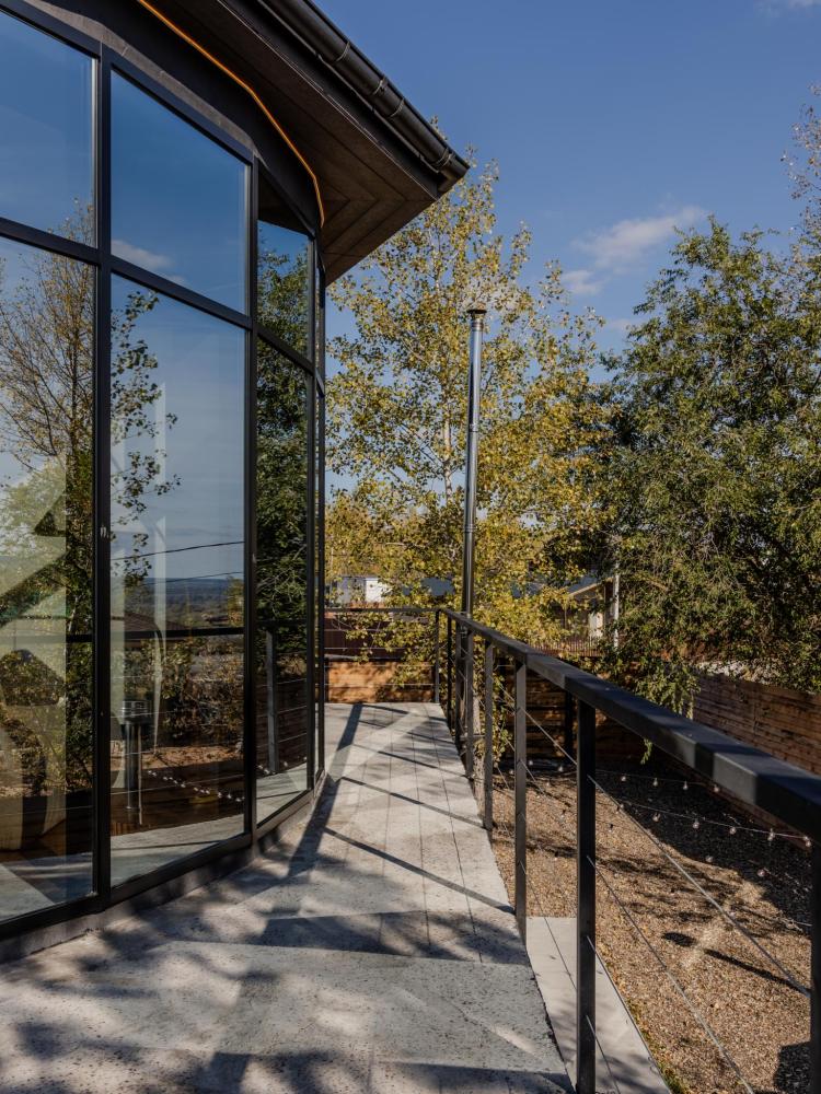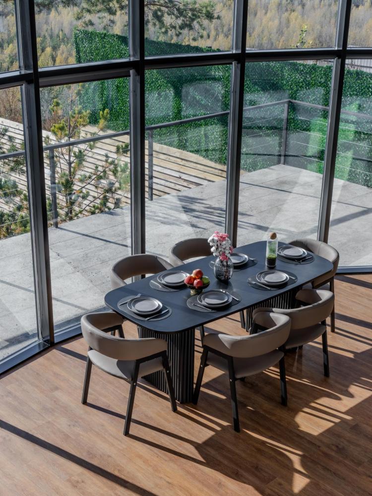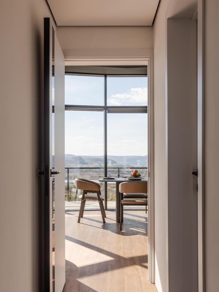Просторный круглый дом со стеклянными стенами на 360° и захватывающим видом на реку и горы. Вместимость — до 8 взрослых и 2 детей. Спальные места: три двуспальные кровати и раскладной двуспальный диван. В доме доступна система «Умный дом» с голосовым управлением через Яндекс.Станцию. Гостей ждет полностью оборудованная техникой и посудой кухня с обеденной зоной: микроволновка, плитка, чайник. Постельное бельё, полотенца, Wi-Fi, тёплые полы, стильная подсветка. Санузел с душем и стиральной машиной.