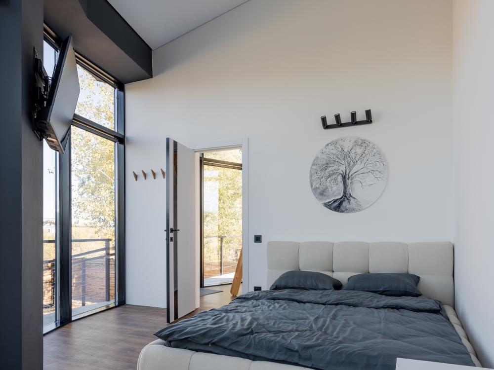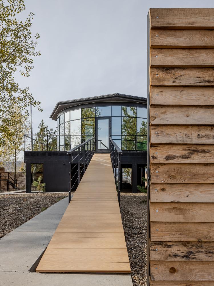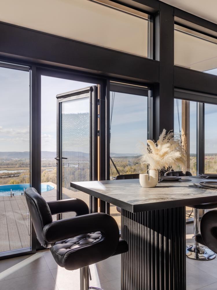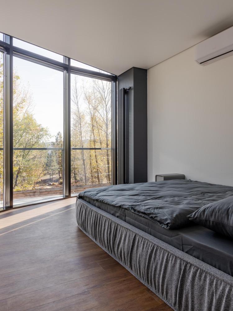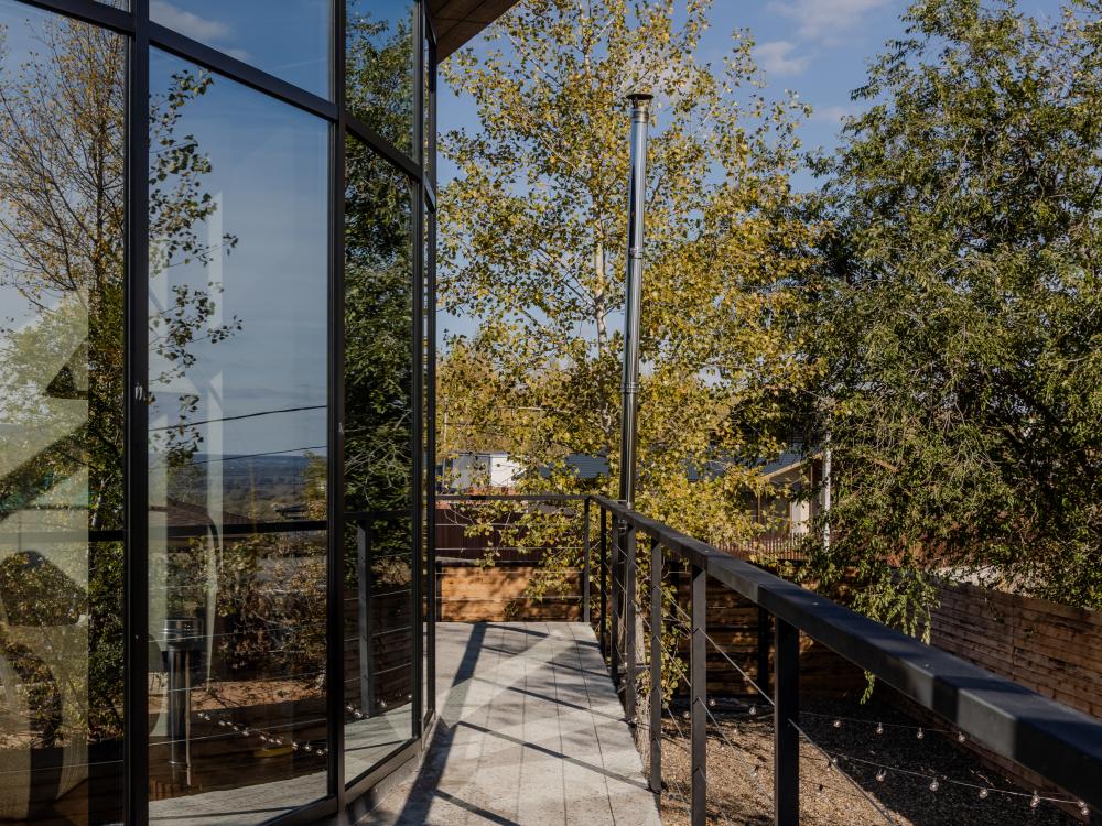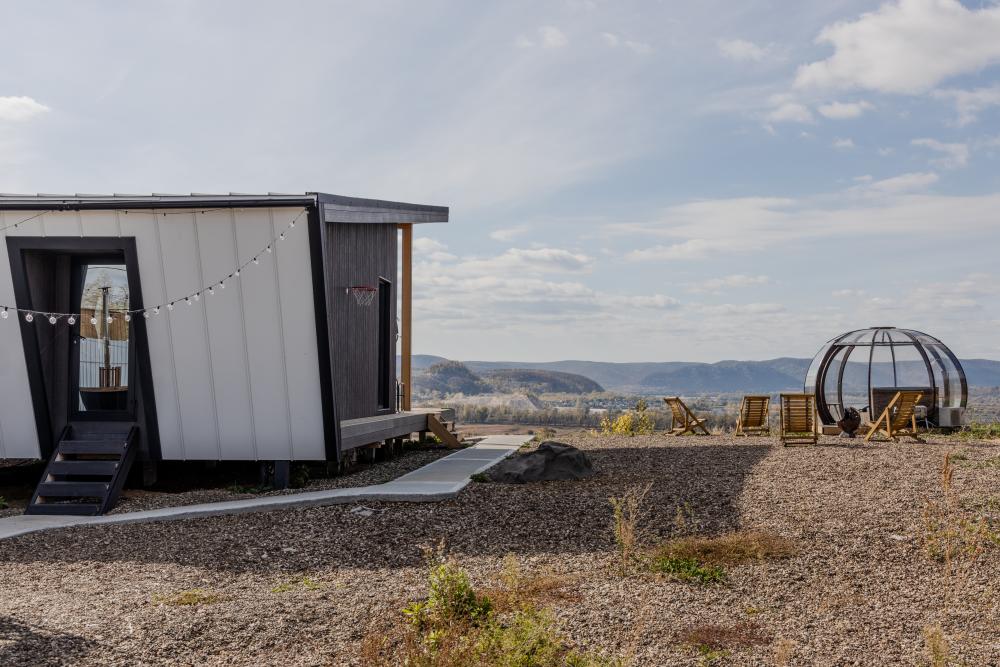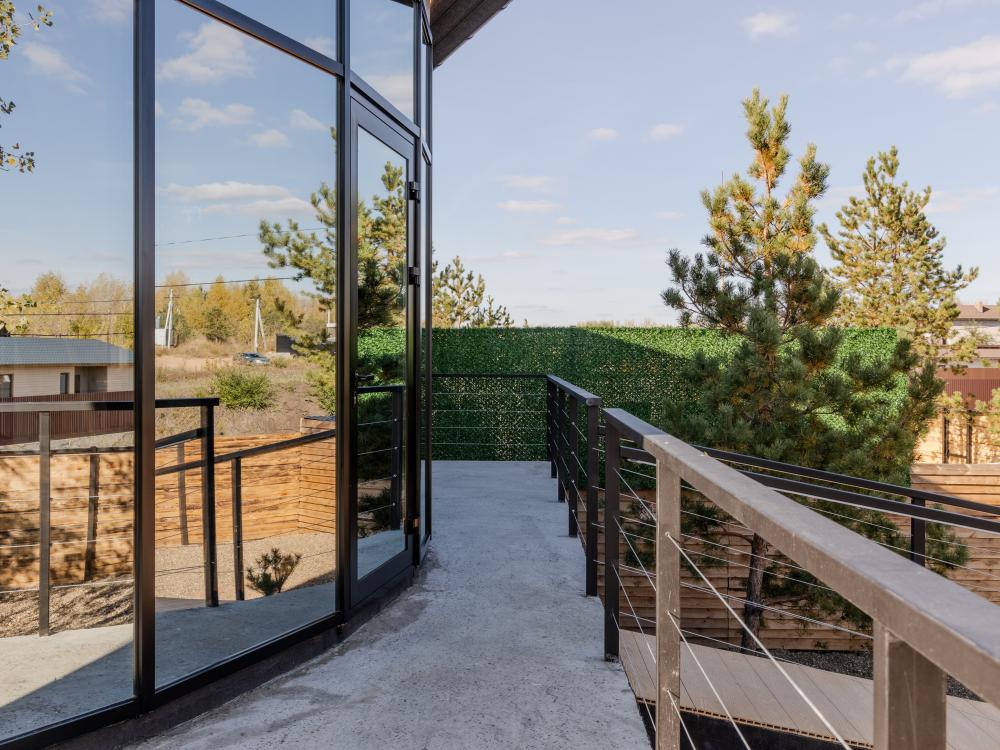 Просторный круглый дом со стеклянными стенами на 360° и захватывающим видом на реку и горы. Вместимость — до 8 взрослых и 2 детей. Спальные места: три двуспальные кровати и раскладной двуспальный диван. В доме доступна система «Умный дом» с голосовым управлением через Яндекс.Станцию. Гостей ждет полностью оборудованная техникой и посудой кухня с обеденной зоной: микроволновка, плитка, чайник. Постельное бельё, полотенца, Wi-Fi, тёплые полы, стильная подсветка. Санузел с душем и стиральной машиной.