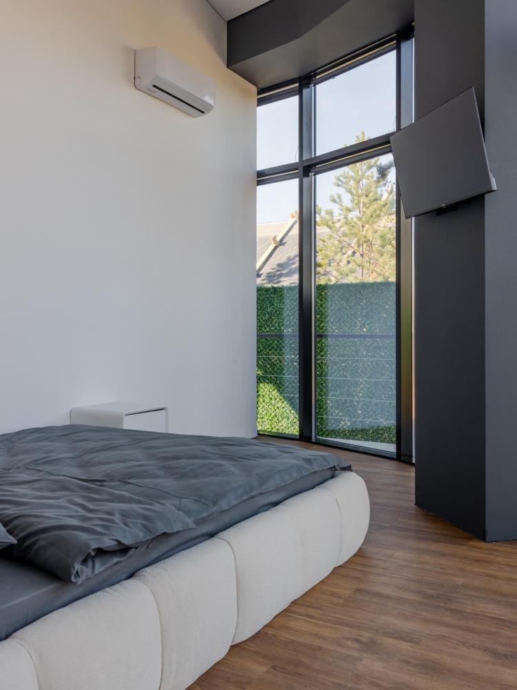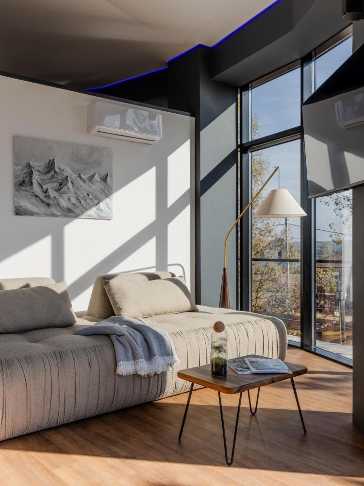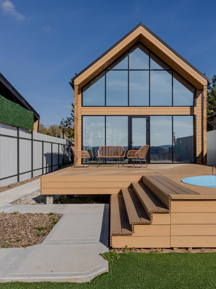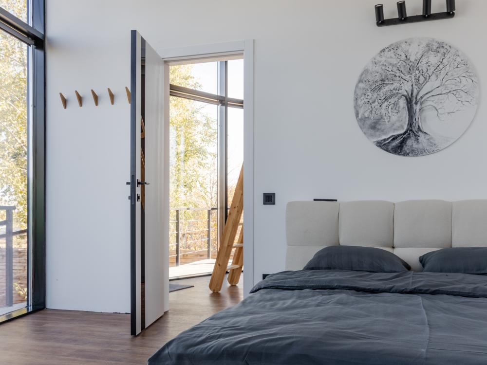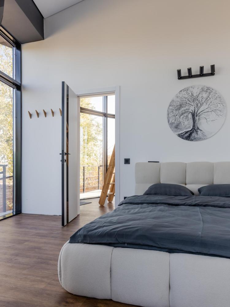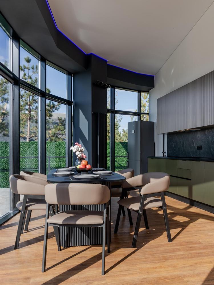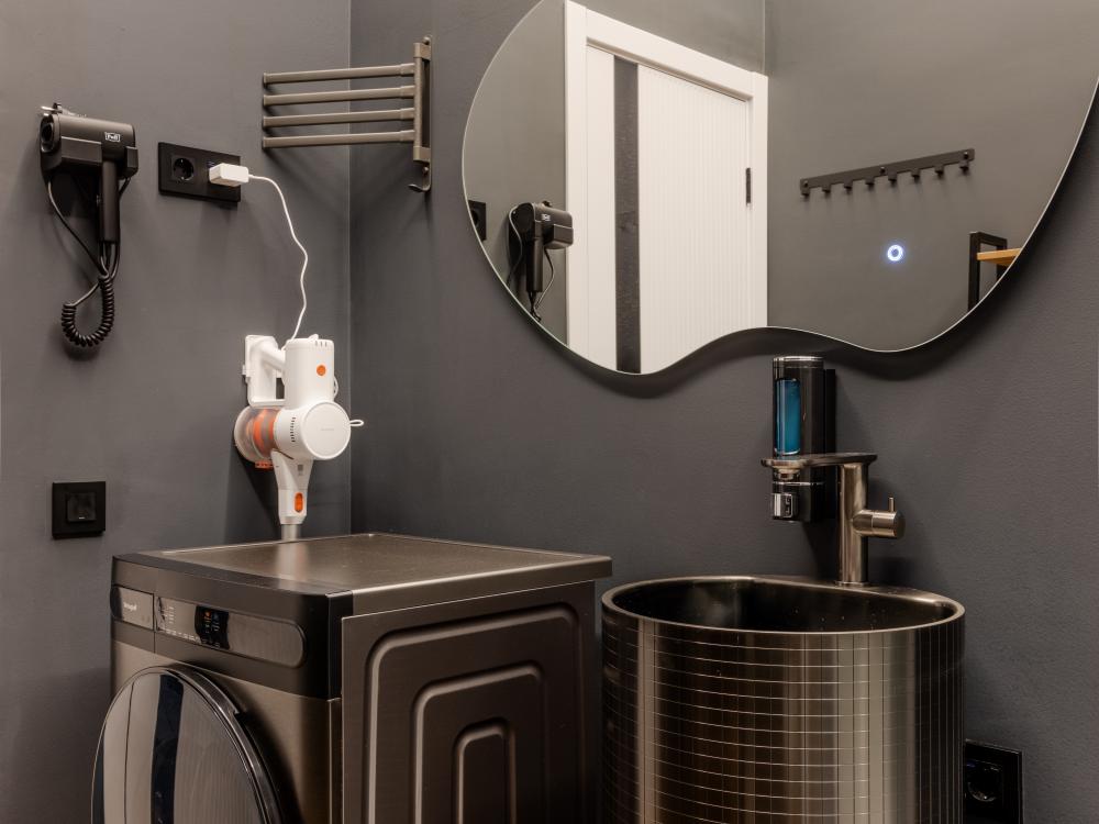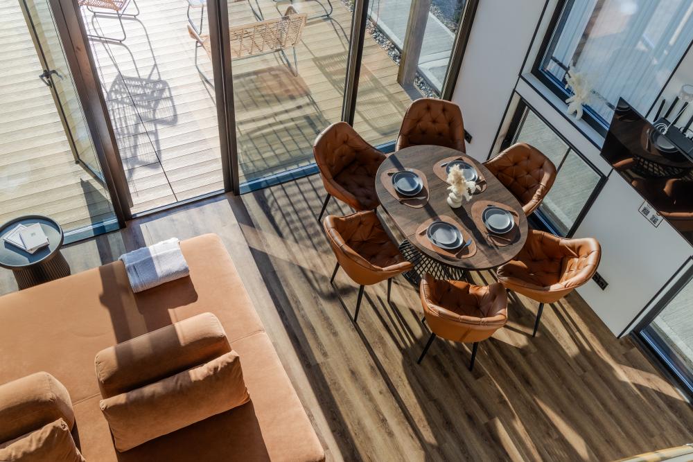 Просторный круглый дом со стеклянными стенами на 360° и захватывающим видом на реку и горы. Вместимость — до 8 взрослых и 2 детей. Спальные места: три двуспальные кровати и раскладной двуспальный диван. В доме доступна система «Умный дом» с голосовым управлением через Яндекс.Станцию. Гостей ждет полностью оборудованная техникой и посудой кухня с обеденной зоной: микроволновка, плитка, чайник. Постельное бельё, полотенца, Wi-Fi, тёплые полы, стильная подсветка. Санузел с душем и стиральной машиной.
