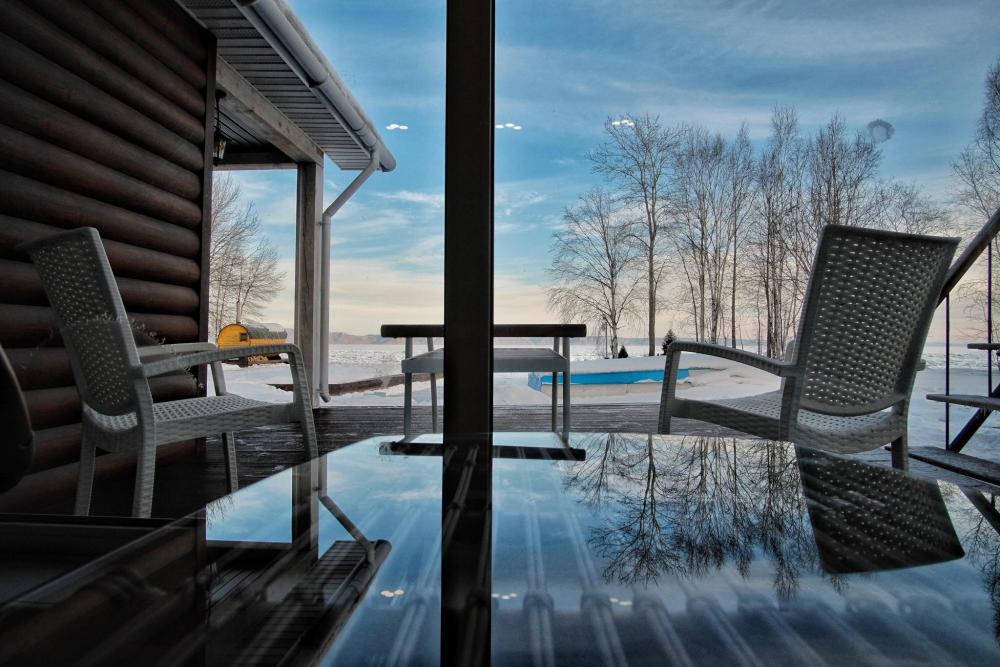 Отель стоит на первой линии берега, окна шале выходят прямо на Байкал. Это отель на Байкале с видом на Байкал и прямым выходом к воде: зимой — лёд и хрустящий воздух, летом — прозрачная вода и рассветы над озером. Мы относимся к тем редким отелям Байкала с видом на озеро, где вся концепция построена вокруг горизонта и присутствия природы.