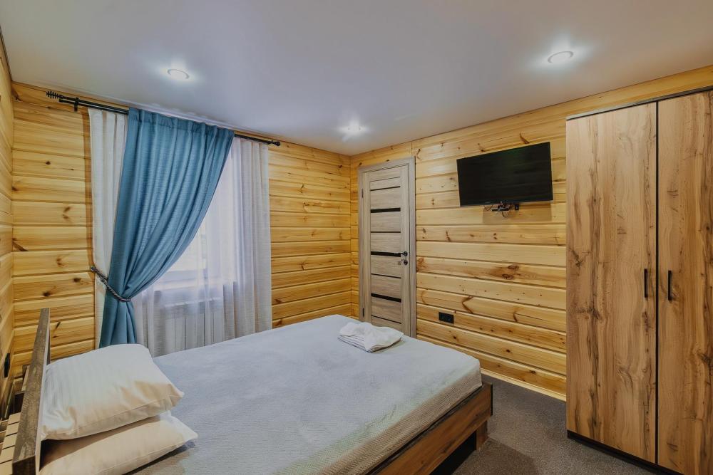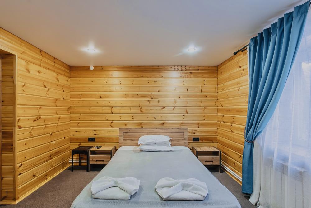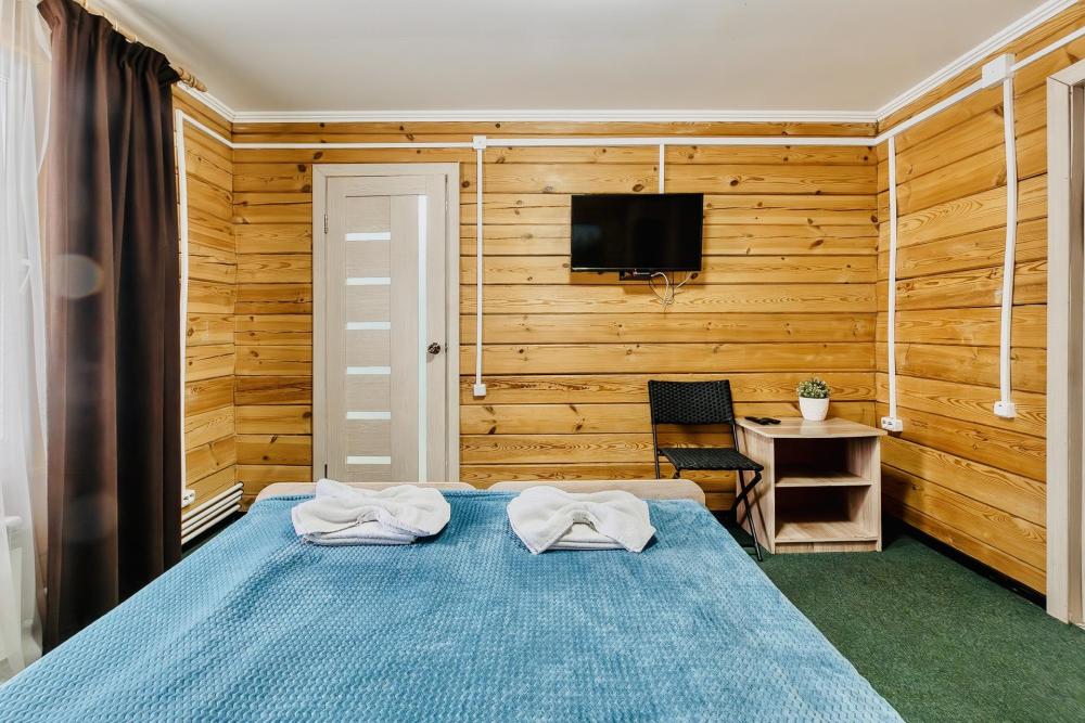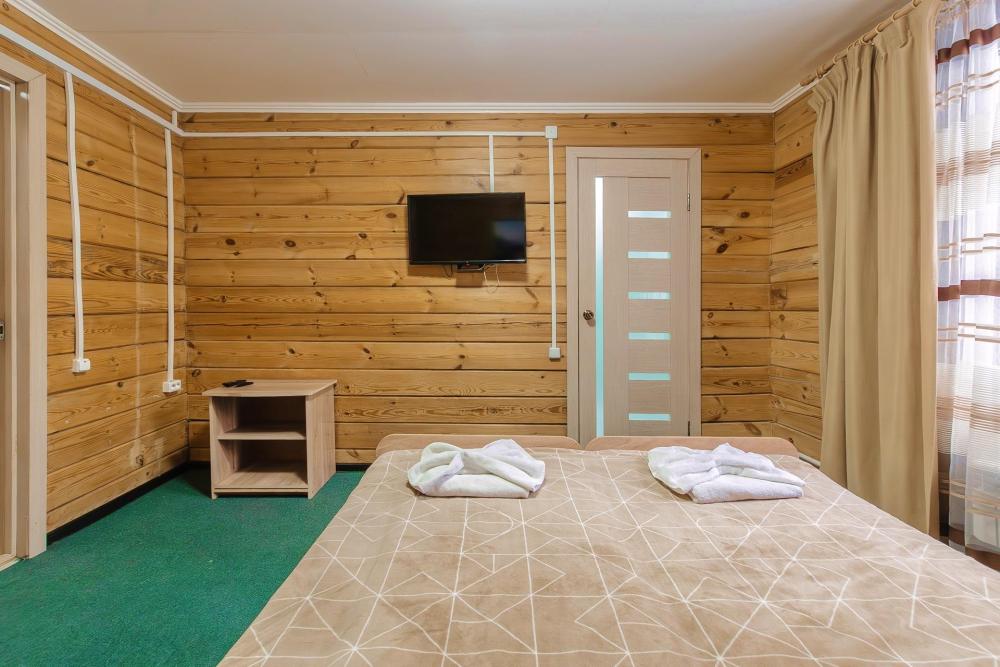 Стандартный двухместный номер площадью 25 кв.м с собственной террасой и видом на реку. Подходит для размещения 3 человек (2 основных места и 1 дополнительное). Имеет спальню с приятным интерьером. В номере: 1 двуспальная кровать, телевизор, шкаф, вешалка, рабочий стол, стулья, индивидуальная ванная комната: душ, раковина, туалет. В стоимость входит: постельное бельё, полотенца, мыло.