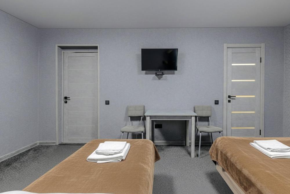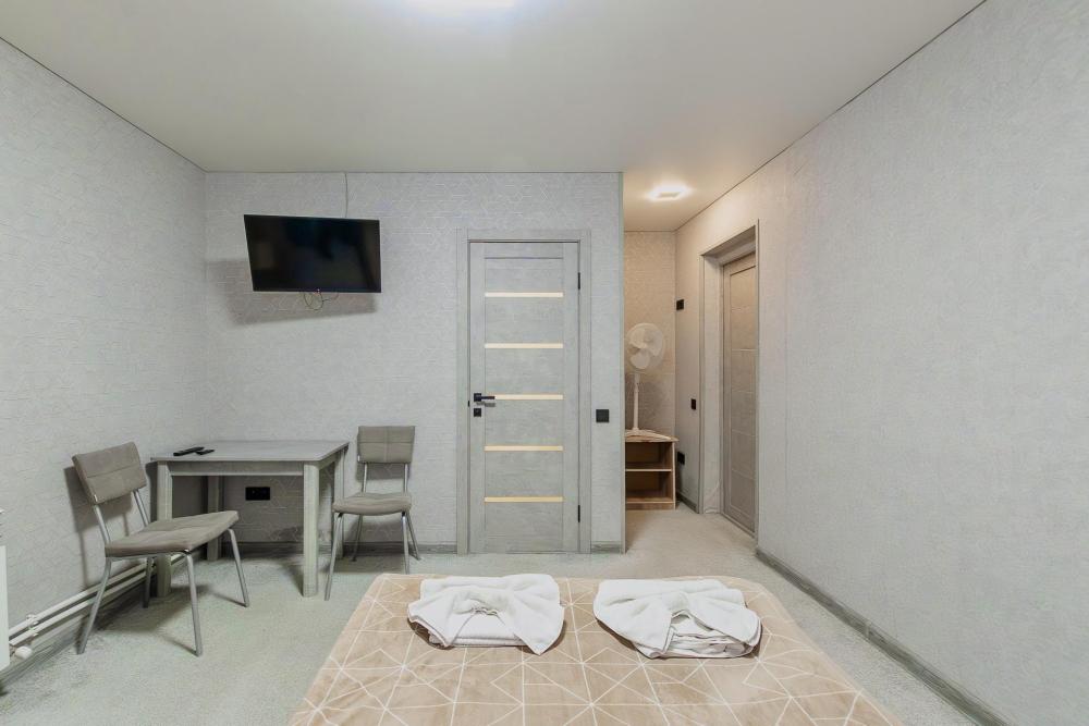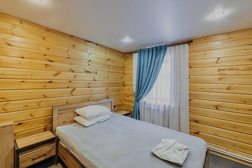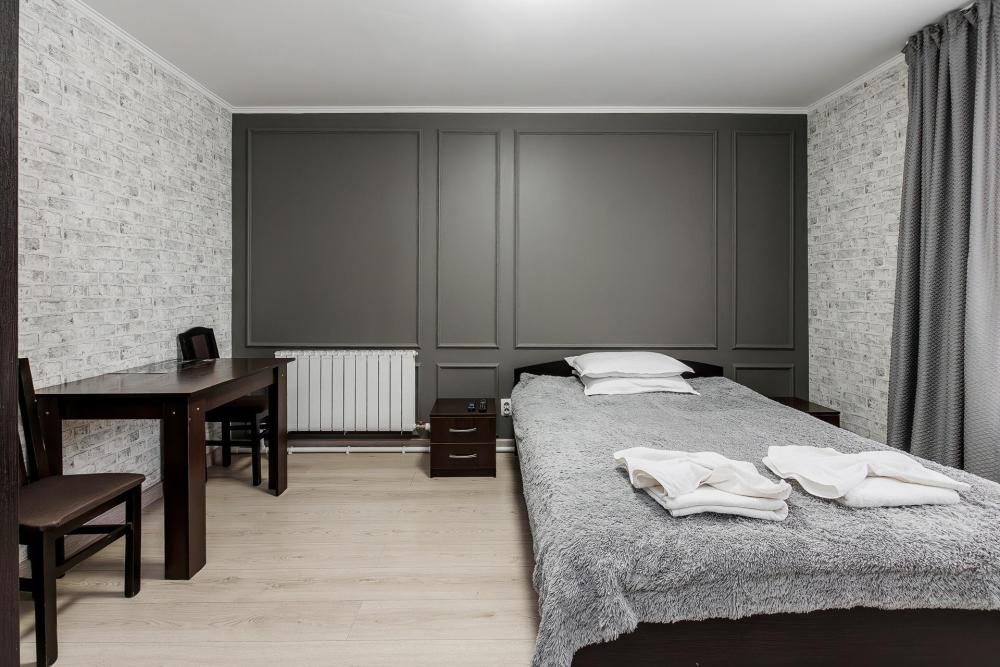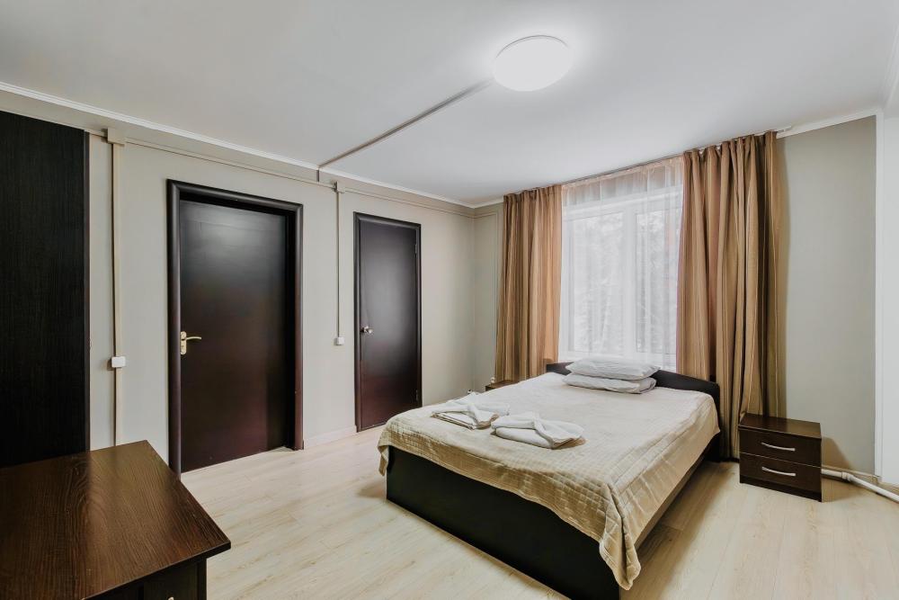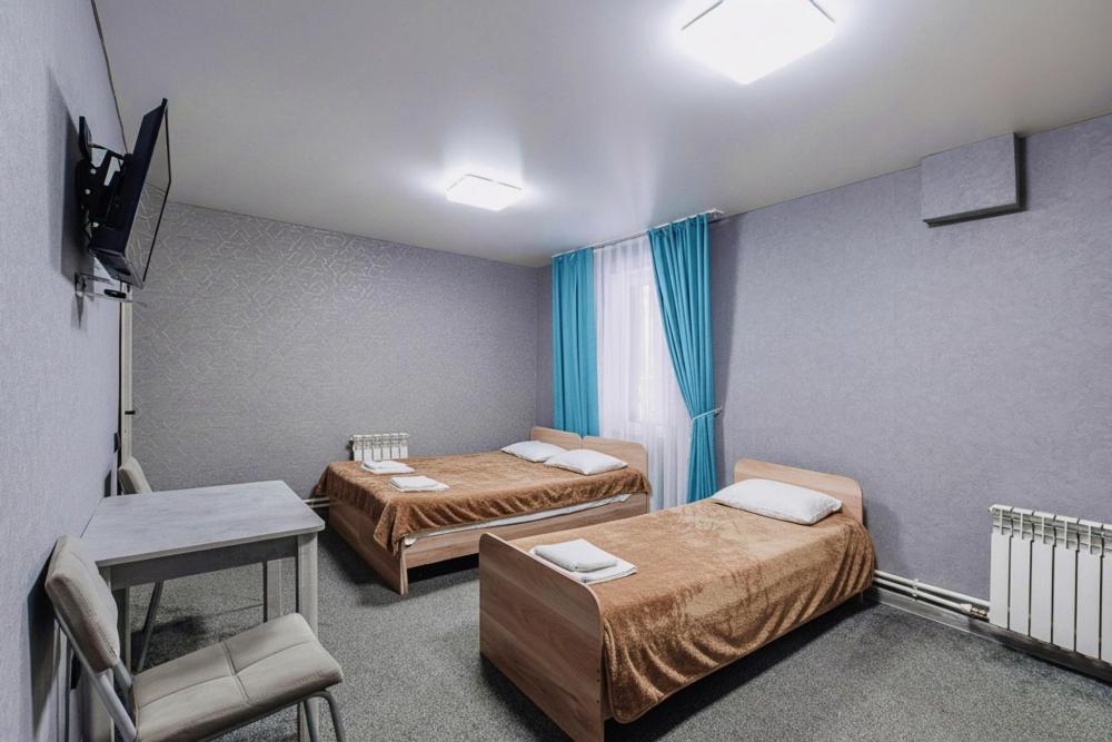 Стандартный двухместный номер площадью 20 кв.м с видом во двор. Подходит для размещения 3 человек (2 основных места и 1 дополнительное. Имеет спальню с приятным интерьером. В номере: 1 двуспальная кровать или 2 односпальные кровати, телевизор, шкаф, вешалка, рабочий стол, холодильник, стулья, индивидуальная ванная комната: душ, раковина, туалет. В стоимость входит: постельное бельё, полотенца, мыло.