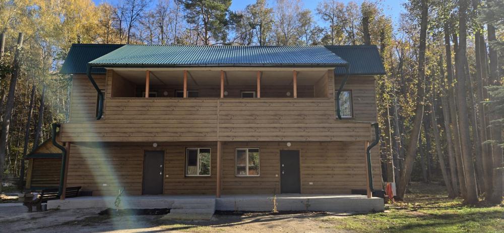 Дом из бруса летний рассчитан на 4 человека, оборудован всем необходимым для комфортного отдыха. В доме две комнаты, кухня, сан. узел. В одной комнате: двуспальная кровать, полотяной шкаф, прикроватная тумбочка; в другой комнате: две односпальные кровати. Кухня (обеденный стол, посуда на 4 персоны, холодильник, индукционная плита, СВЧ, электрический чайник). Сан. узел (унитаз, раковина, душевая кабина). Гигиенические принадлежности, полотенца, тапочки необходимо взять с собой. Мангальная зона общая.