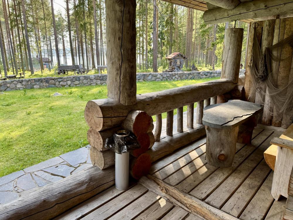 Эксклюзивный, экологический коттедж ручной работы из сухостойной сосны Kelo, в сосновом бору на берегу Онежского озера. Кухня-гостиная с эксклюзивным камином из шуньгита. Две спальни. Сауна. Терраса. До Онежского озера 180 м