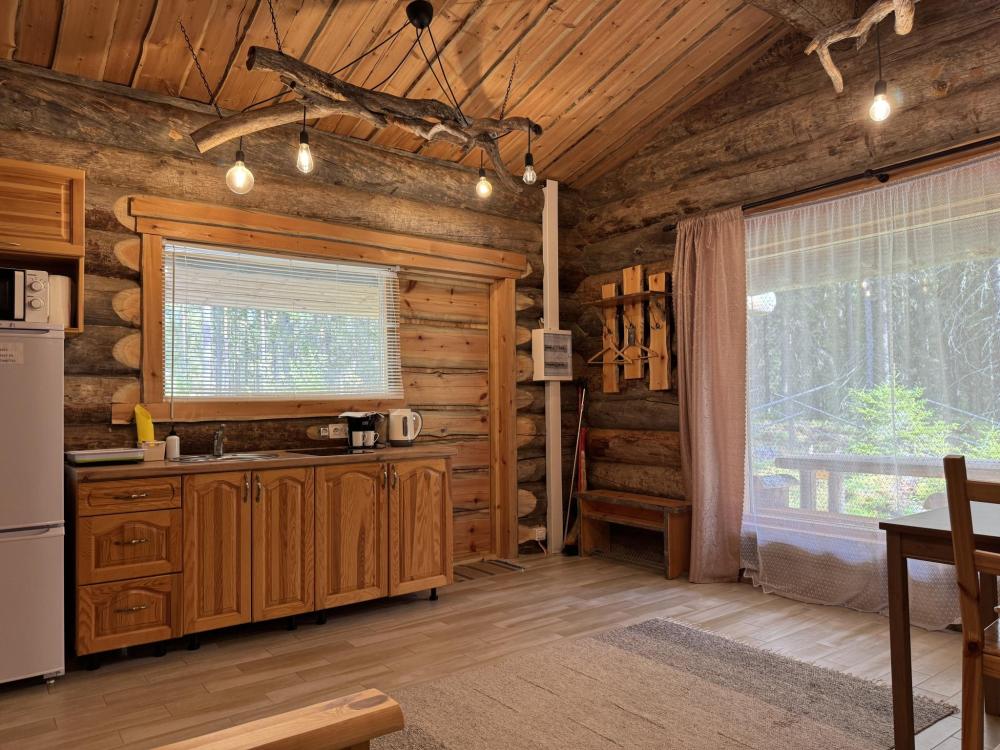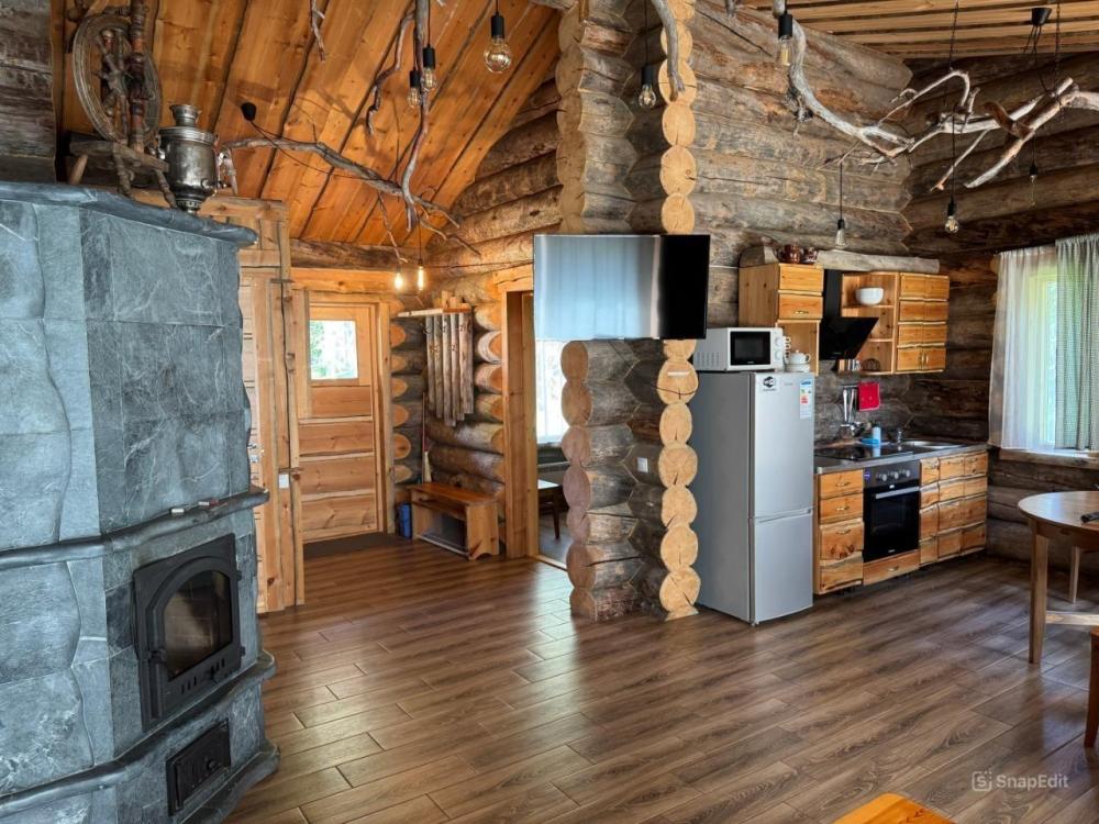 Эксклюзивный, экологический коттедж ручной работы из сухостойной сосны Kelo, в сосновом бору на берегу Онежского озера Сауна, камин, большая гостиная совмещенная с кухней со всем необходимым для приготовления пищи, холодильник, микроволновая печь, плита, духовой шкаф, чайник, ЖК телевизор, душевая кабина. До Онежского озера 100 м