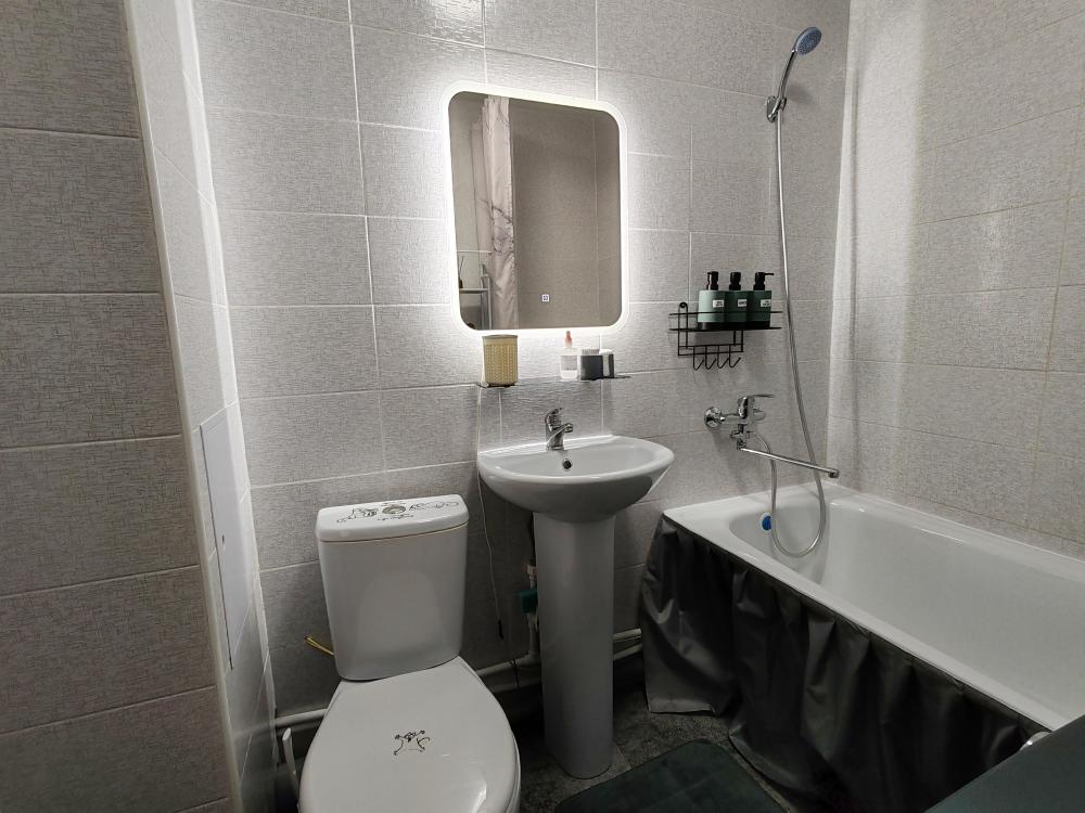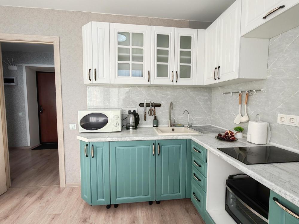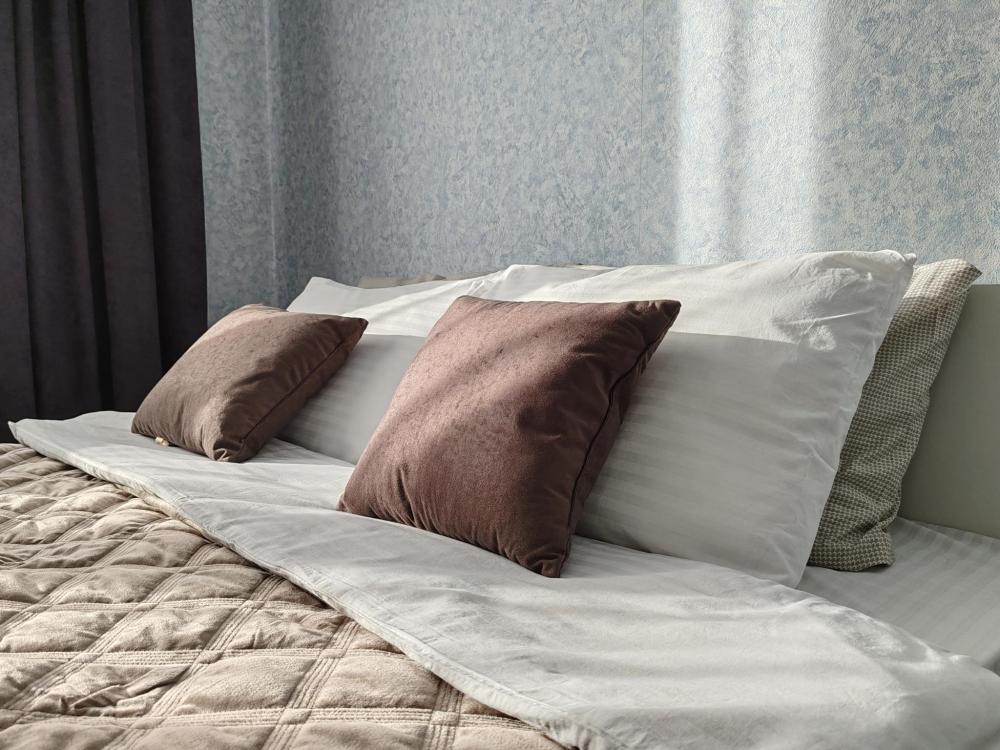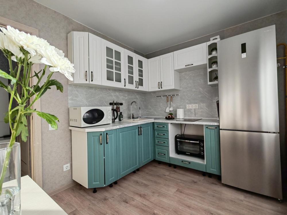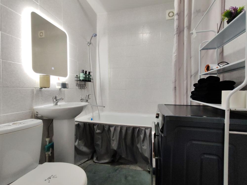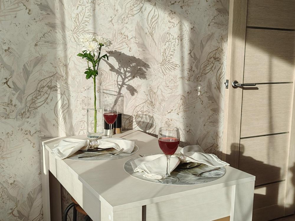 Уютные однокомнатные апартаменты. В квартире есть всё необходимое для гостей: диван двуспальный, большая двуспальная кровать, 4 табуретки, стол кухонный, посуда, столовые приборы, штопор, холодильник, постельное белье, полотенца, комплект на каждого гостя, одноразовые щетки, гигиенические средства, подушки, одеяла, пледы, телевизор Smart-TV, интернет, утюг, гладильная доска, сушилка для белья, стиральная машина, фен.