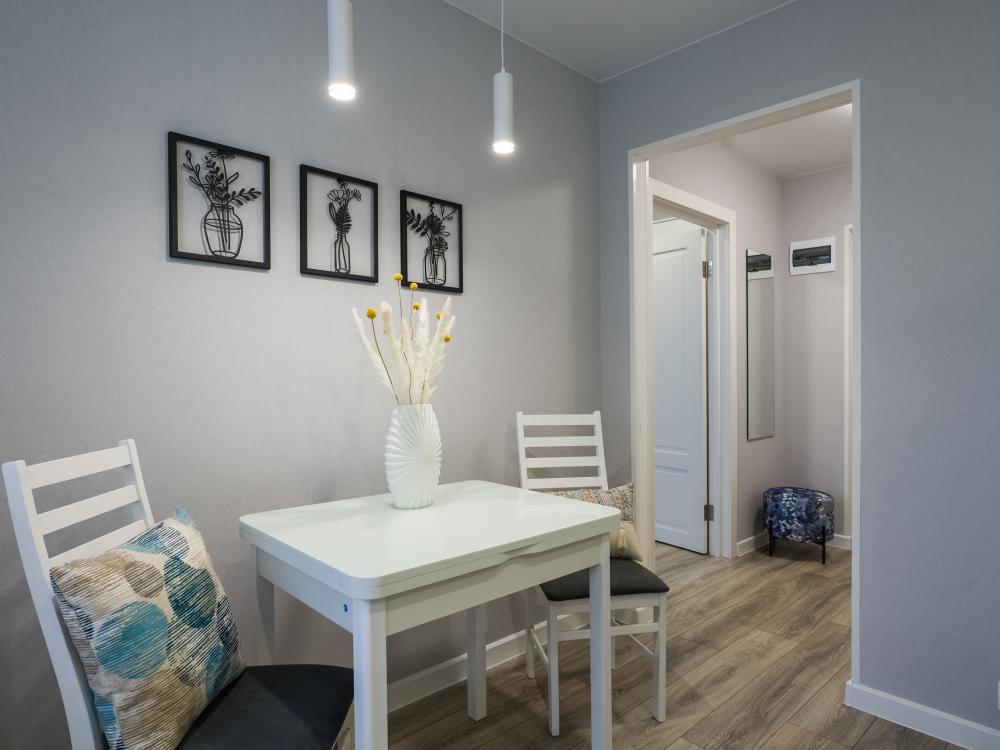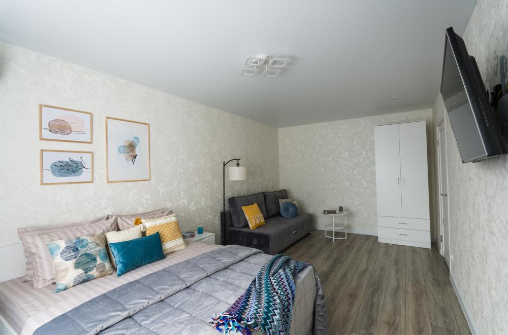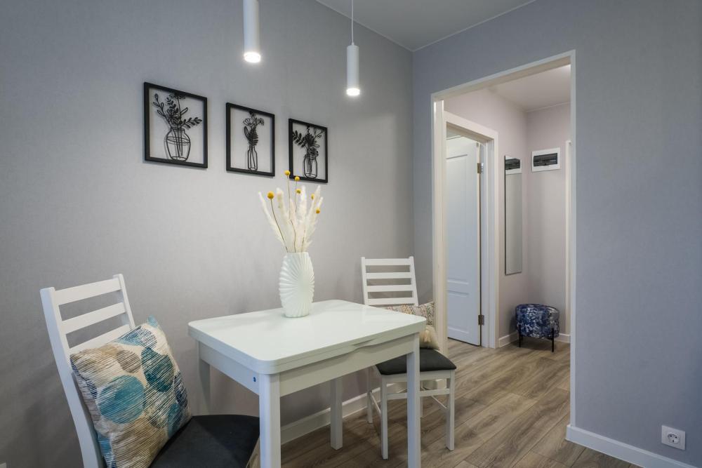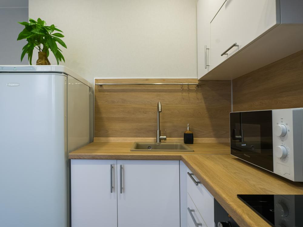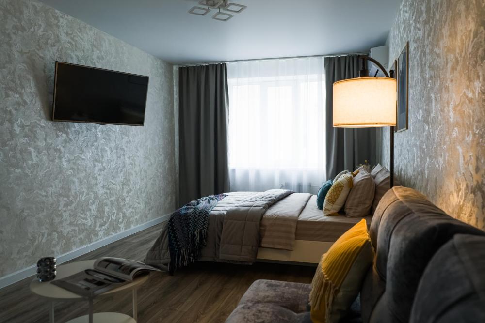 Квартира оснащена: двуспальная кровать с ортопедическим матрасом 160/200, диван раскладной 140/190; кухня со всем необходимым: микроволновая печь, холодильник; стиральная машина; фен; утюг, гладильная доска; кондиционер. Для маленьких гостей по предварительному запросу предоставляется ванночка, детский стульчик и горшочек; детские игрушки, коврик для игры.