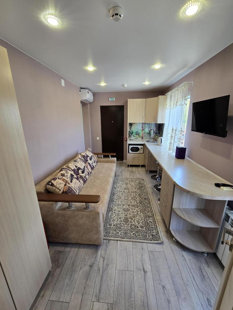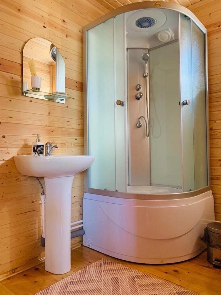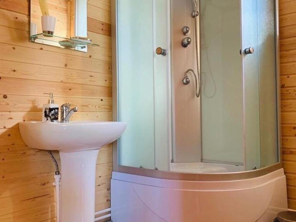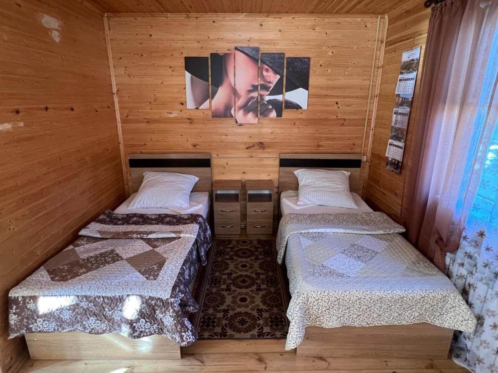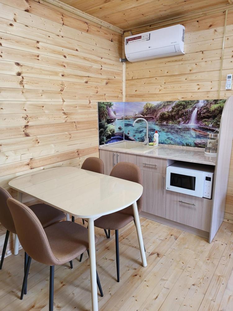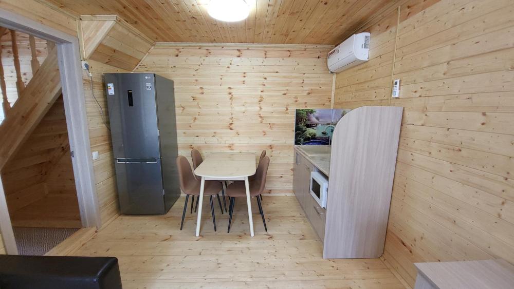 Уютный домик общей площадью 30 кв.м. для размещения до 3-х гостей. Дом оснащен всем необходимым для комфортного проживания гостей: необходимая мебель, холодильник, телевизор и сплит-система, две односпальные кровати, отопление. У каждого домика своя, просторная веранда.
