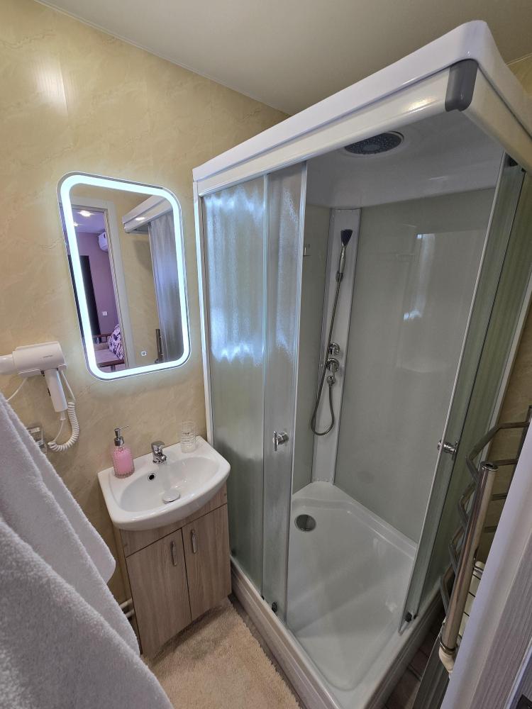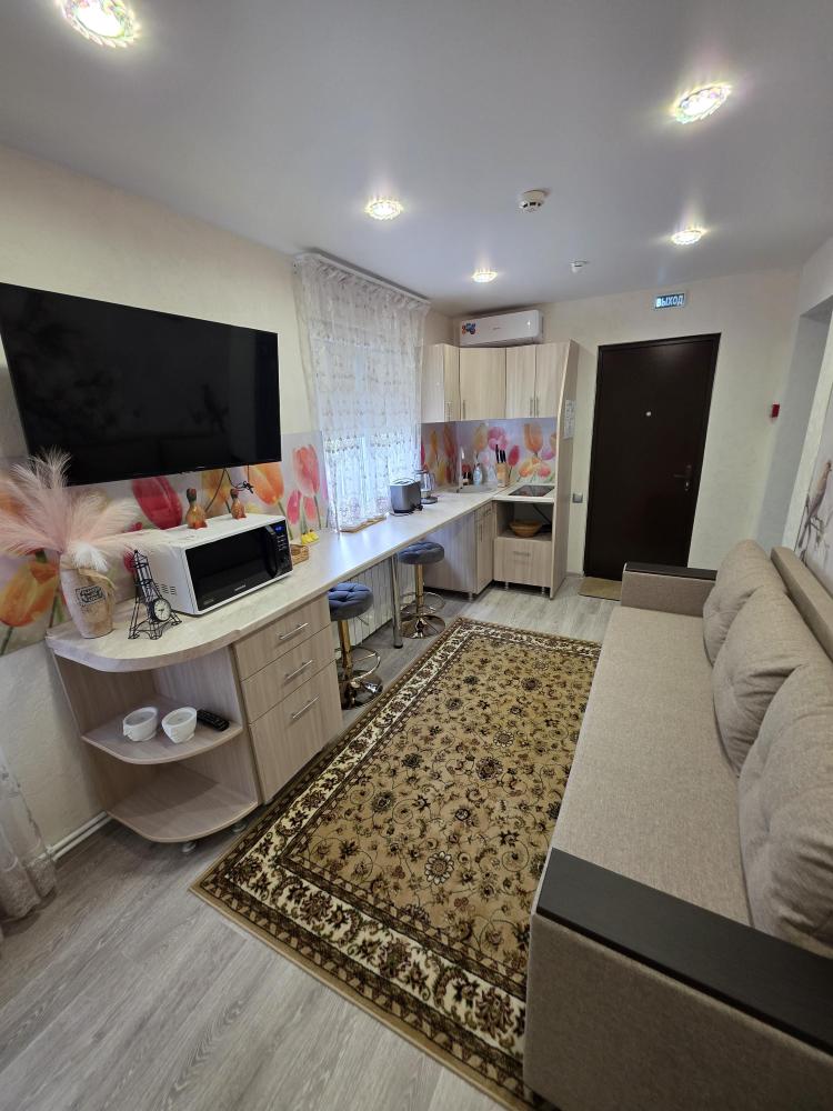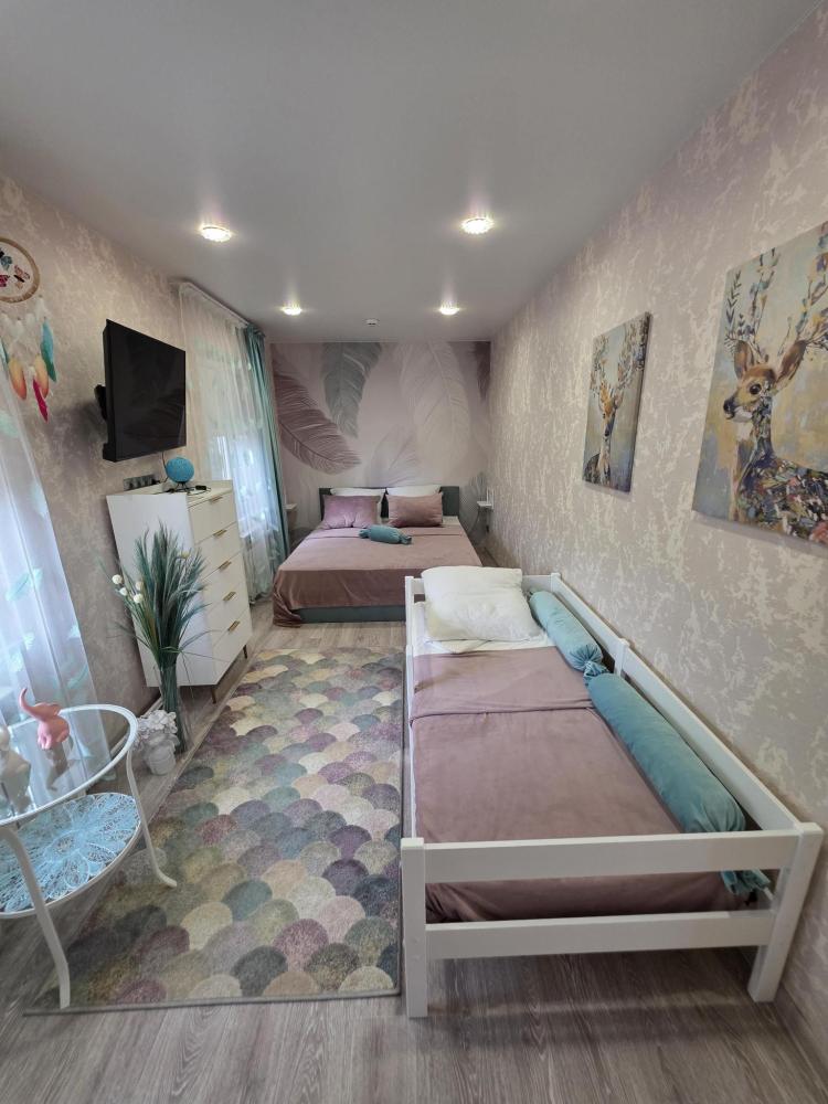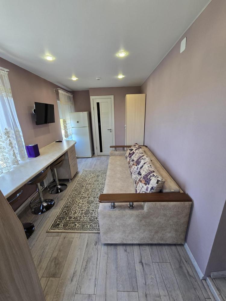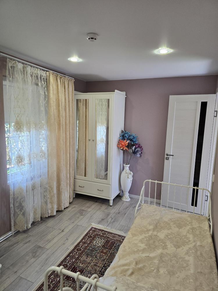 Уютный домик общей площадью 30 кв.м. для размещения до 3-х гостей. Дом оснащен всем необходимым для комфортного проживания гостей: необходимая мебель, холодильник, телевизор и сплит-система, две односпальные кровати, отопление. У каждого домика своя, просторная веранда.