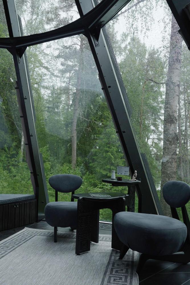 Дом своей архитектурой, филигранно вписанной в северный пейзаж, парящий над северной природой Карельского перешейка, внутри себя таит неповторимые интерьеры. Там всё подлинно, всё располагает к безмятежному отдыху в атмосфере гармонии с природой. На террасе дома разместилась горячая купель, создающая незабываемое впечатление от моментов, которые останутся с Вами навсегда. Дом с 1 двуспальной кроватью (ширина 140 см), рассчитанный на комфортное размещение 2 гостей. Дом оснащен электрическими приборами: чайник, капсульная кофемашина, фен, телевизор, холодильник. В доме расположилась спальня с панорамными видами на реку Вуоксу, обеденная зона, ванная комната с душем.