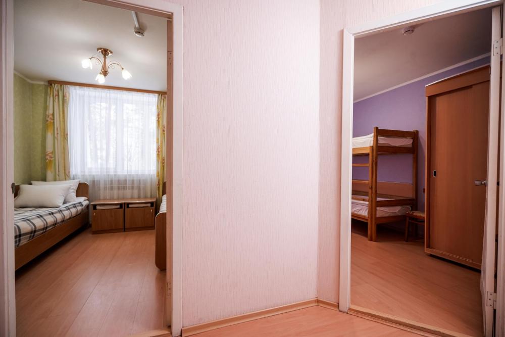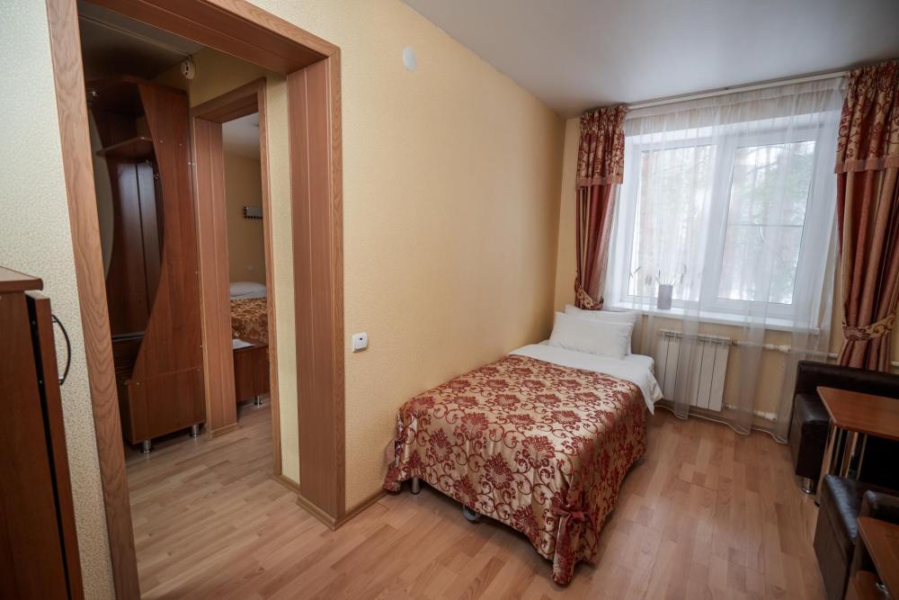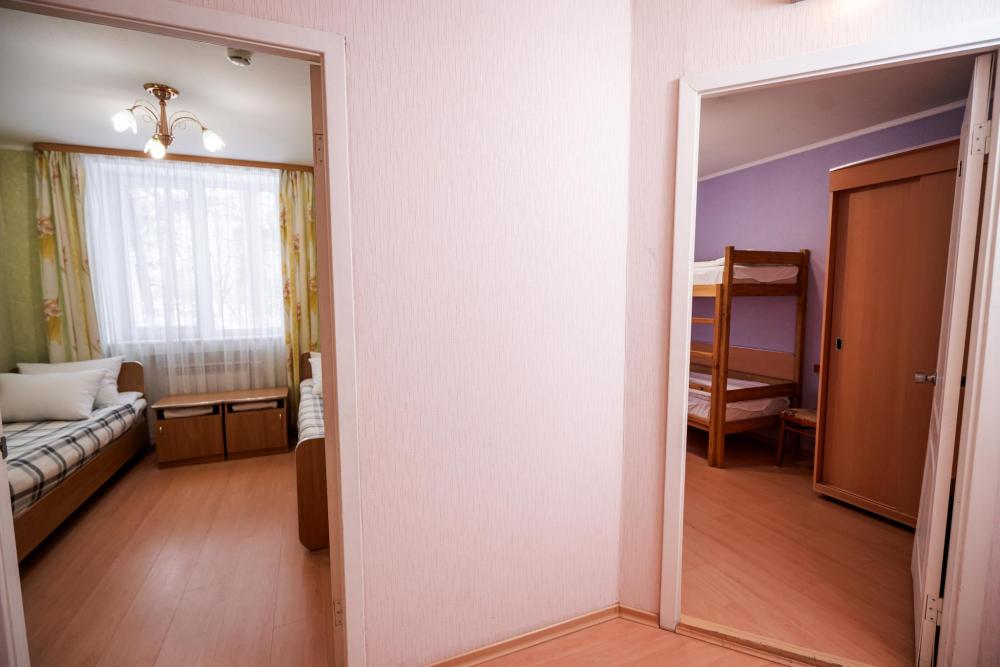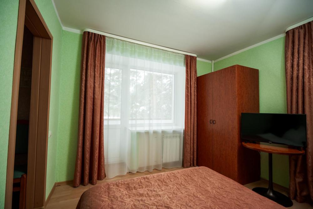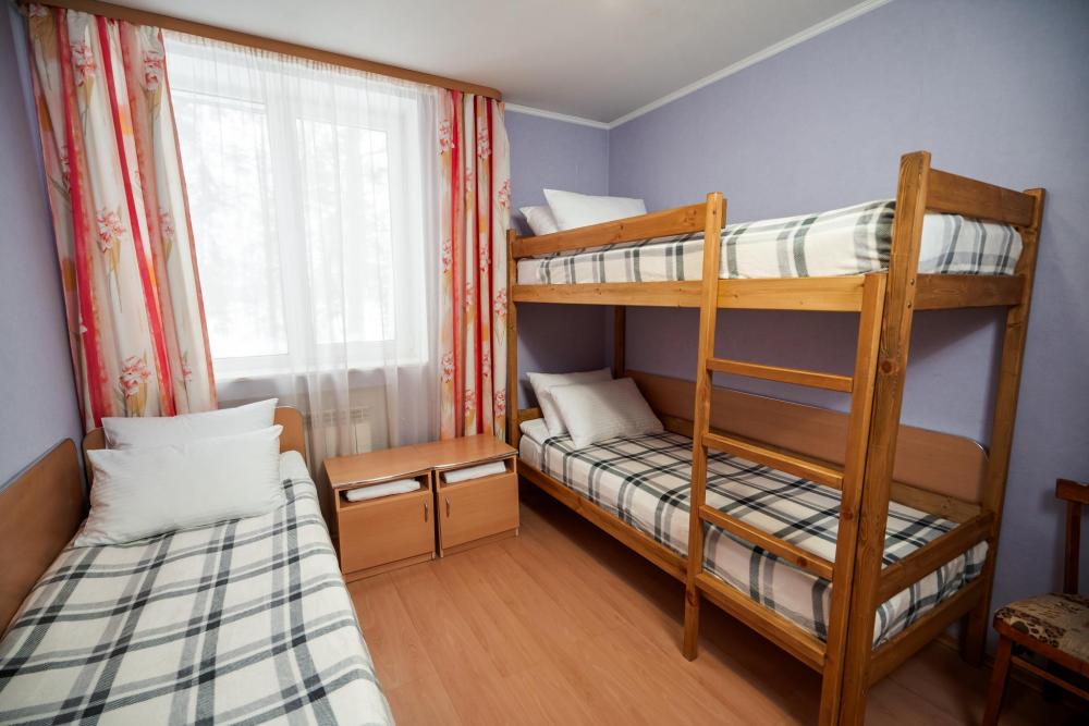 Данная категория номеров отлично подойдет для семейного отдыха, отдыха в большой компании друзей или коллег по работе. Корпус гостиницы состоит из 10 блоков, в каждом из которых по 2 комнаты, санузел и душ общие на блок (на 2 комнаты). Данная комната оборудована одной односпальной и одной двухъярусной кроватями, прикроватными тумбочками, шкафом, туалетным столиком, столом и стульям, холодильником и чайником. Из окон открываются прекрасные виды на сосновый лес, р. Волга, и на зеленую зону вокруг отеля. Здание гостиничного комплекса находится в шаговой доступности от пляжа. Номера оснащены кабельным телевидением и WI-FI.