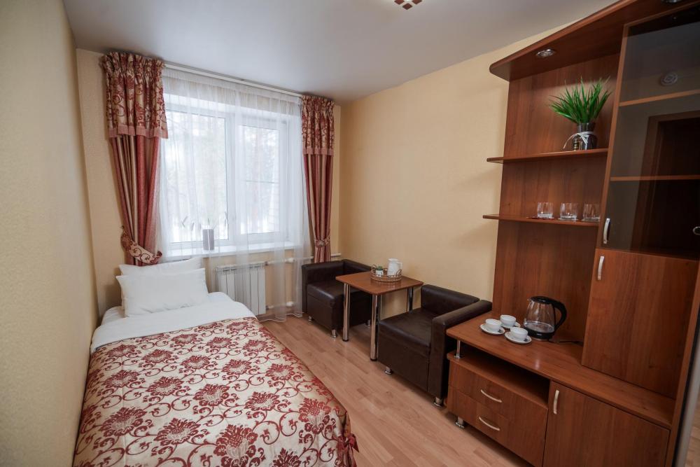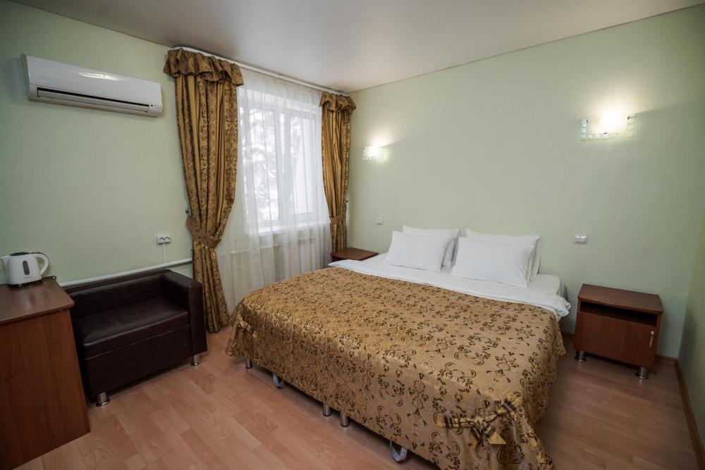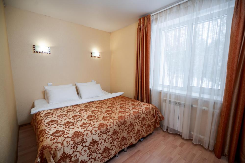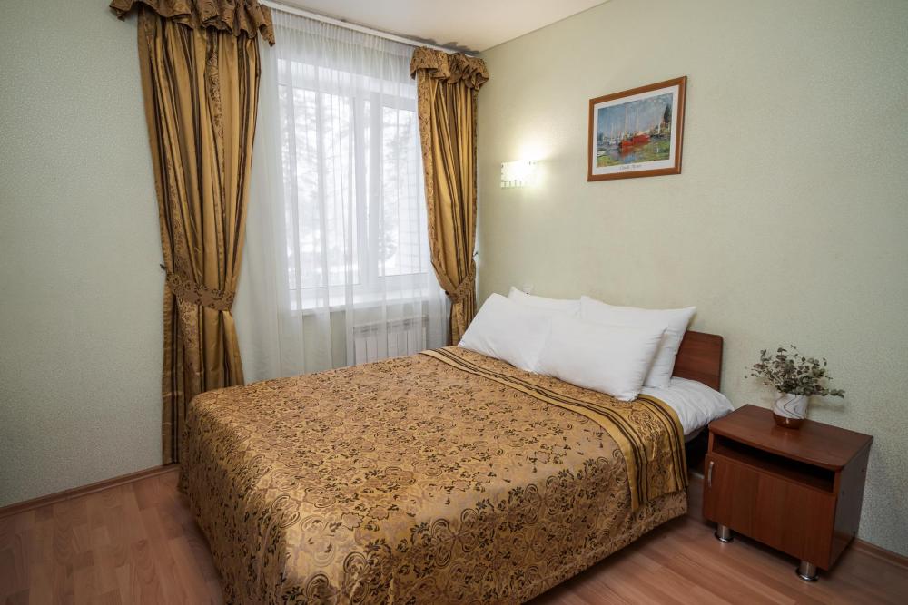 Номера данной категории отлично подходят для семейного отдыха, тем кто находится в командировке или просто решил сменить обстановку на выходные дни. В номере установлена одна двуспальная кровать, шкаф, прикроватные тумбочки, стол, стулья, холодильник. Из окон открывается отличный вид во двор или на сосновый лес. Санузел совмещен с душевой кабиной. В номере есть кабельное телевидение и WI-FI.