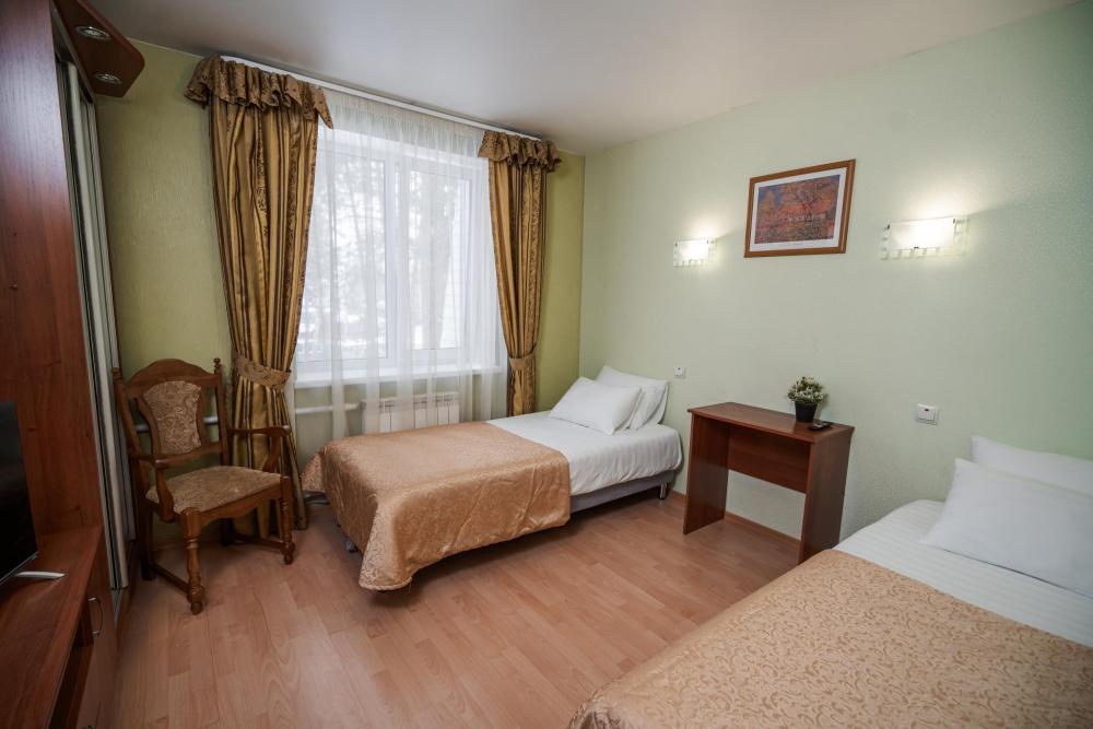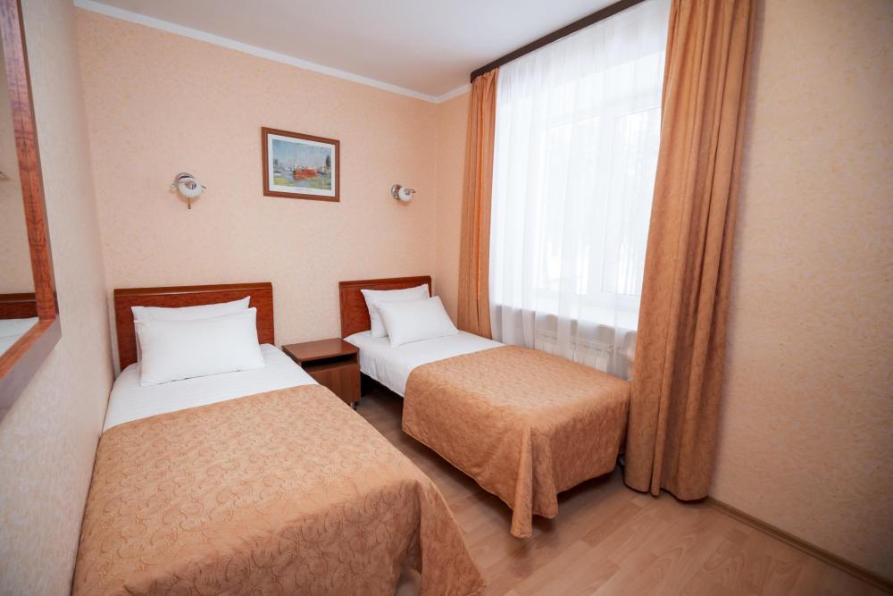 Номера данной категории подходят для семейного отдыха, отдыха в небольшой компании друзей, а так же для тех, кто любит отдохнуть с комфортом или находится в командировке. В номере установлены две односпальные кровати с ортопедическими матрасами, шкаф, прикроватные тумбочки, туалетный стол с зеркалом, стулья, холодильник. Из окон открывается прекрасный вид на сосновый лес. Санузел совмещен с душевой кабиной. Здание гостиничного комплекса находится в шаговой доступности от пляжа. Номера оснащены кабельным телевидением и W-FI.
