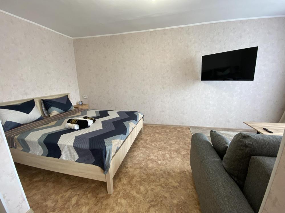 Апартаменты на улице Комарова 21. В шаговой доступности остановки общественного транспорта, магазины и аптеки. Квартира оборудована всем необходимым для комфортного проживания: двуспальная кровать, телевизор, холодильник, собственная ванная комната и туалет.