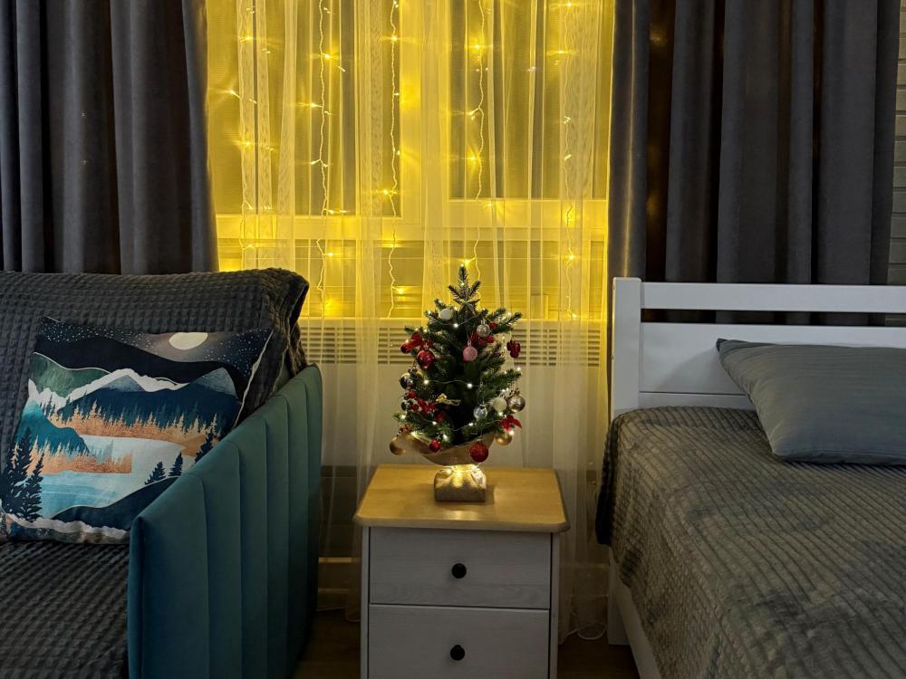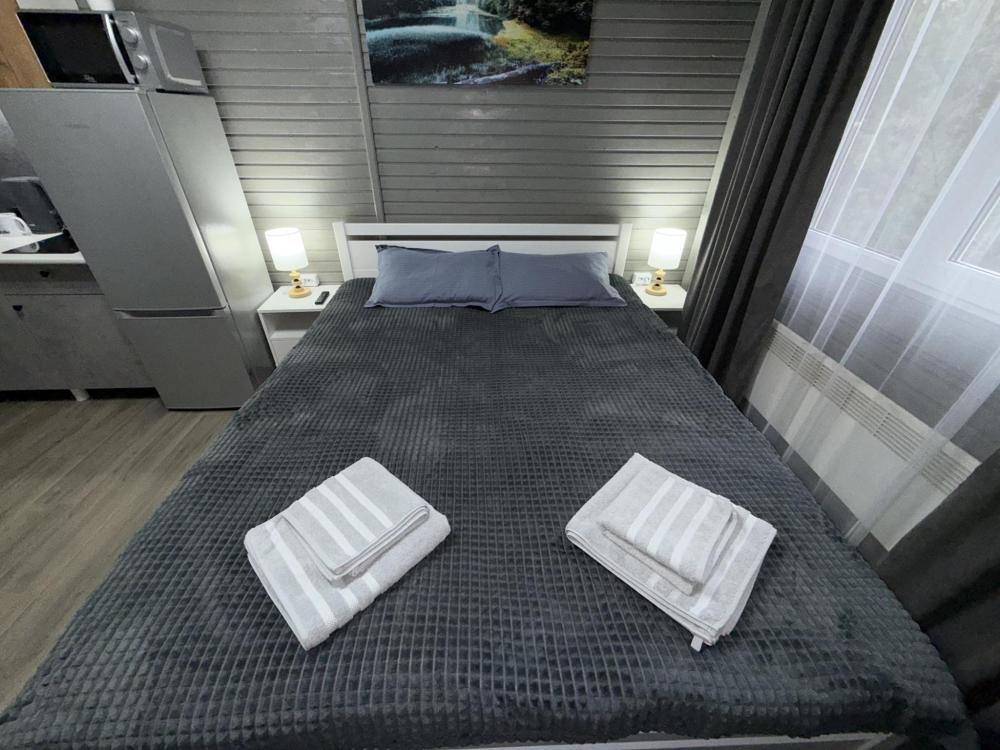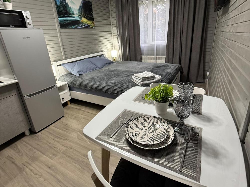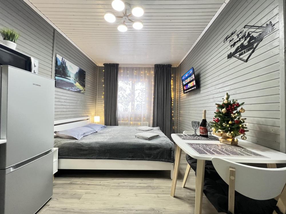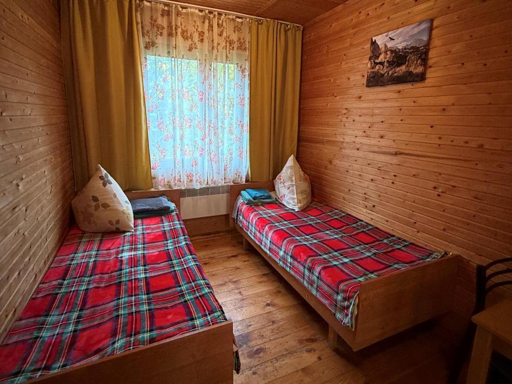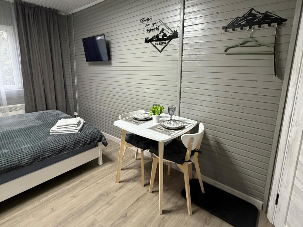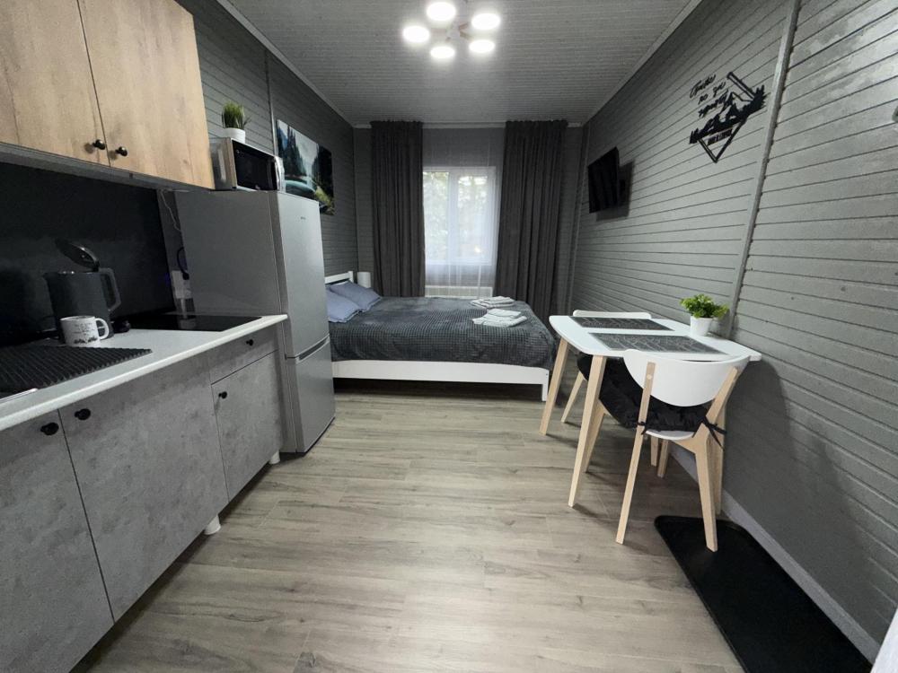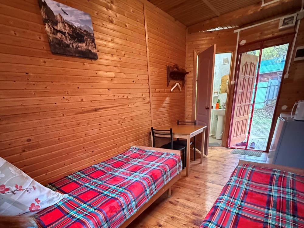 Номер 1 - двухместный. Одна жилая комната с двумя односпальными кроватями, кухонным уголком с холодильником, электрическим чайником, электрической плитой, микроволновкой и необходимой посудой. Санузел совмещенный, есть фен, мыло, средство для мытья посуды.