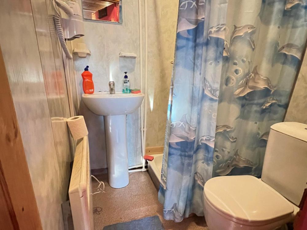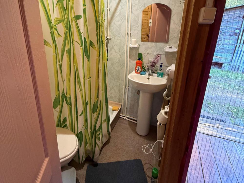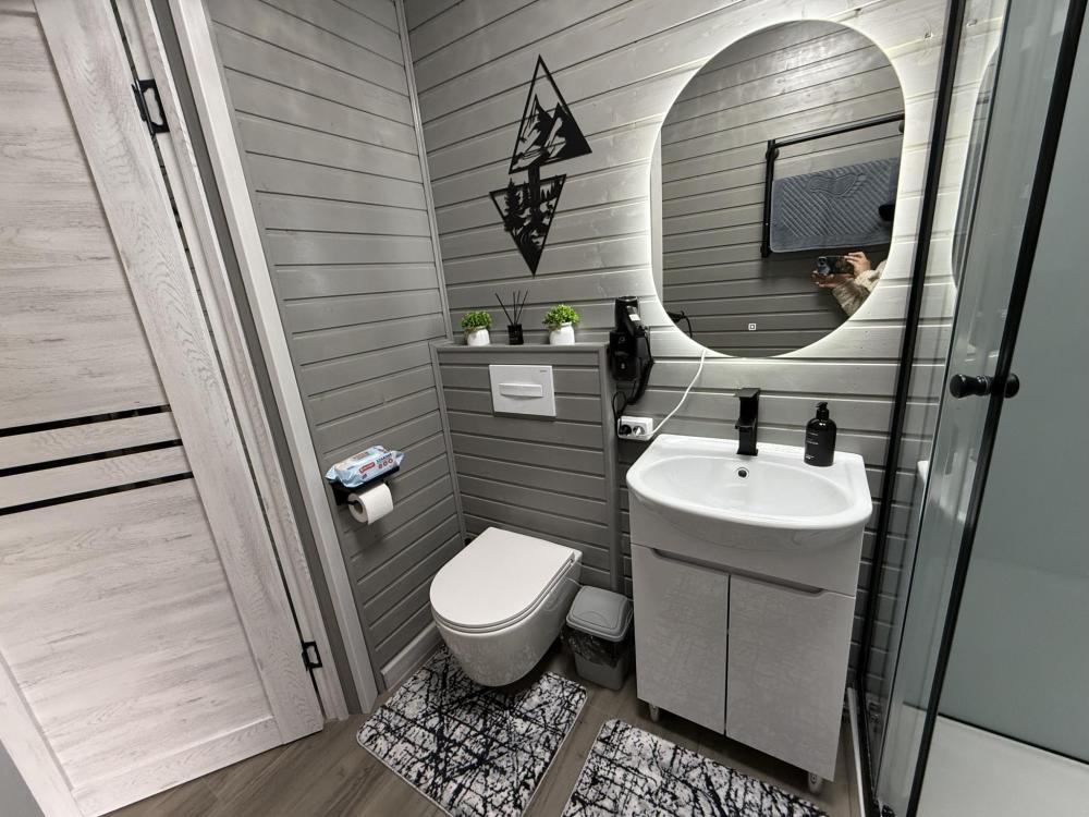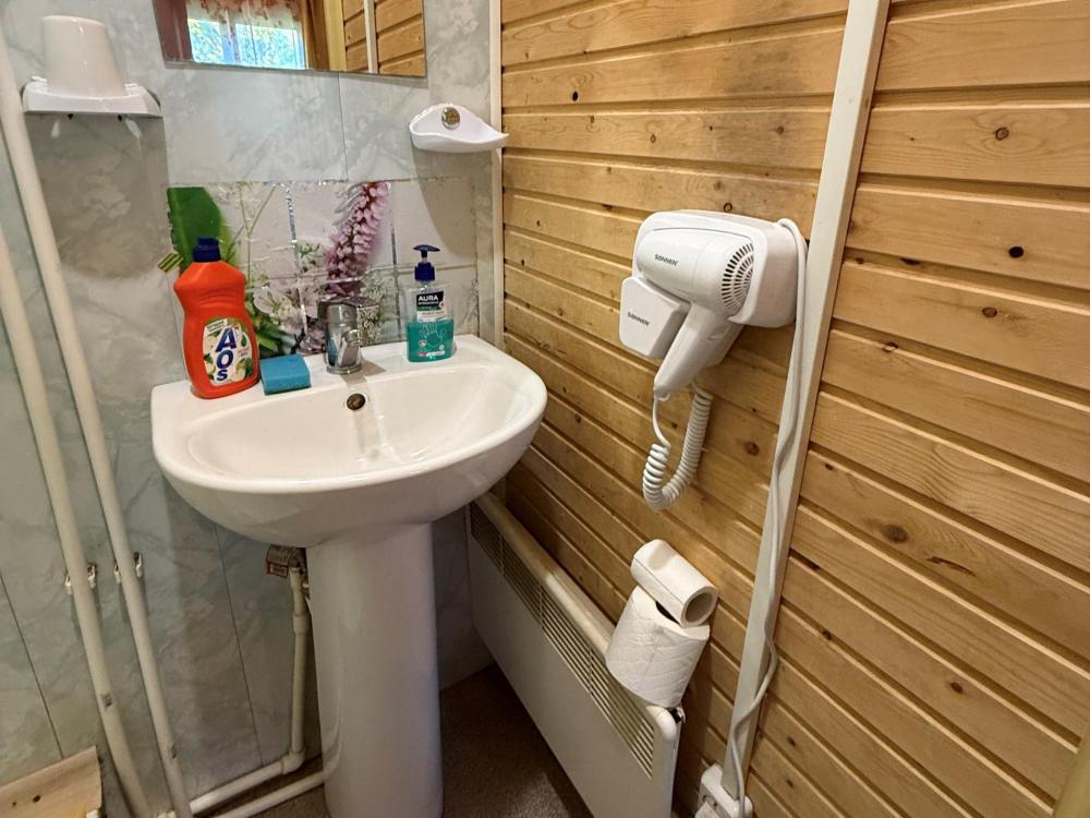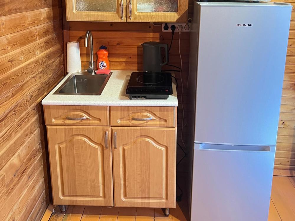 Полностью обновленный домик! Вся мебель, посуда, техника, бельё НОВЫЕ! Одна жилая комната с двуспальной кроватью, тумбочками, настольными лампами, телевизором, кухонной зоной с холодильником, электрическим чайником, двухконфорочной электрической плитой, микроволновкой и необходимой посудой, средством для мытья посуды. Санузел совмещенный, есть фен, зеркало с подсветкой, душевая кабина, электрическая сушилка для полотенец, мыло, коврики.