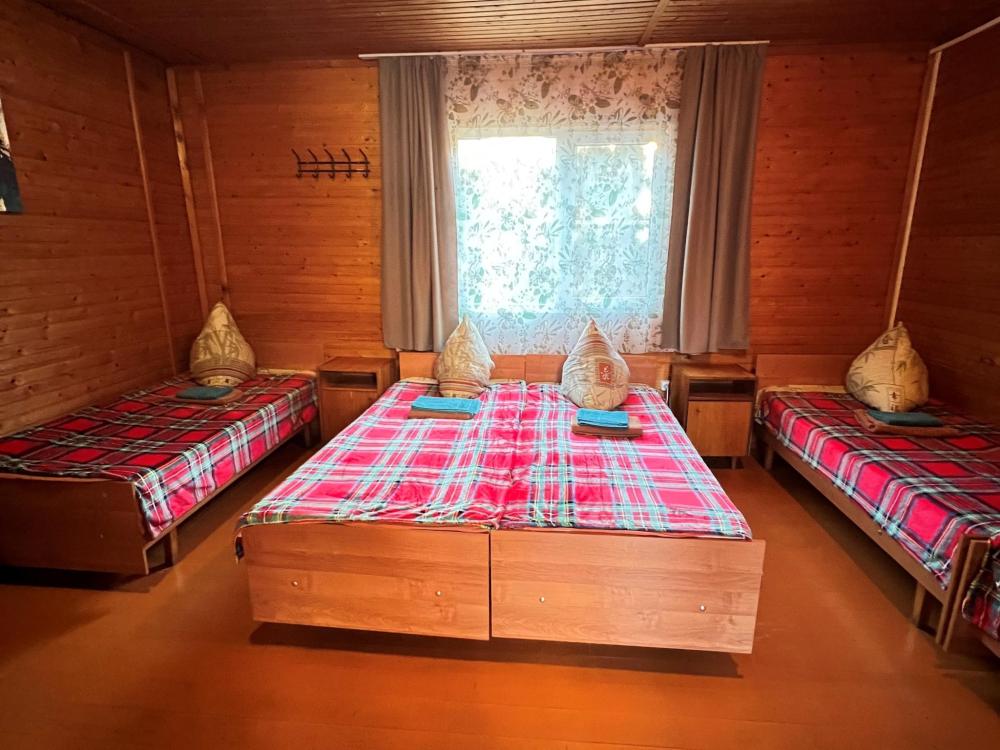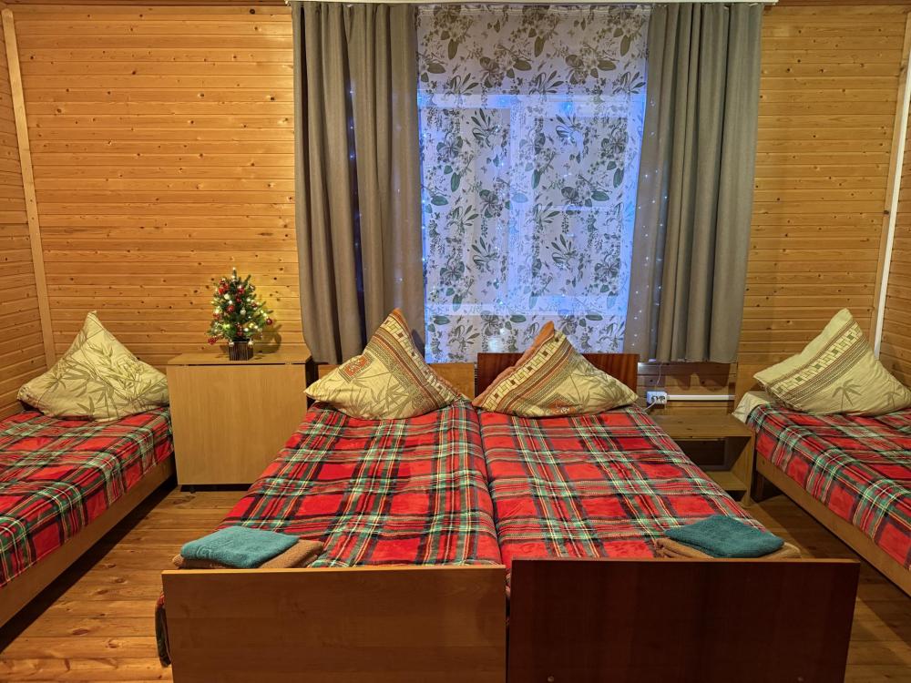 Отдельный домик Две комнаты, ОБНОВЛЕННЫЙ санузел! Две изолированных жилых комнаты, в одной две односпальные кровати, тумбочки, стол, сулья; во второй три односпальные кровати, стол/тумба, стулья, шкаф. На всех кроватях новые матрасы-топперы из пенополиуретана и наматрасники. В проходной комнате вешалка для одежды, кухонная зоной с мойкой, холодильником, электрическим чайником, электрической плитой, микроволновкой и необходимой посудой, средством для мытья посуды. Санузел совмещенный, есть фен, зеркало с подсветкой, новая душевая кабина, гель для душа, мыло, коврики.