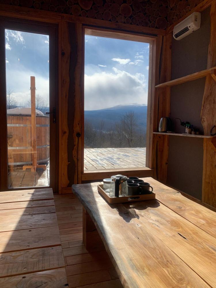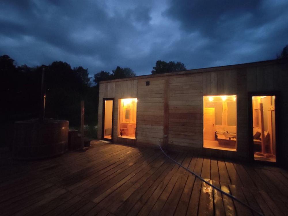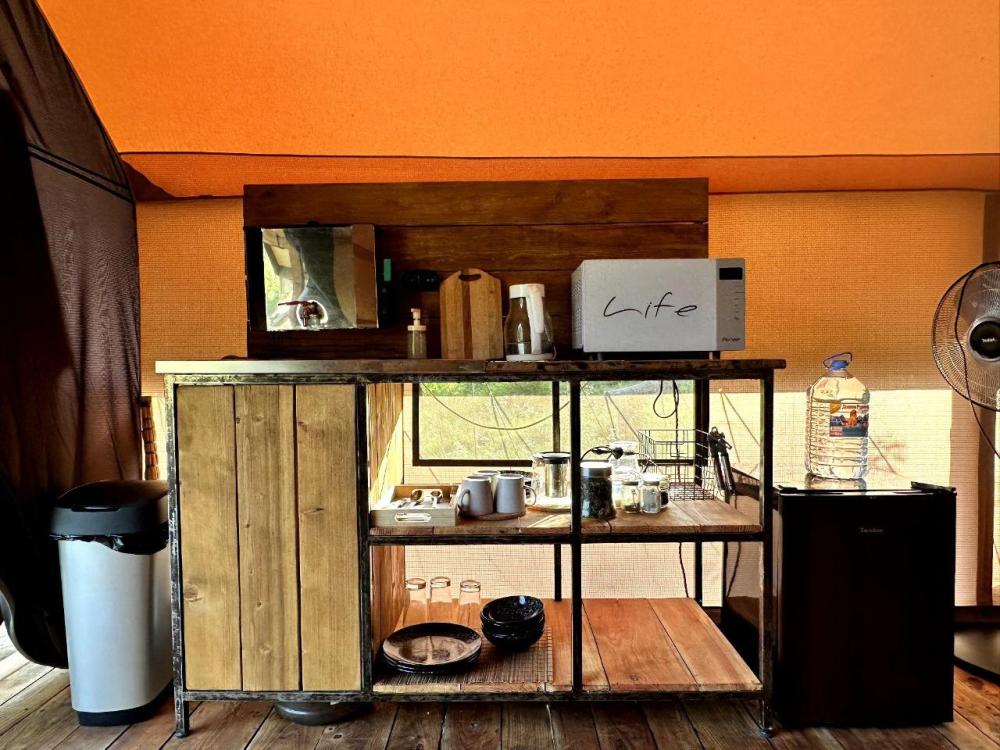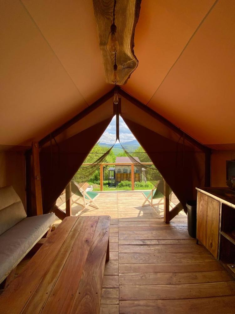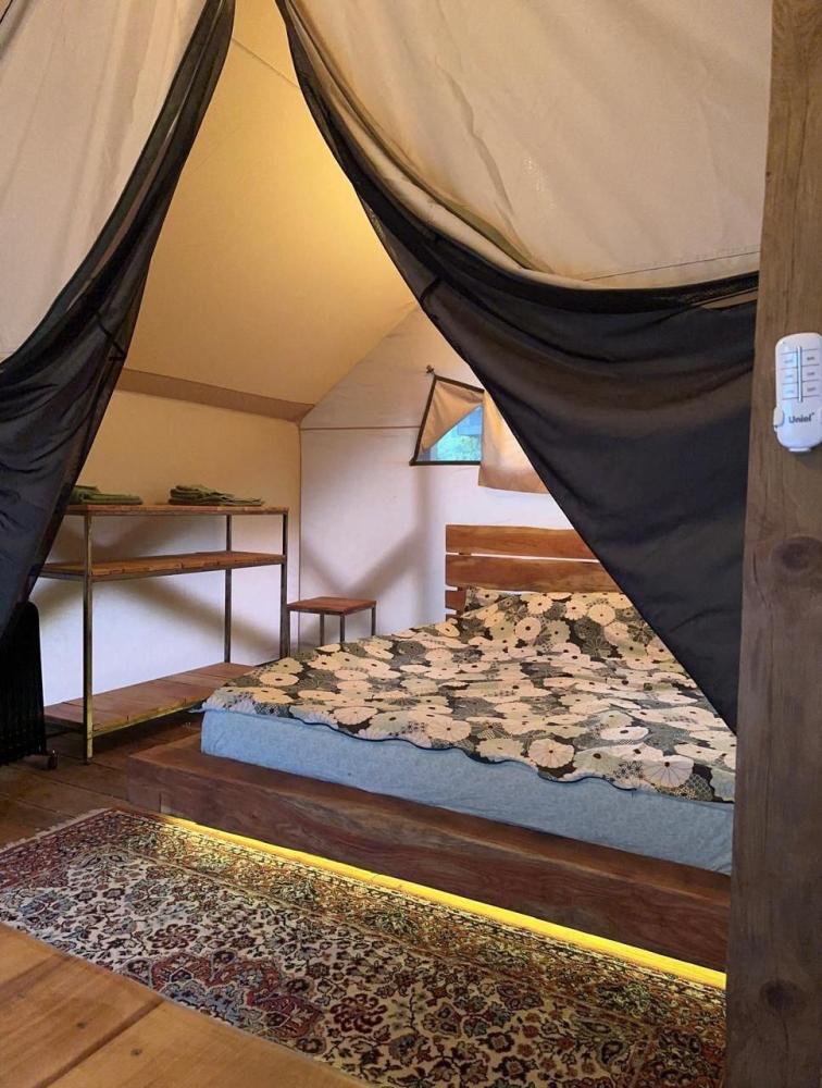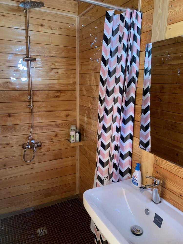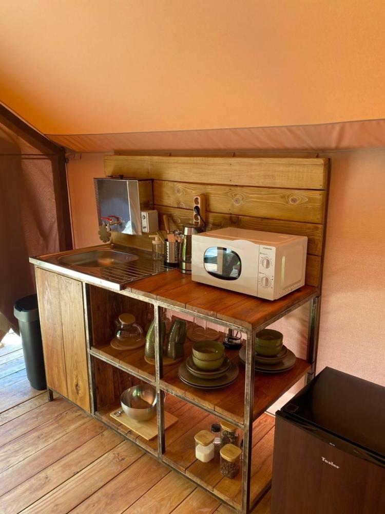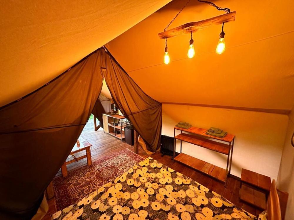 Сафари-тент «Воздух» - это 3-х местная палатка с террасой, закрытой зоной кухни. 2 основных спальных места расположены на кровати, а 3-е - на диванчике . Внутри палатки находятся 2 уютных пространства: спальное, с большой кроватью с подогревом и мягким постельным бельем, а также удобная кухонная зона со всем необходимым. Окна палатки обеспечивают естественное освещение и панорамный вид на окружающую природу. В палатке установлены нежные светильники, создающие уютную атмосферу вечером, а также техника контроля температуры. Через 15 метров от палатки находится сооружение с личным санузлом, который закрывается на замок. Зона спальни: jбогреватель, кровать кинг-сайз (180х200 см), стеллаж, постельное белье по количеству гостей, прикроватная тумба-табурет, розетки, теплая простынь, теплое центральное освещение, кондиционер. Зона кухни: диван, розетки, обеденный стол, табурет, вешалка для одежды, мусорный контейнер, холодильник, вентилятор, ковер, отопление, доступ к горячей воде, шезлонги, кухонный гарнитур, москитные сетки, раковина, посуда и столовые приборы, а также сахар, соль, перец, кофе и фирменный мезмайский чай. Индивидуальная ванная комната: душ, туалет, раковина, зеркало, полка для принадлежностей, полотенцесушитель, теплый пол, коврики, ершик, мусорная урна, розетки, вытяжка, а также гостевые шампуни, гели для душа, жидкое мыло и туалетная бумага.