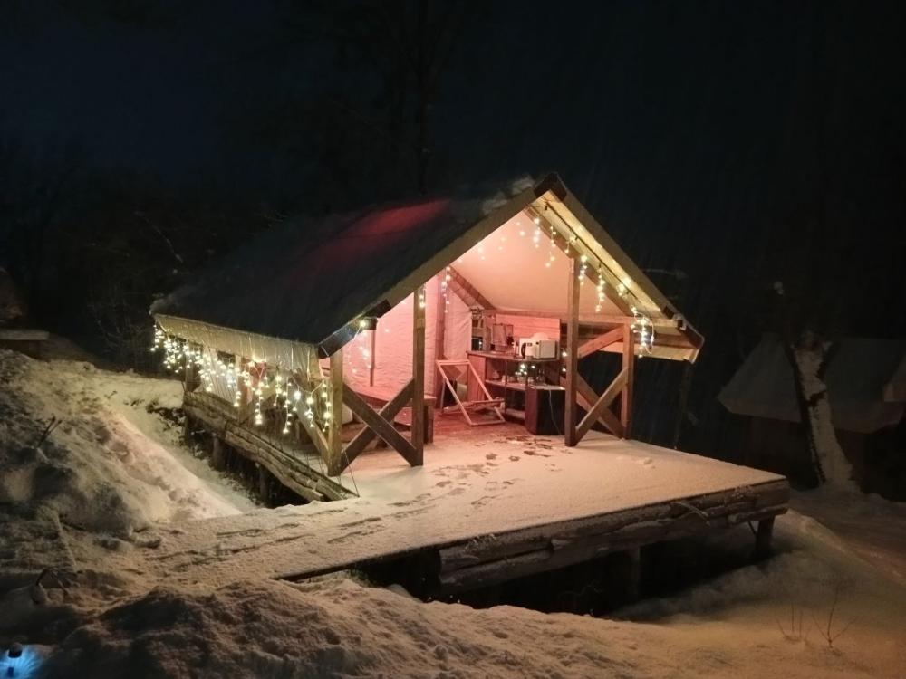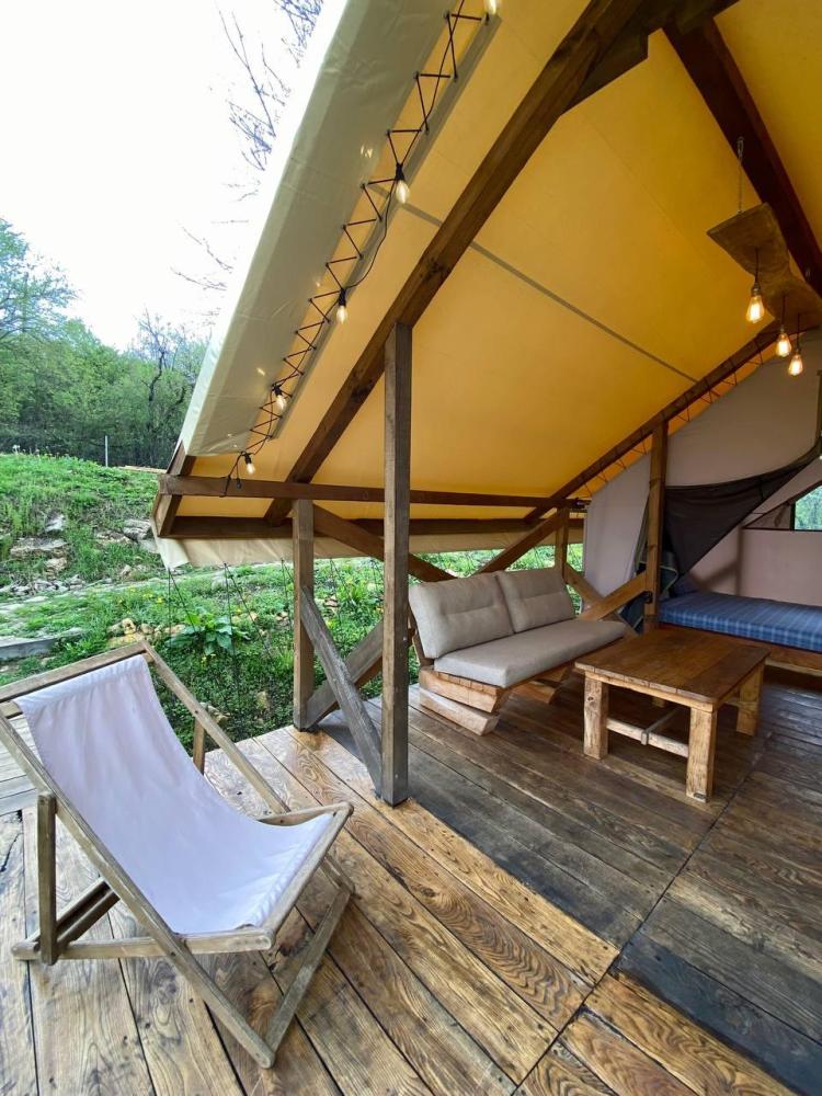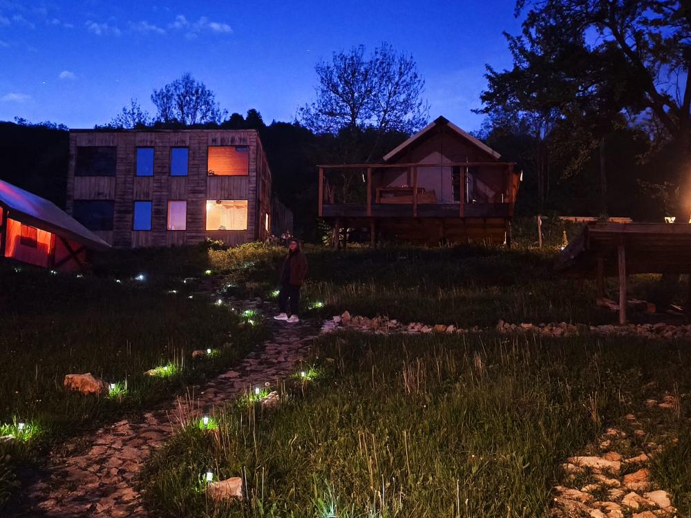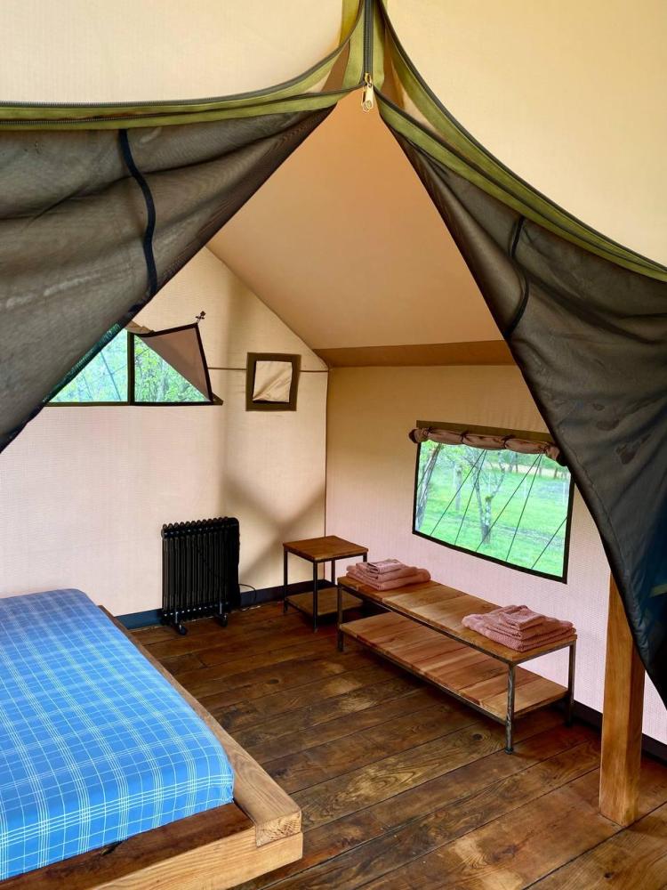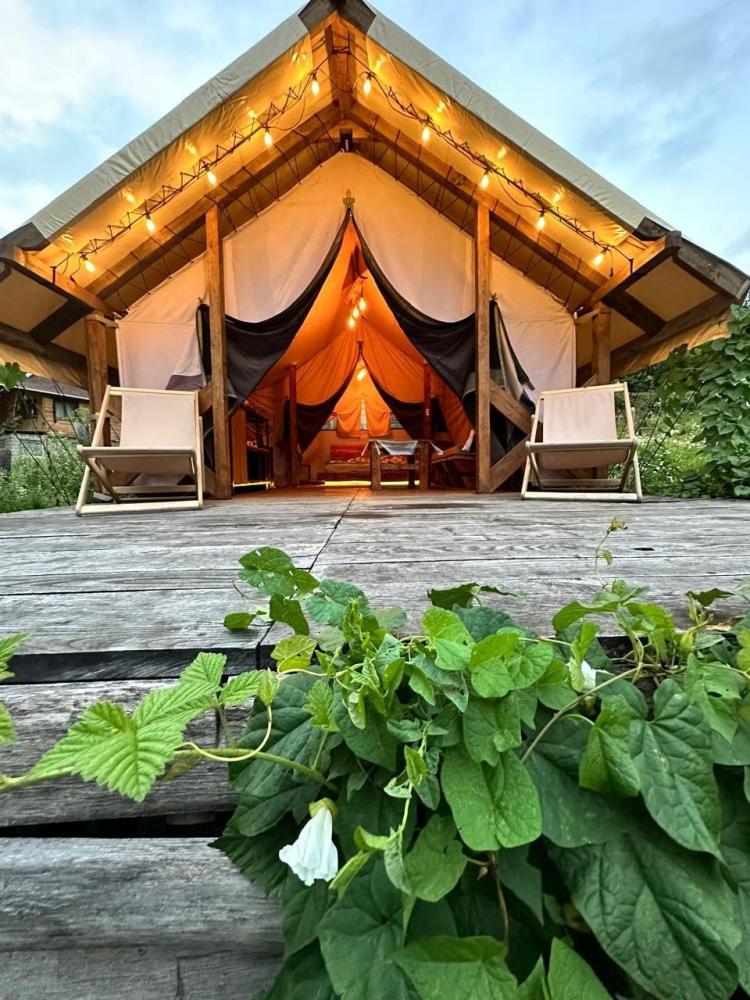 Сафари-тент «Земля» - это 2-х местная палатка с террасой и открытой зоной кухни. 2 основных спальных места расположены на большой удобной кровати. Внутри палатки уютное пространство с большой кроватью с подогревом и мягким постельным бельем, а также удобное пространство кухни, со всем необходимым. Окна палатки обеспечивают естественное освещение и панорамный вид на окружающую природу. В палатке установлены нежные светильники, создающие уютную атмосферу вечером, а также техника контроля температуры. Через 15 метров от палатки находится сансооружение с личным санузлом, который замыкается на замок. Зона спальни: jбогреватель, кровать кинг-сайз (180х190), стеллаж, постельное белье и полотенца по количеству гостей, прикроватная тумба-табурет, розетки, теплая простынь, теплое центральное освещение, кондиционер, вешалка для одежды, москитные сетки. Зона кухни: диван, розетки, кухонный гарнитур, обеденный стол, табурет, мусорный контейнер, холодильник, раковина, посуда и столовые приборы, доступ к горячей воде, шезлонги, стол, табуреты, раковина, посуда и столовые приборы, а также сахар, соль, перец, кофе и фирменный мезмайский чай. Индивидуальная ванная комната: душ, туалет, раковина, зеркало, полка для принадлежностей, полотенцесушитель, теплый пол, коврики, ершик, мусорная урна, розетки, вытяжка, а также гостевые шампуни, гели для душа, жидкое мыло и туалетная бумага.
