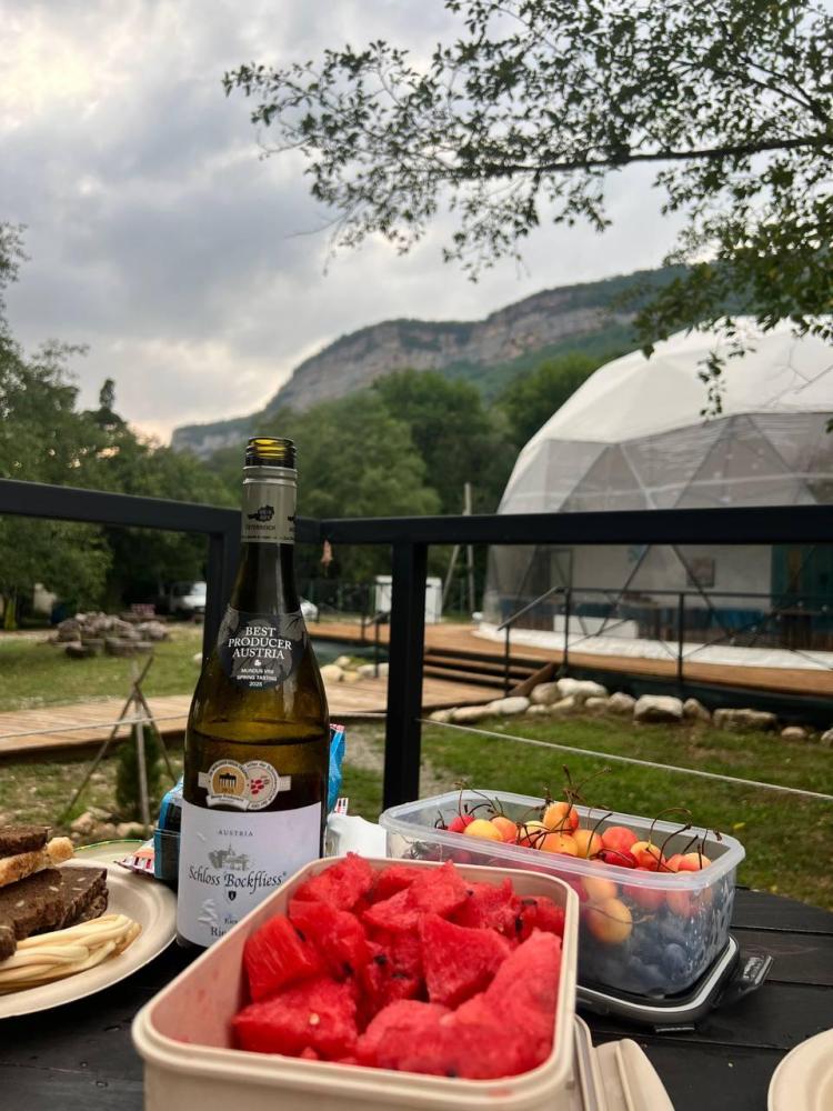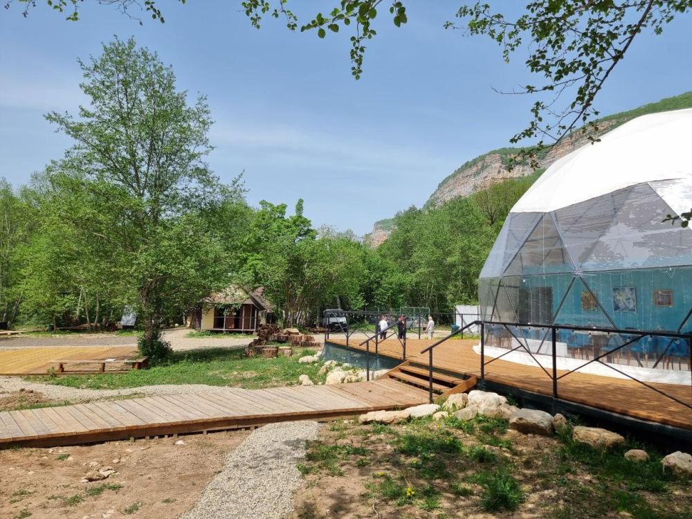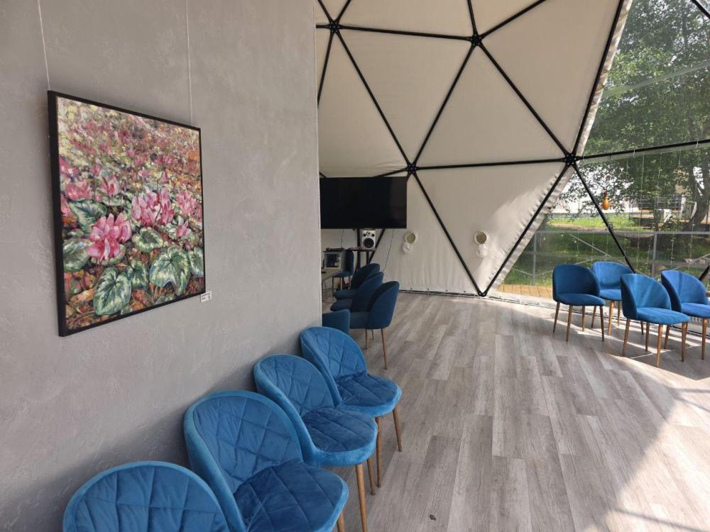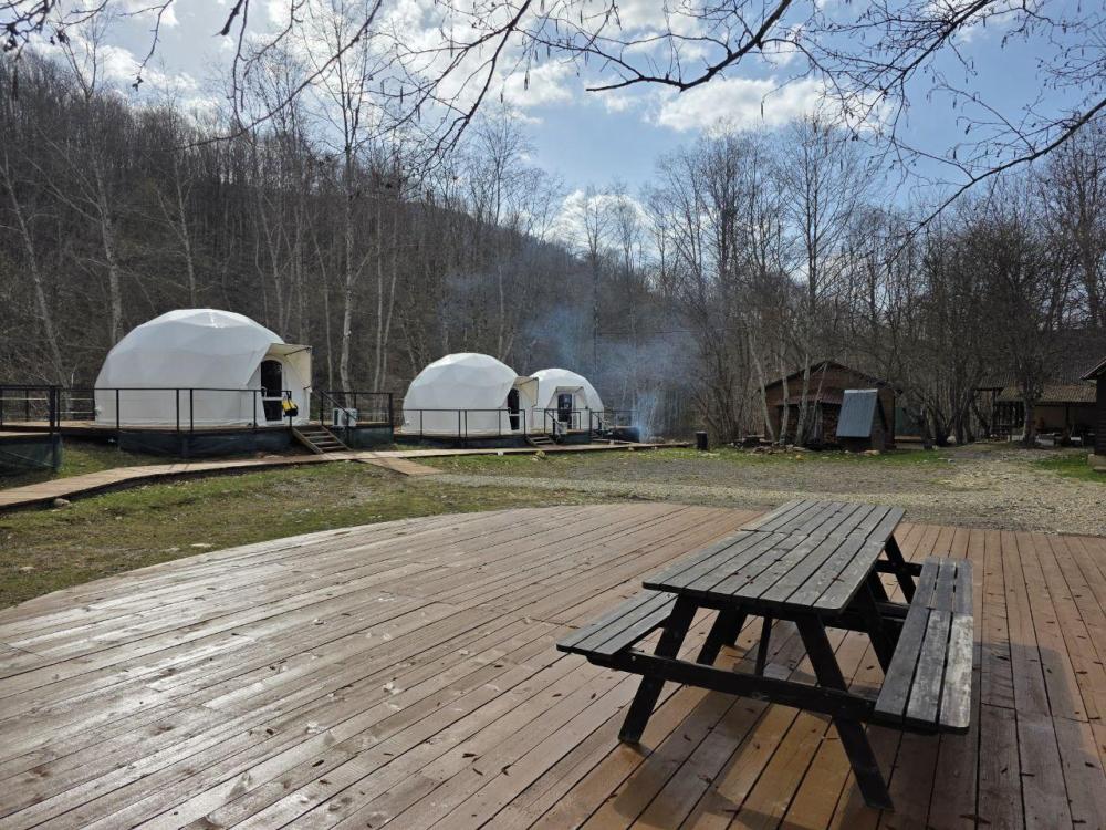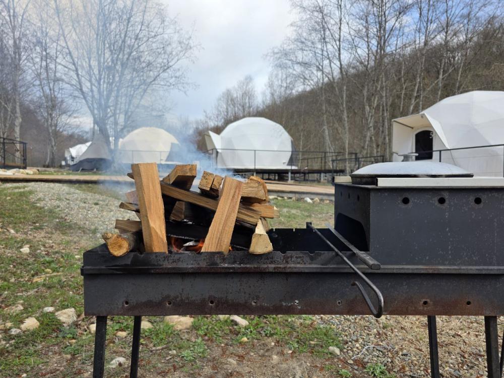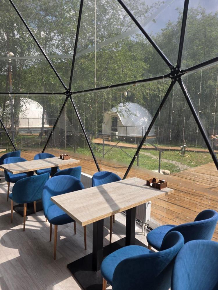 Вместимость: до 3 человек. Двуспальная кровать + дополнительное место на втором уровне. Для комфортного проживания каждая сфера оборудована сплит-системой с режимами «обогрев/охлаждение», розетками, отдельным санузлом с душем и необходимыми душевыми принадлежностями премиального качества. Телевизор, холодильник, чайник, посуда.