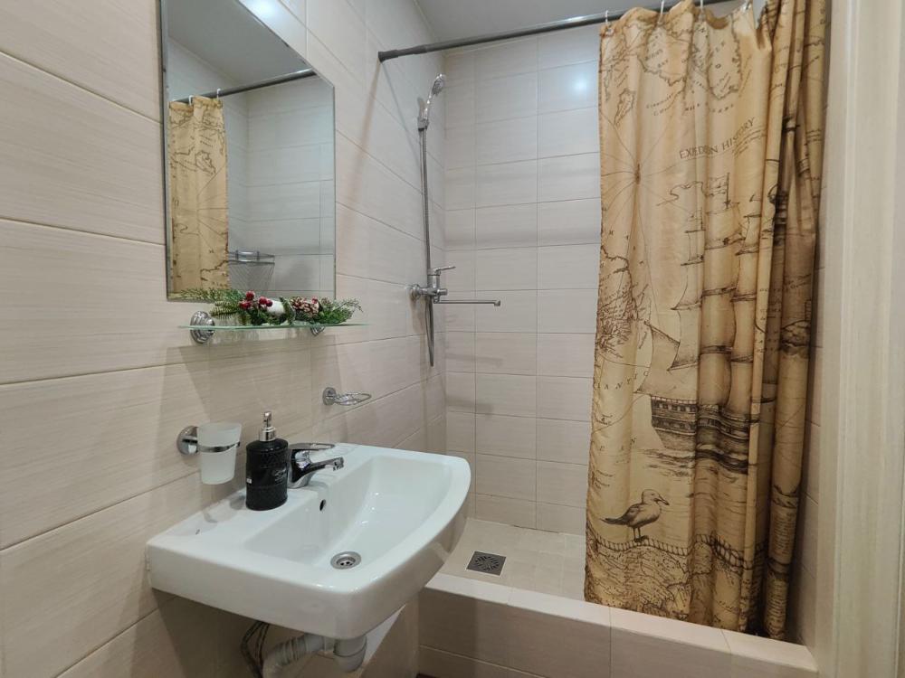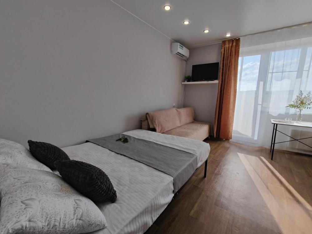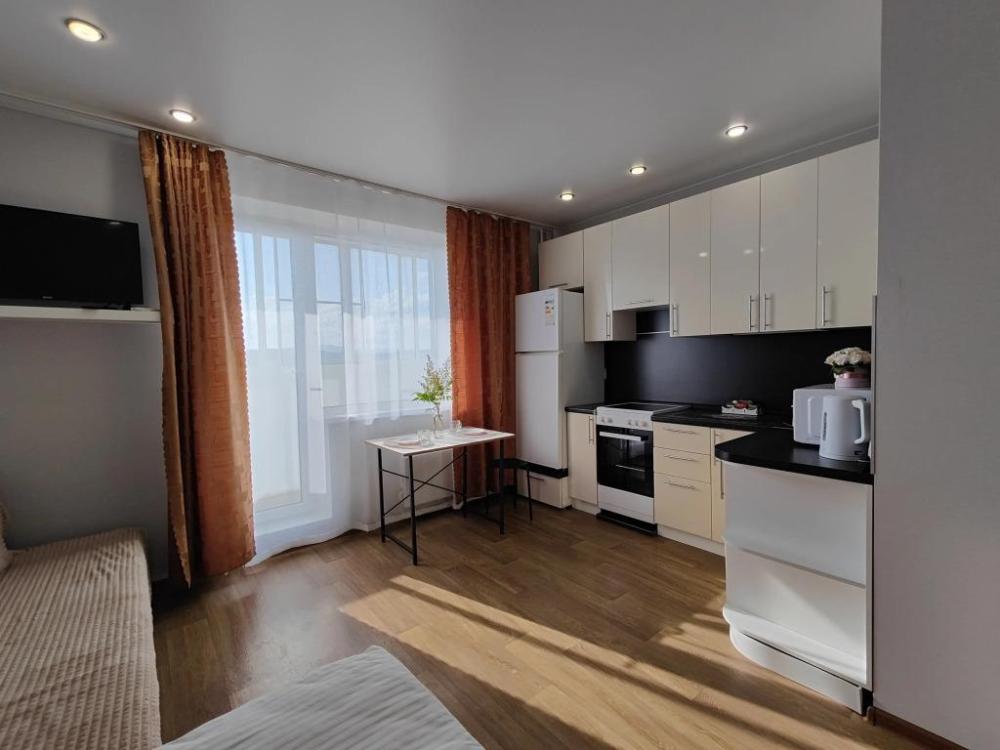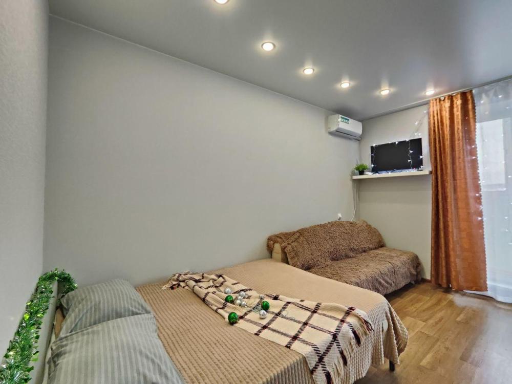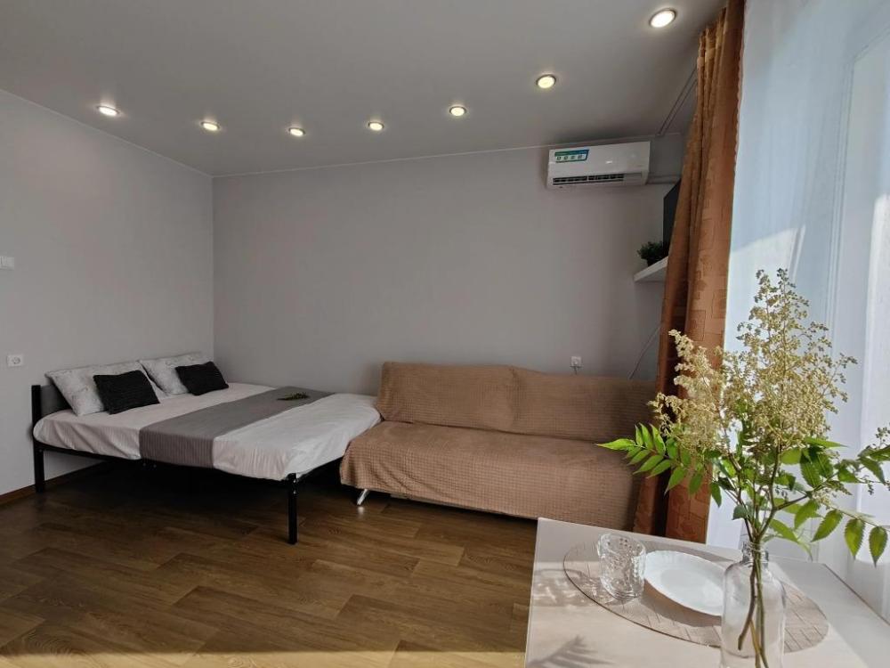Cветлая, чистая и уютная однокомнатная квартира (студия) на 2 этаже. В квартире, есть кондиционер, необходимое для проживания: 2-х спальная кровать, кресло кровать, микроволновка, эл. чайник, плита, холодильник, душевая кабина).телевизор , интернет. Всегда чистое постельное белье, полотенца и средства гигиены.