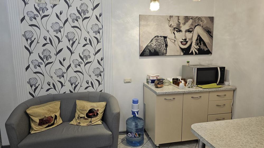 1-местный номер эконом. В номере имеется односпальная кровать, раковина, телевизор, обогреватель, либо вентилятор по запросу. Есть общая кухня. В кухне все необходимое: посуда, чайник, микроволновая печь, плитка, чай, кофе, вода. В ванной шампунь и гель для душа.