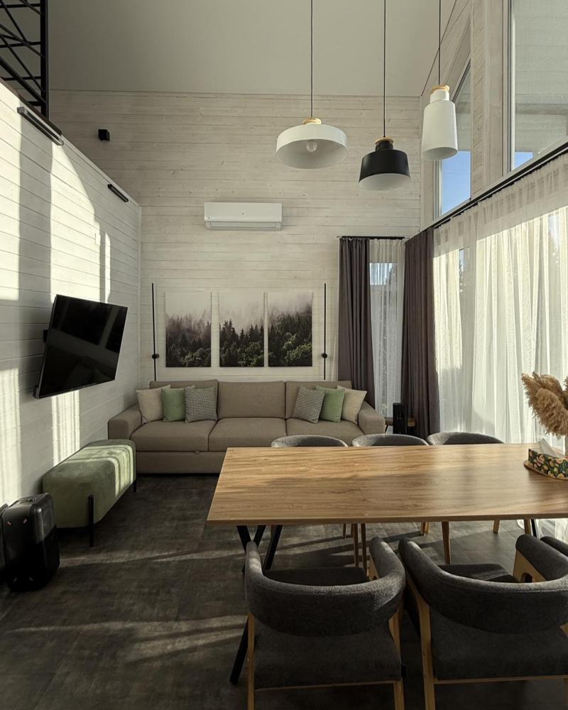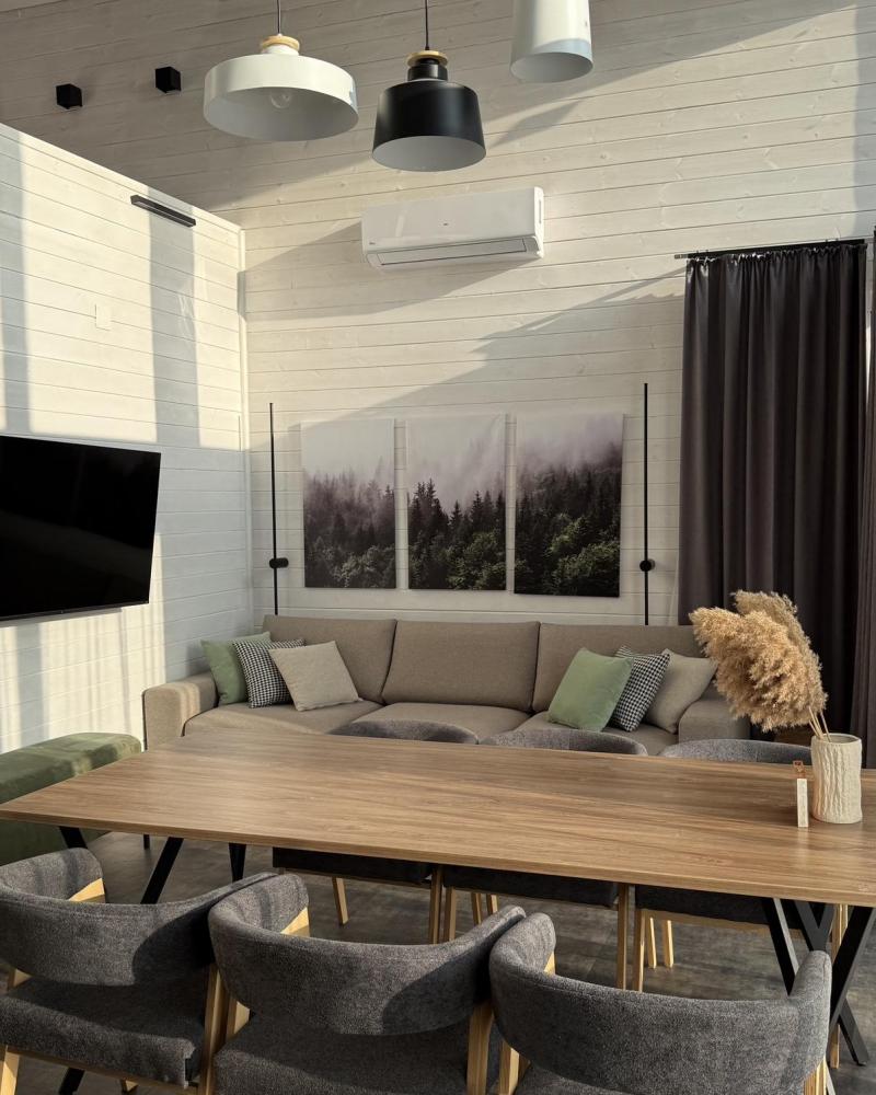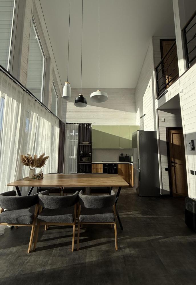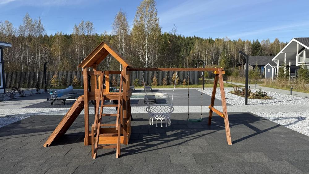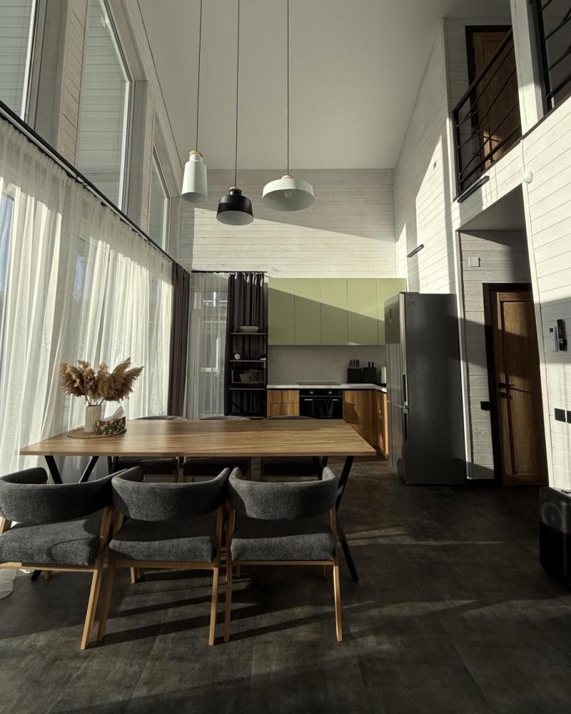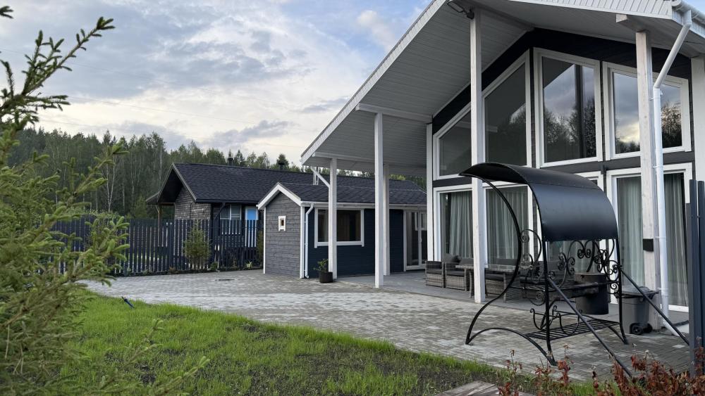 Дом с баней и бассейном у Солнечной Долины — «Горы по колено» В доме : 3 спальни, 2 санузла и кухня-гостиная, кондиционер, стиральная и посудомоечная машина, кухня со всей посудой и техникой (микроволновая печь, духовка, плита, холодильник, чайник ), постельное бельё, полотенца, мыло, шампунь, гель для душа, средство для посуды и т.д.; утюг, гладильная доска, сушилка, увлажнитель воздуха, музыкальная колонка, ТВ, Wi-Fi, тёплый пол. Детская кроватка (манеж) предоставляется по запросу. Освещение территории ( общей и придомовой ). У дома: терраса с мангальной зоной, закрытая парковка, собственная баня на дровах ( за доп. плату ). На общей территории трех домов располагается круглогодичный бассейн (35-37°) с круглосуточной фильтрацией и дезинфекцией воды, батут и детская площадка Дом расположен всего в 2 км от ГЛК «Солнечная Долина» — отличное место для зимнего катания и летних прогулок по живописным склонам. До озера Тургояк — 25 км (одно из самых чистых озёр России, с прозрачной водой и великолепными видами). До Национального парка «Таганай» — 35 км, где можно насладиться природой и пройтись по знаменитым горным маршрутам. В 2 минутах езды находятся магазины МАВТ, К&Б, Пятёрочка, всё необходимое — рядом.