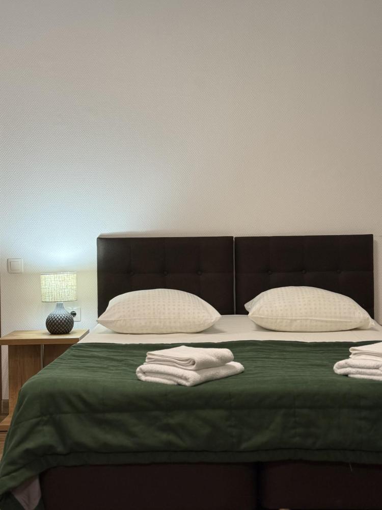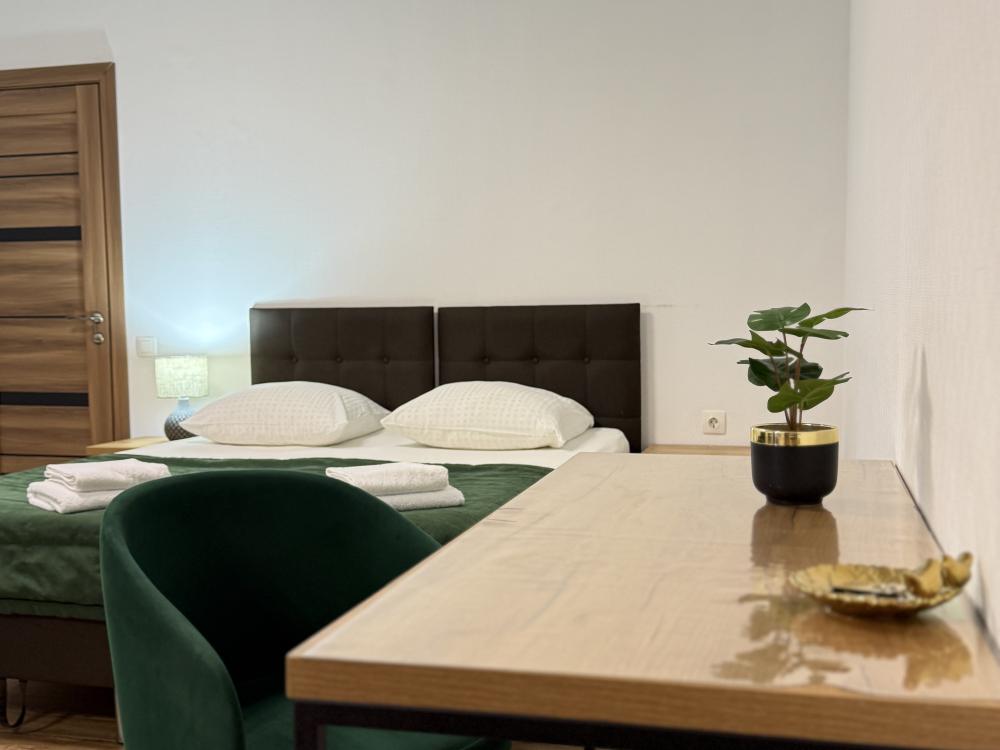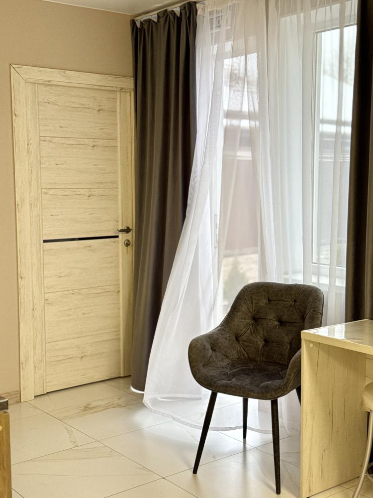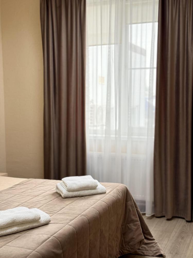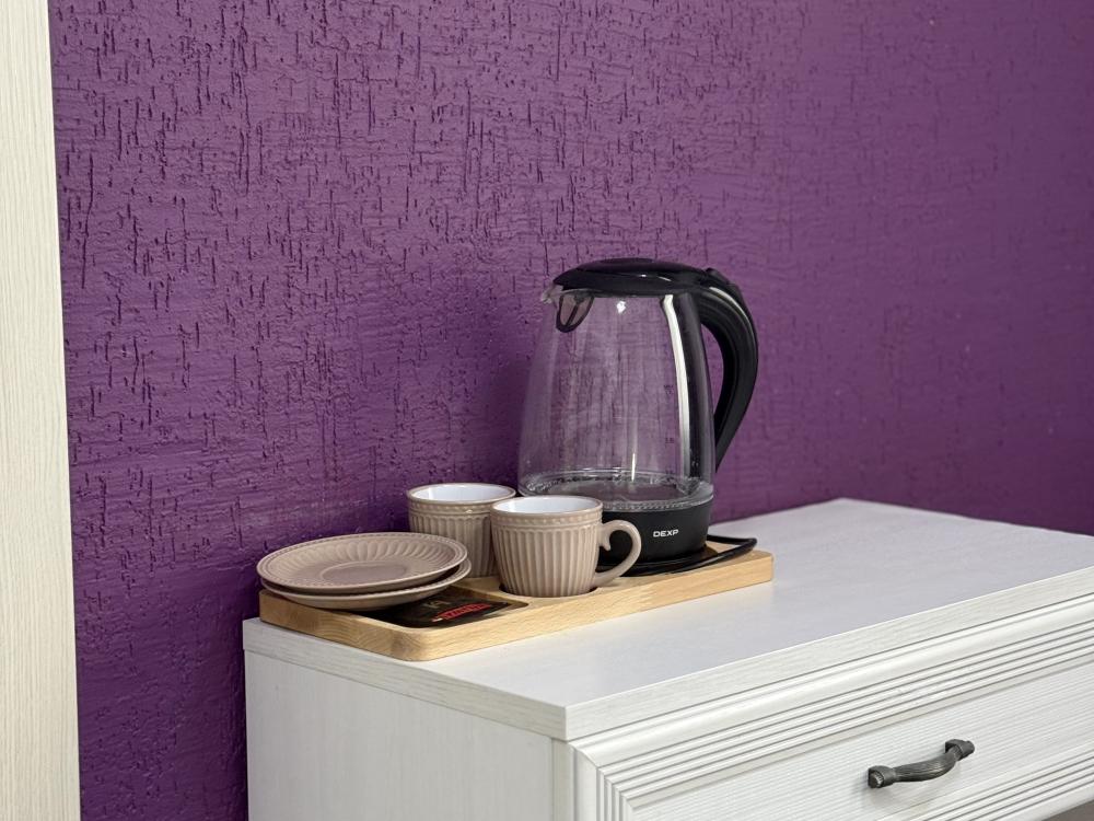 Уютный номер делюкс с 1 двуспальной кроватью. В номере предусмотрены: телевизор, WiFi, чайник, холодильник.