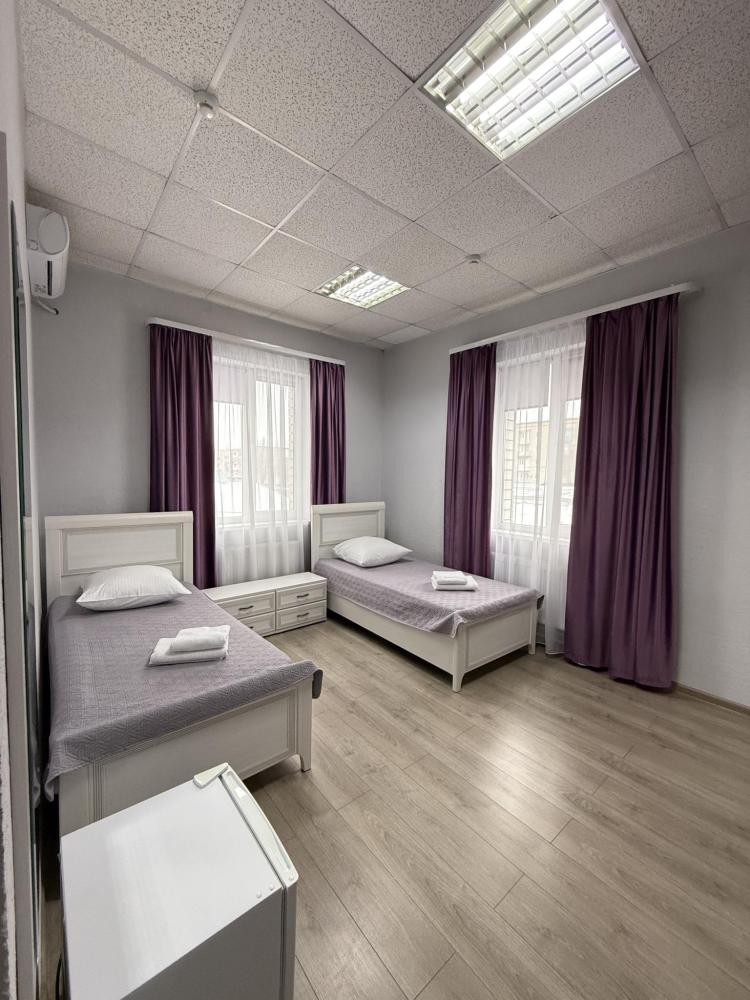 Уютный двухместный номер с 2 односпальными кроватями. Для удобства гостей в номере предусмотрены: телевизор, бесплатный Wi-Fi, большой шкаф для вещей, чайник.