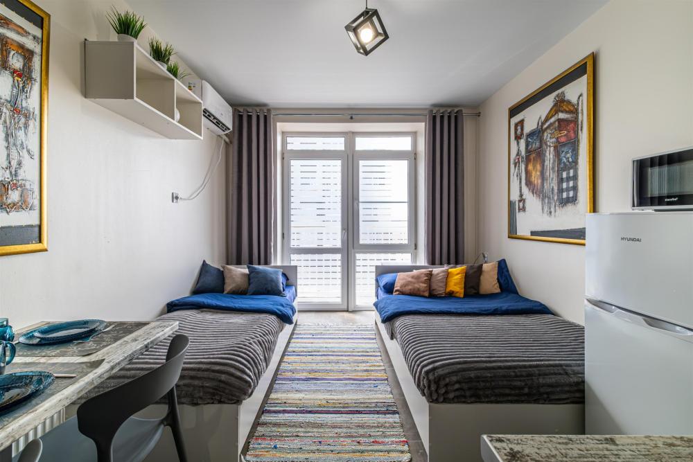 -1 односпальная кровать и 1 двуспальная кровать. Т.е. заселить с комфортом можем до 3 человек. Матрасы новые ортопедические, постельное бельё всегда чистое. Дети до 3-х лет у нас гостят бесплатно. Так же у нас можно и с животными (но очень аккуратно).