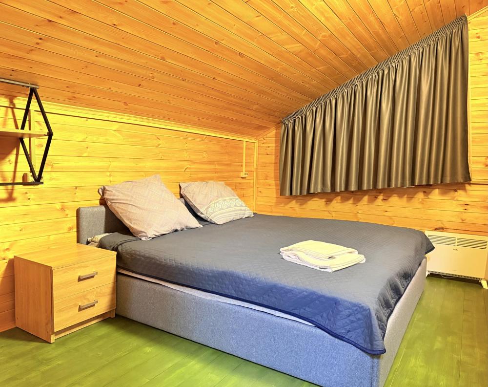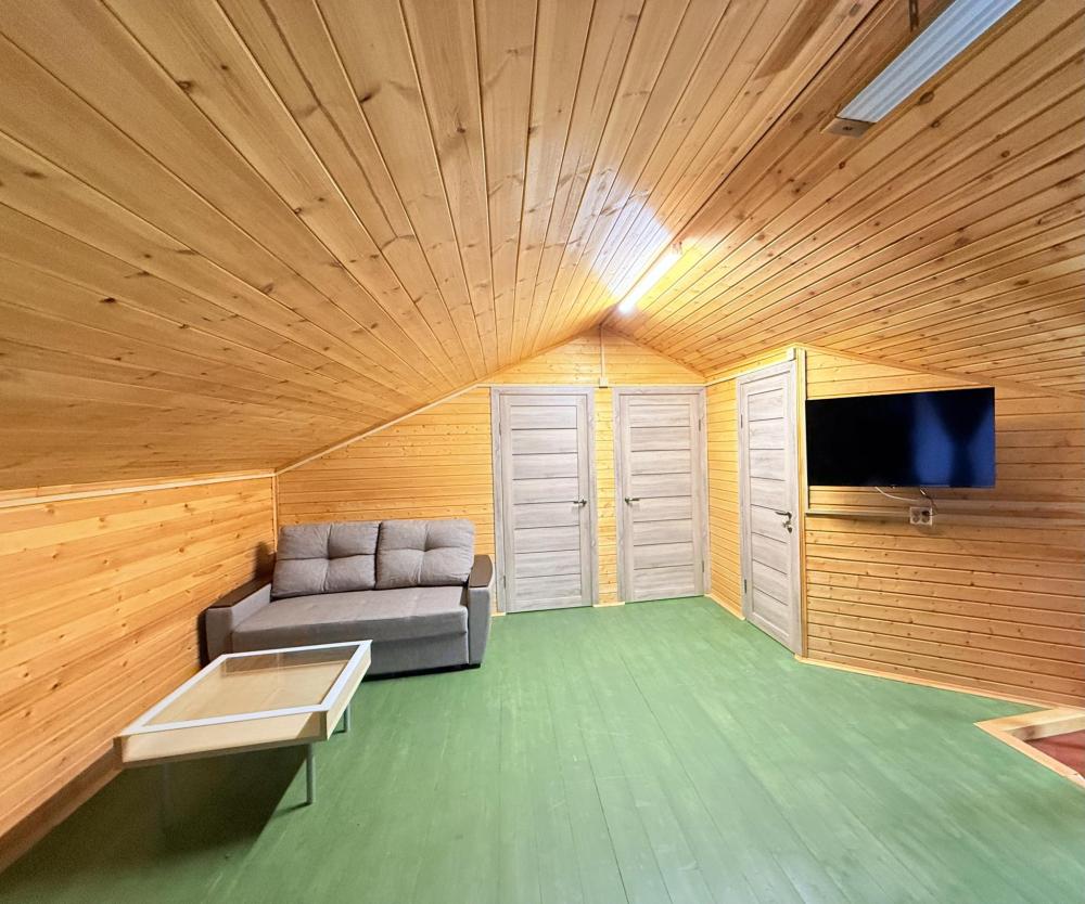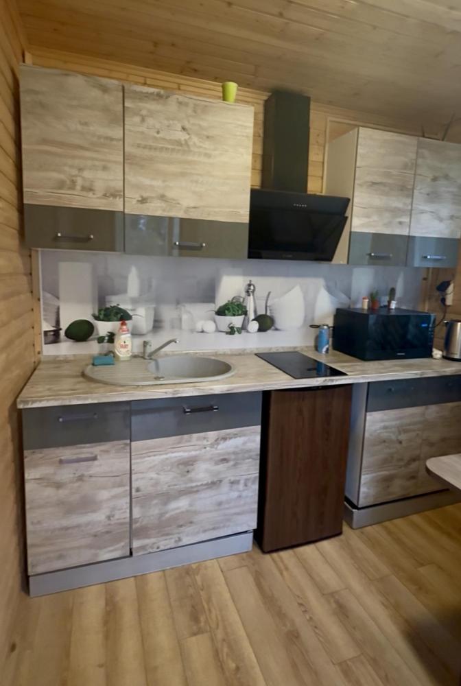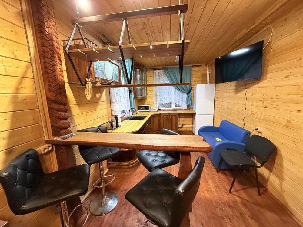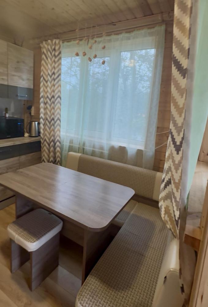 Уютный дом общей площадью 20 кв.м. для размещения до 3-х гостей. В доме есть всё необходимое для отдыха: двуспальный диван, кресло-кровать, ТВ и wi-fi, туалет и душ, кухня с холодильником, микроволновкой, электроплитой, чайником и кофемашиной. Рядом с домиком есть бесплатная парковка, мангальная зона и стол со скамейками.