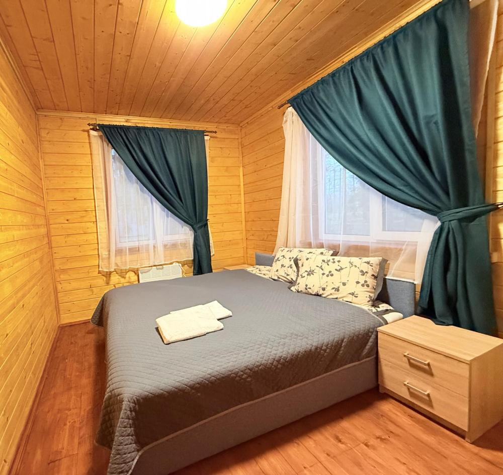 Дом «Лесной» предлагает уникальный отдых в живописном уголке природы. Двухэтажный дом станет отличным выбором для тех, кто хочет провести время в спокойной и умиротворённой обстановке. Место, где вашими соседями будут только лесные зверьки, птицы и дикие утки. Особенности: * Живописное расположение: дом окружён деревьями, что создаёт атмосферу спокойствия и гармонии с природой. * Близость к природе: дом находится на берегу живописного пруда, где можно насладиться красотой природы и поймать осетра, карпа, щуку, белого амура, плотву, окуня и карася. * Мангальная зона: возле дома оборудована мангальная зона, где можно приготовить шашлык или другие мясные блюда. * Место для отдыха у костра: возле дома есть лобное место, где можно собраться с близкими, насладиться ароматом дыма и пообщаться в тихий вечер у костра. Дом «Лесной» — это идеальное место для отдыха и релакса в окружении природы. Первый этаж На первом этаже вас ждут: Веранда с видом на живописный пруд. Комната с большой кроватью, постельное белье, прикроватные тумбочки и шкаф для хранения. Кухня, оснащенная всем необходимым для приготовления пищи: – духовой шкаф; – электрическая плита; – микроволновая печь; – электрический чайник; – столовые приборы; – холодильник; – телевизор; – кухонный диван; – барная стойка; – обеденная зона. Также на первом этаже находится санузел с душевой кабиной и водонагревателем. Второй этаж На втором этаже: Здесь вас ждут две просторные комнаты с большими двухспальными кроватями, постельным бельём и двумя прикроватными тумбочками, а также подвесными полками. В гостиной комнате есть телевизор, диван-кровать, журнальный столик и пуфик. Кроме того, на втором этаже расположен санузел. *Средства личной гигиены (полотенца, зубная паста, щётка, гель для душа, шампунь и мыло) на восемь персон.