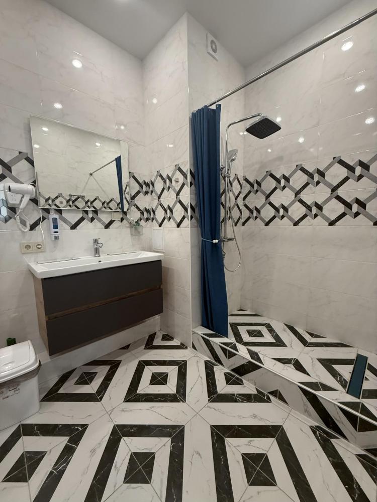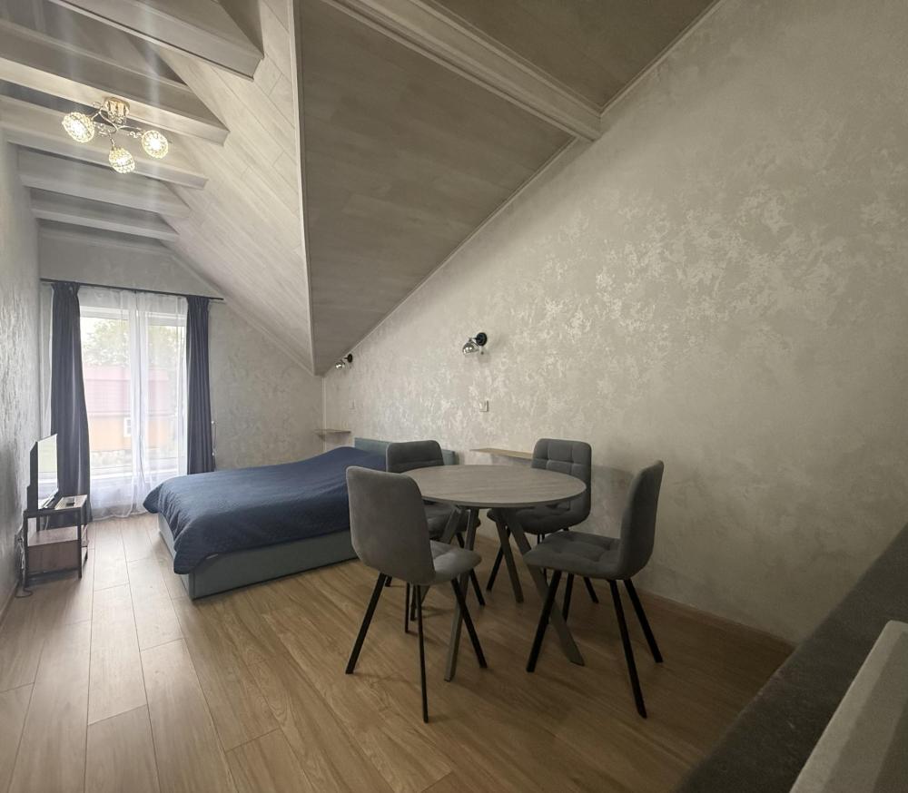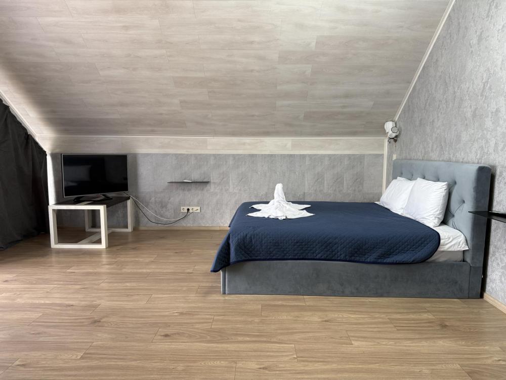 Номер студия общей площадью 25 кв.м. для размещения до 2-х гостей. В номере: двухспальная кровать, прикроватные тумбочки, постельное белье и полотенца, обеденная зона, телевизор, кухня оснащенная всей необходимой техникой и посудой, ванная комната с душем, туалетно-косметические принадлежности.